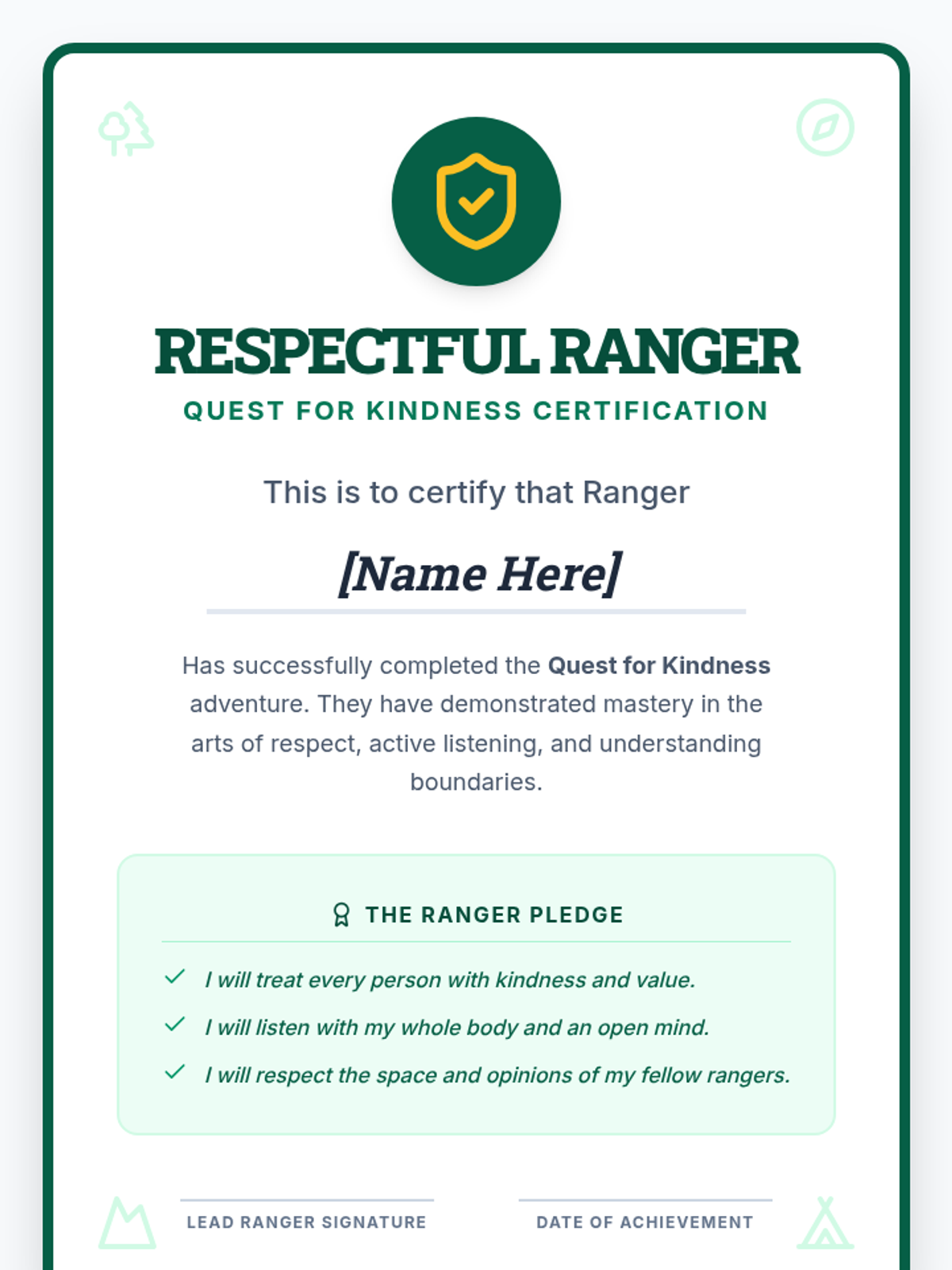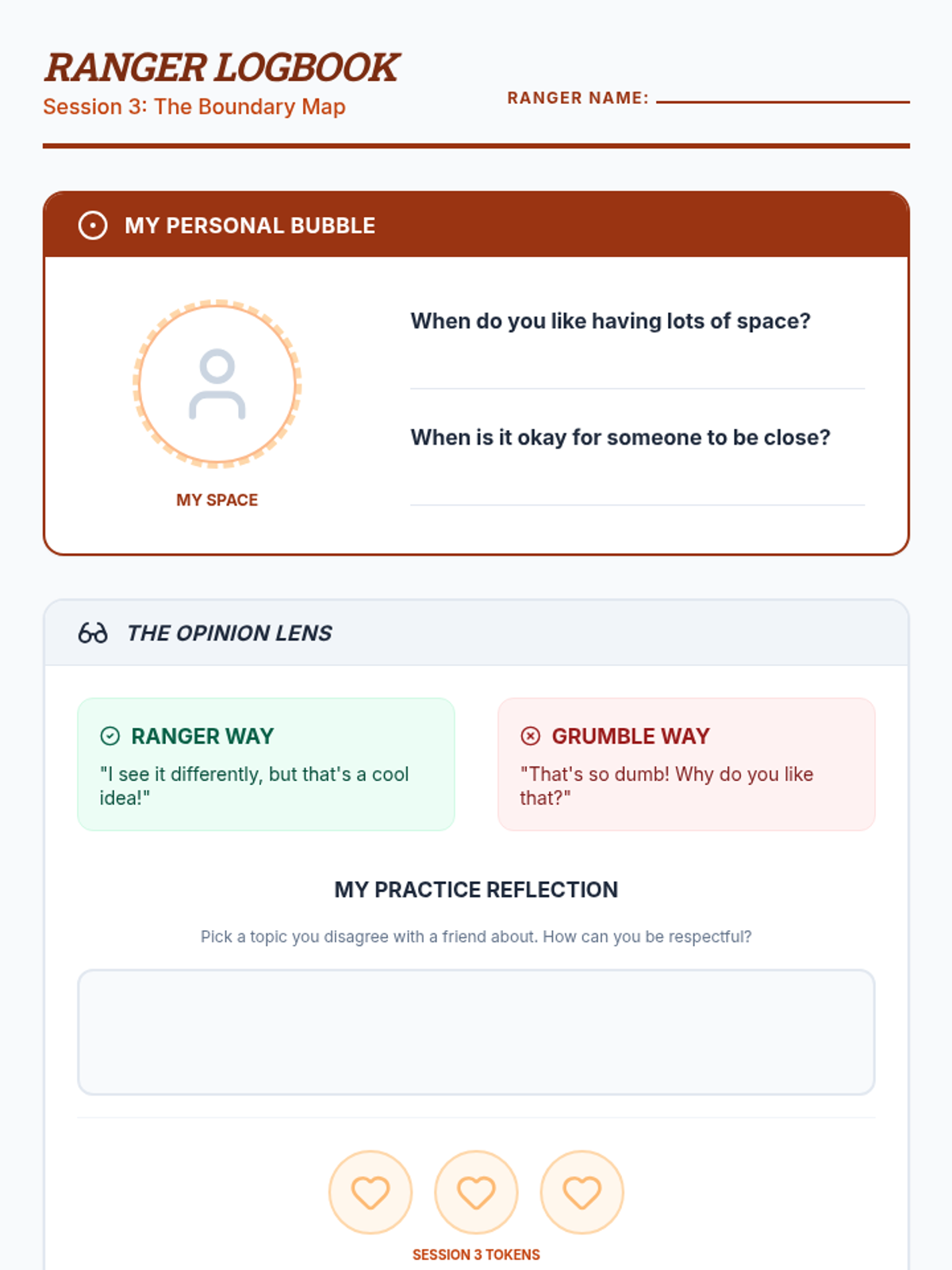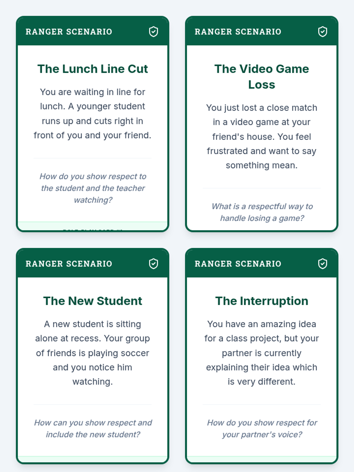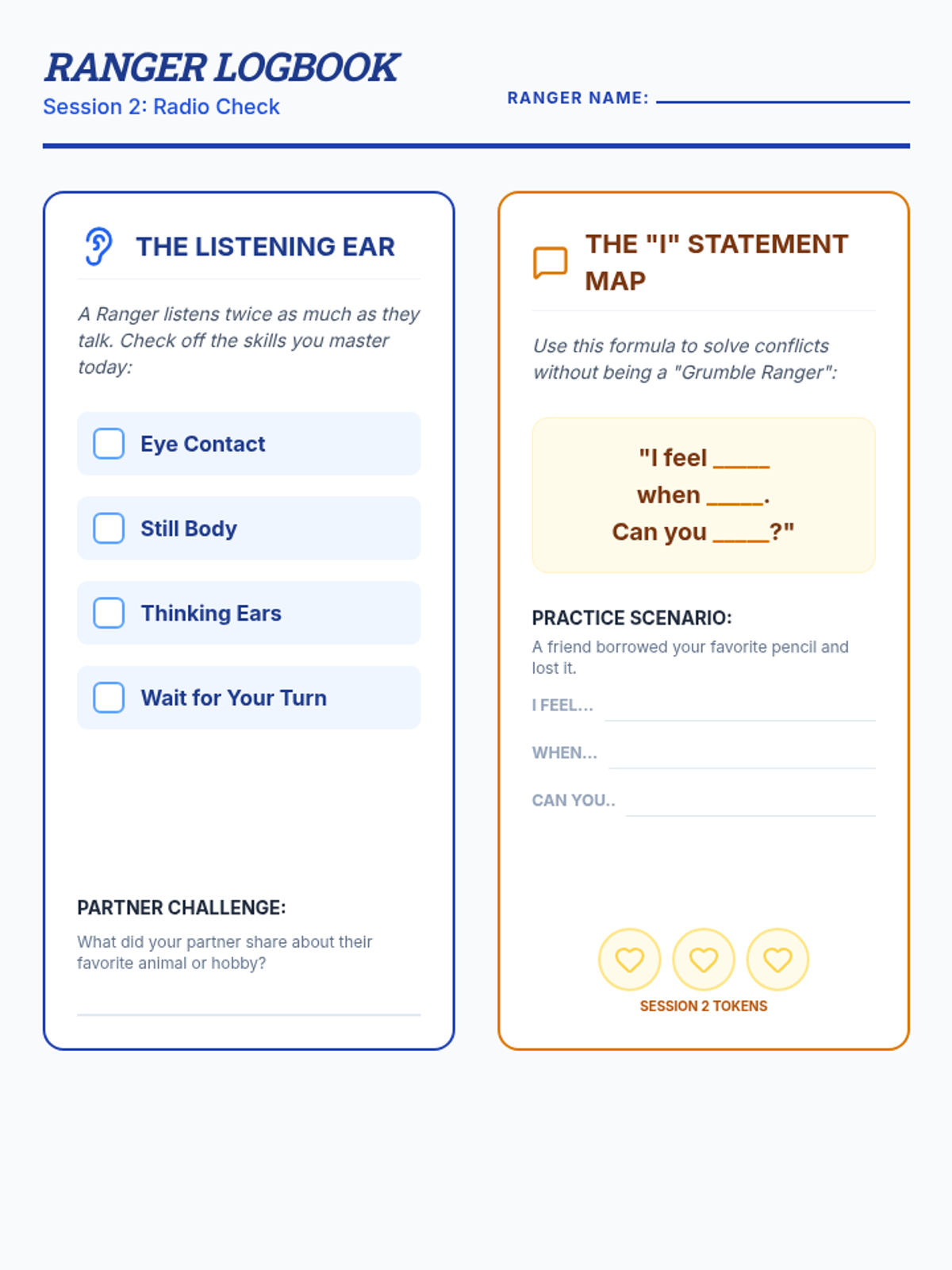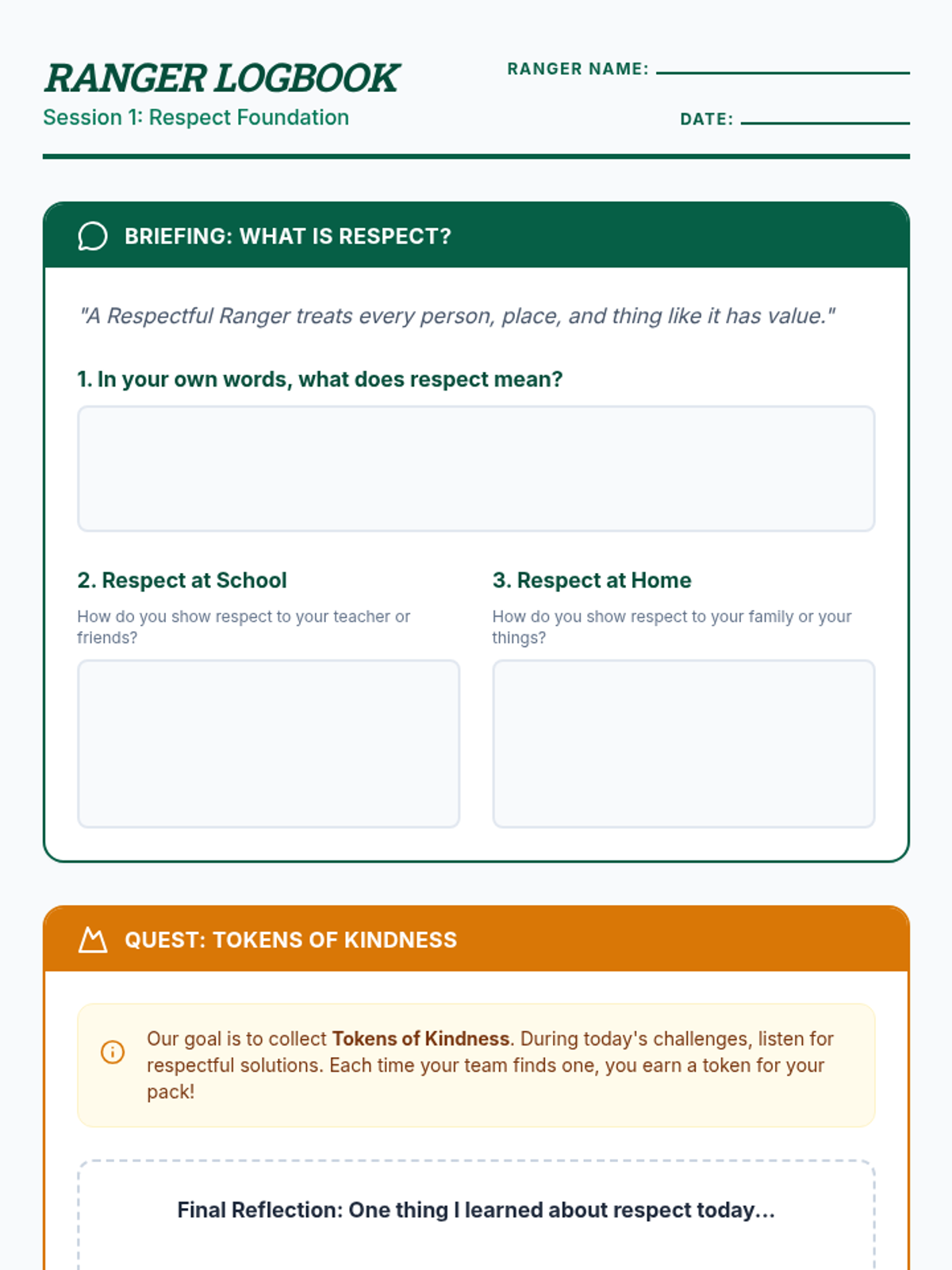 A 4-session social-emotional learning sequence for 4th-grade boys focused on developing respect, communication skills, and empathy through a "Park Ranger" adventure theme.