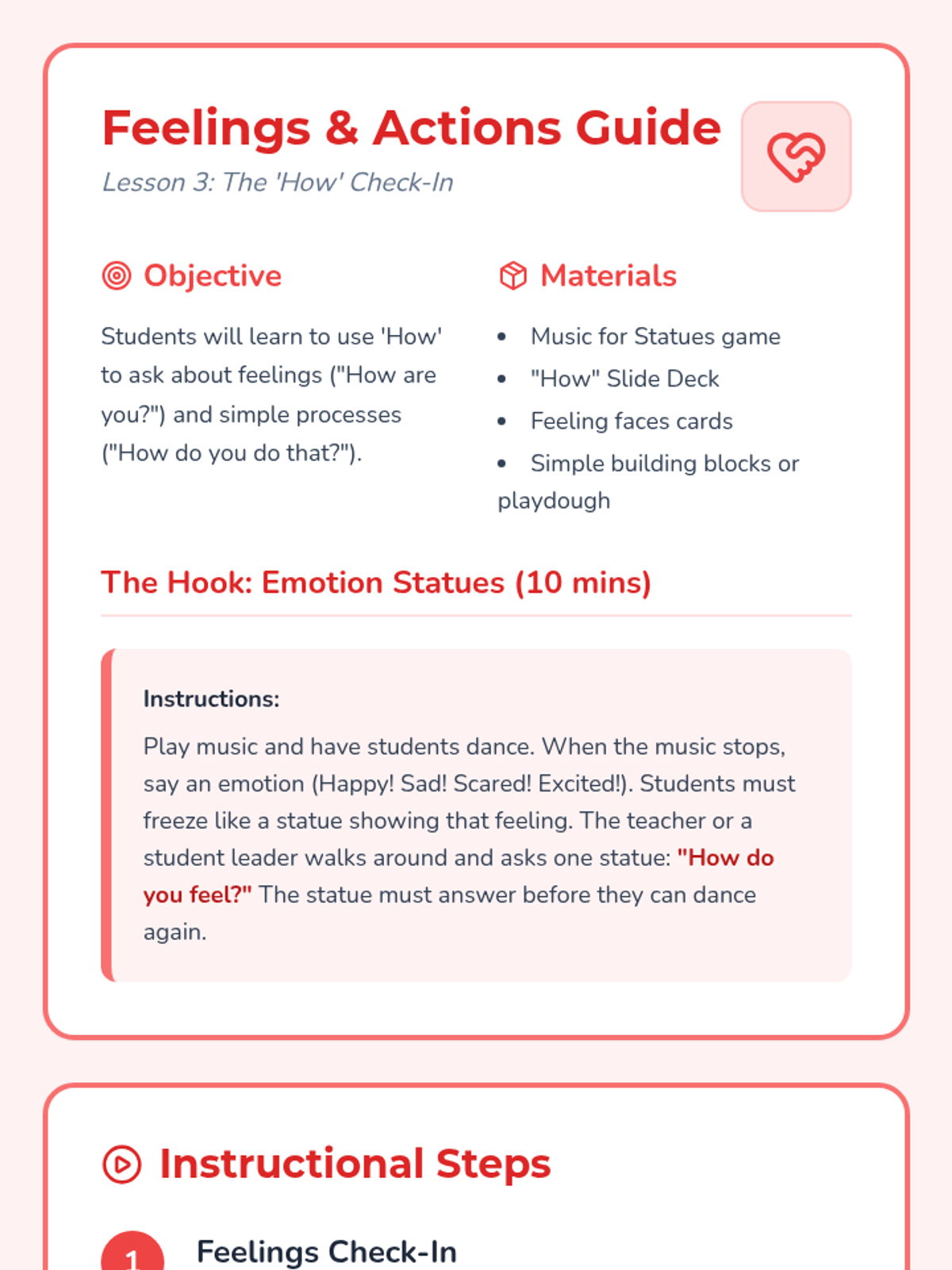 An 8-week social-emotional learning curriculum designed for 20-minute sessions. Students learn to identify, categorize, and apply coping skills through a blueprint-inspired framework of self-regulation.