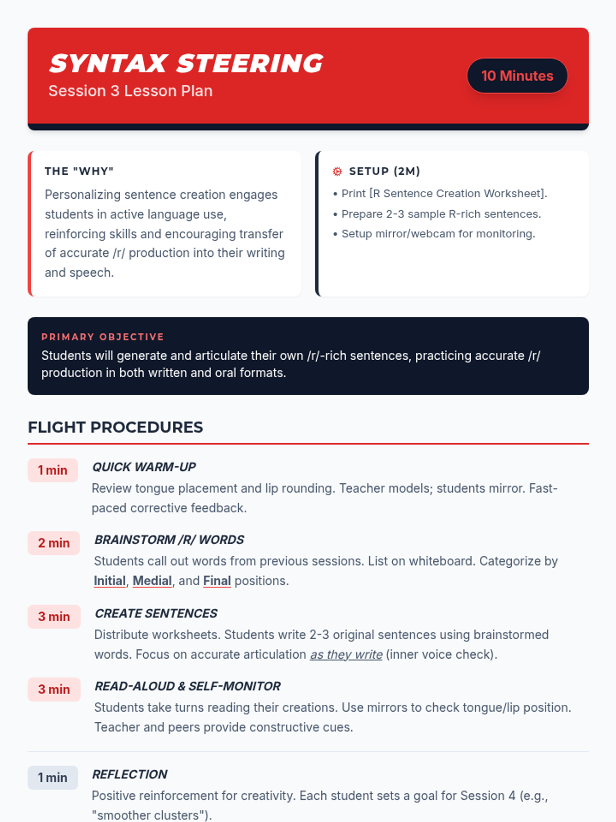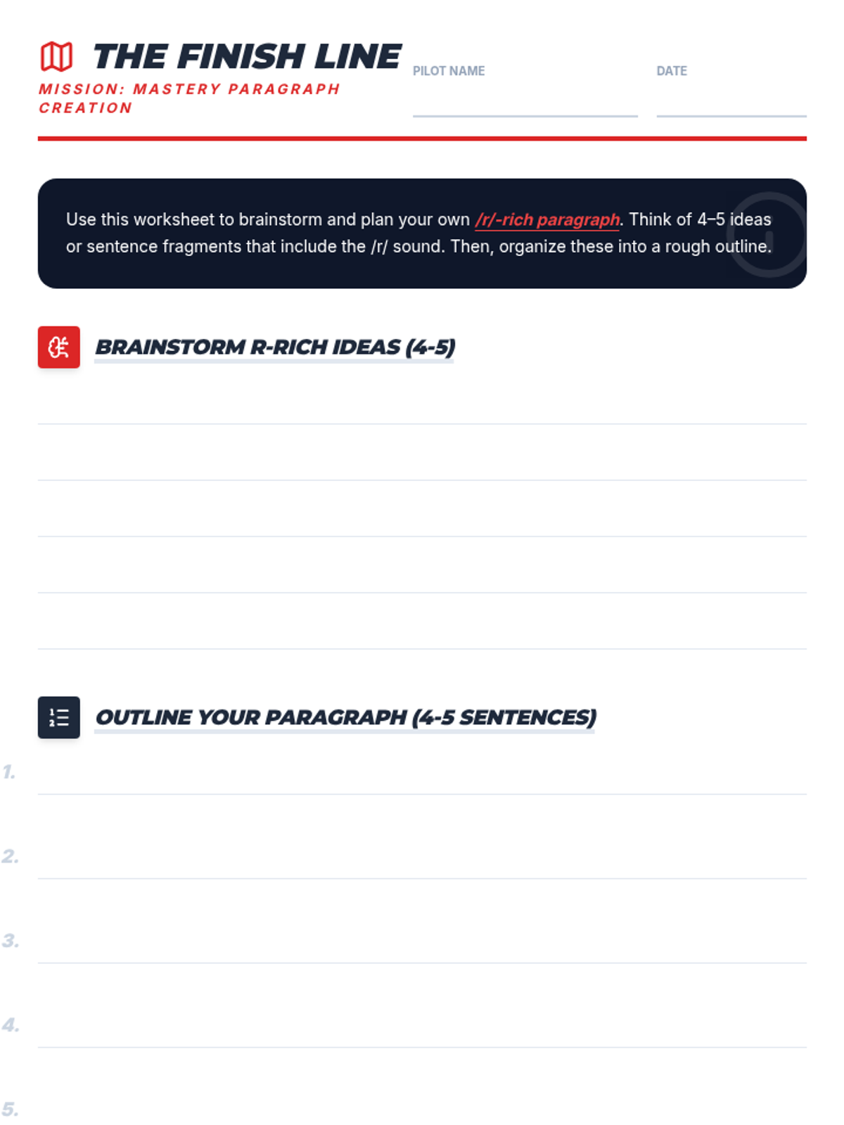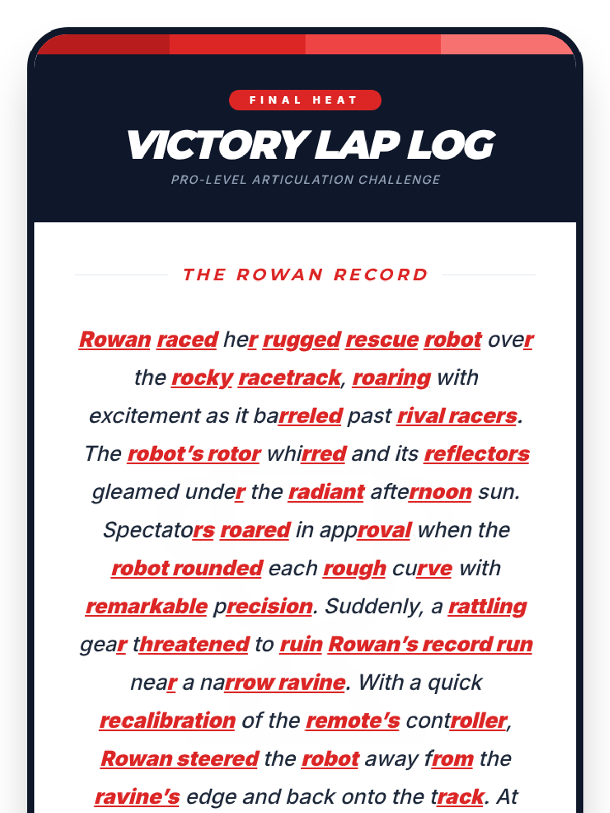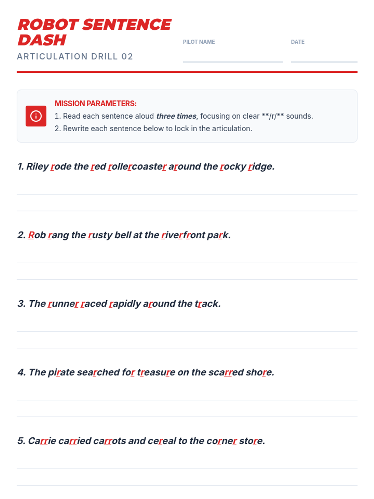 A 4-session, 10-minute small-group speech therapy series for 5th-grade students to master the /r/ sound in paragraph contexts. Using a high-energy robot racing theme, students progress from words and sentences to complex reading and original paragraph creation.