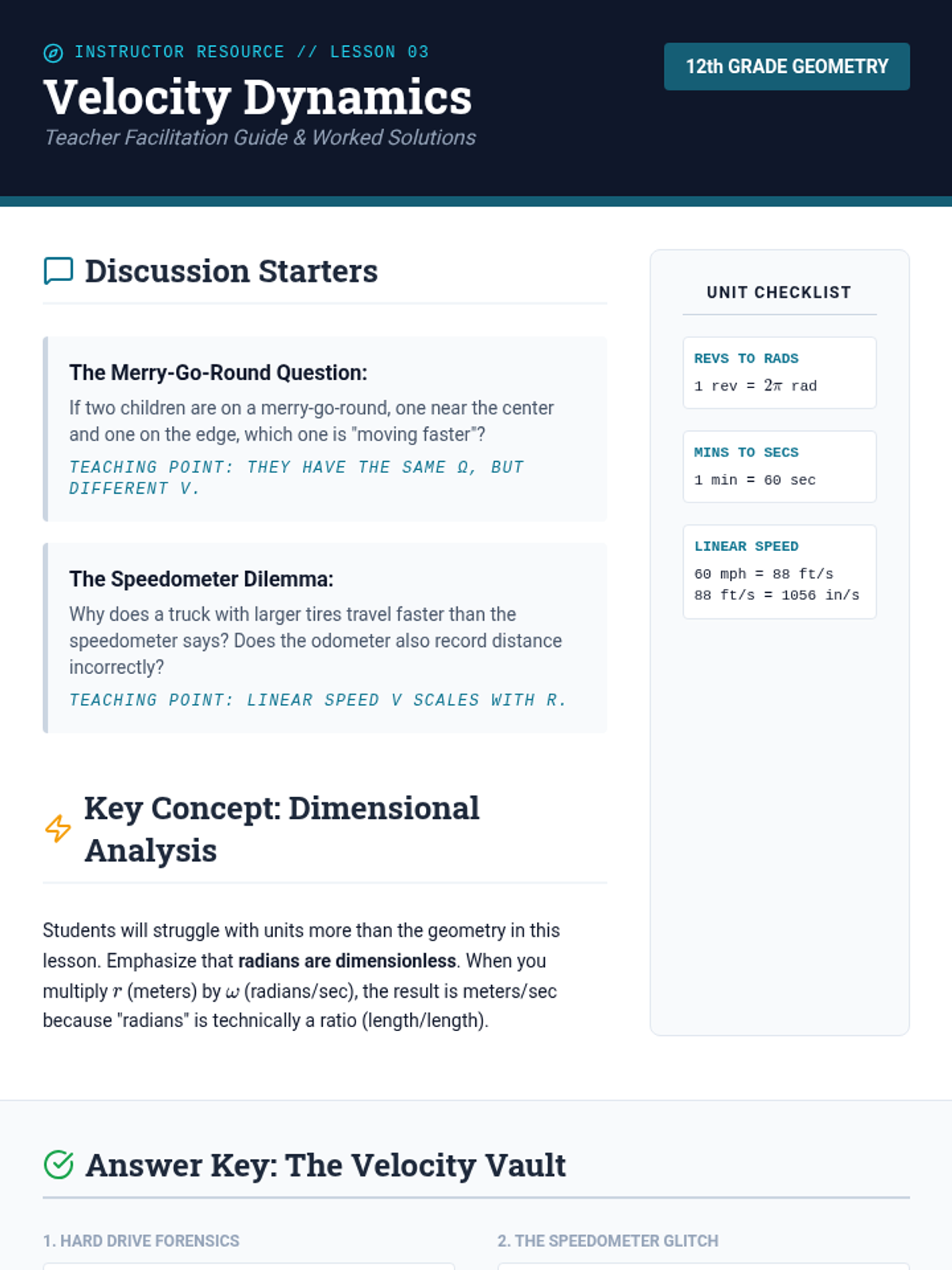This sequence transitions 12th-grade students from degree-based measurements to radian measure, exploring arc length, sector area, and the physics of rotational motion through the lens of engineering and mechanical systems.