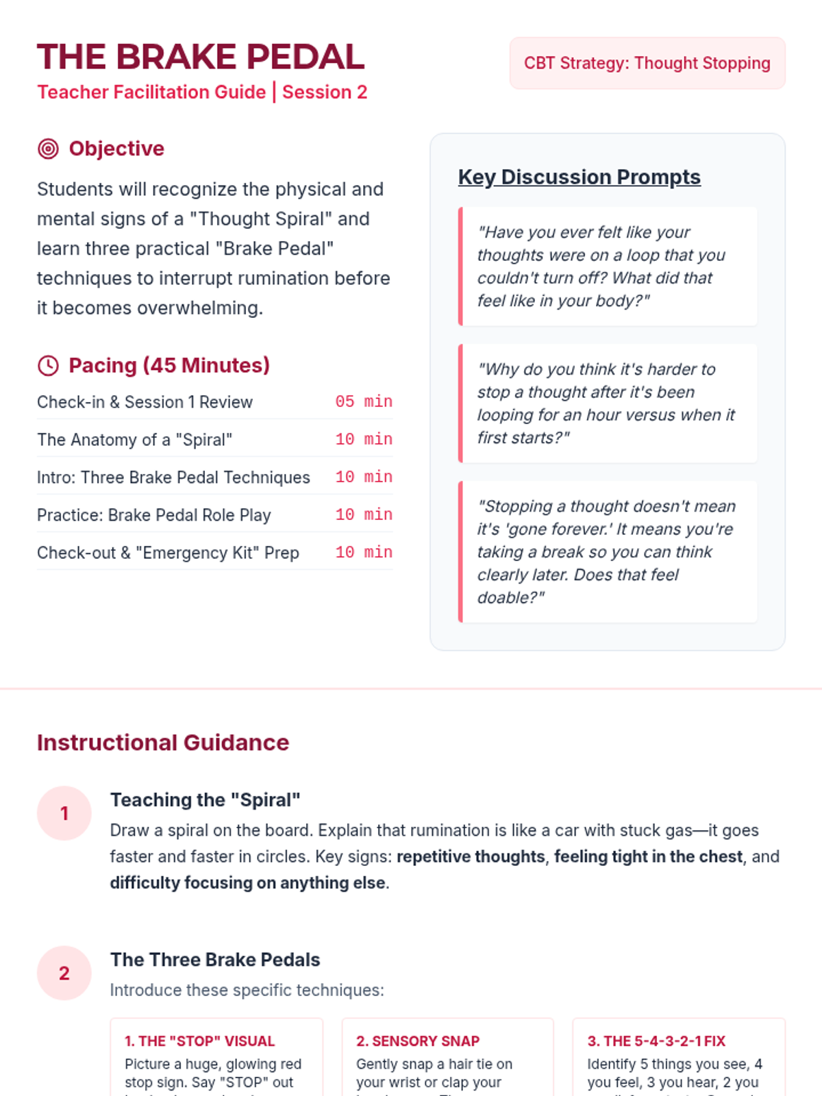A 4-session small group counseling program for high school girls focused on identifying anxiety triggers, practicing mindfulness, and developing a personalized toolkit of coping strategies. The sequence emphasizes peer support, empowerment, and practical application within the school environment.