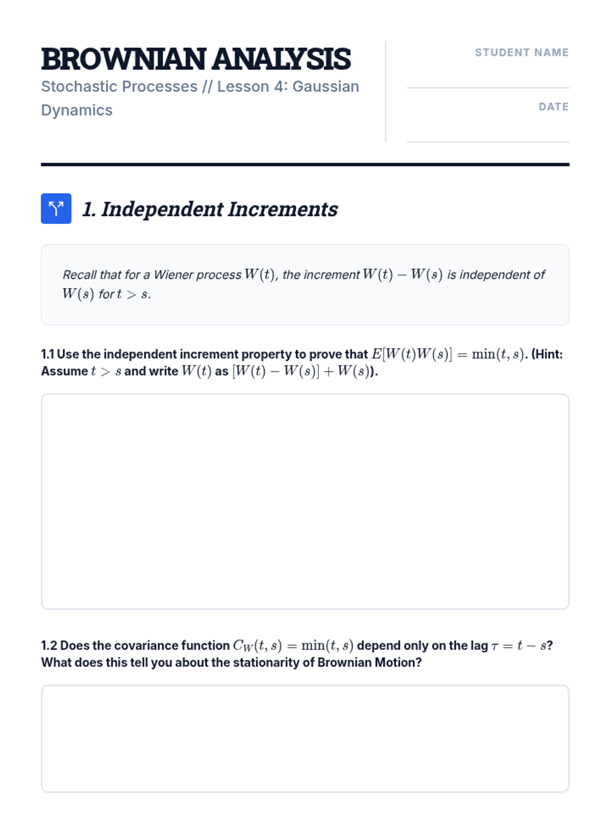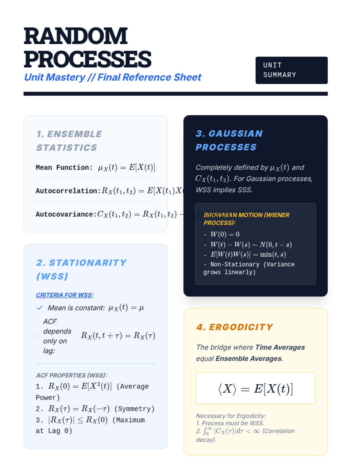 A comprehensive sequence on stochastic processes, stationarity, autocorrelation, and ergodicity, designed for undergraduate statistics and engineering students. The sequence moves from basic definitions of ensemble averages to the complex relationship between time and statistical averages.