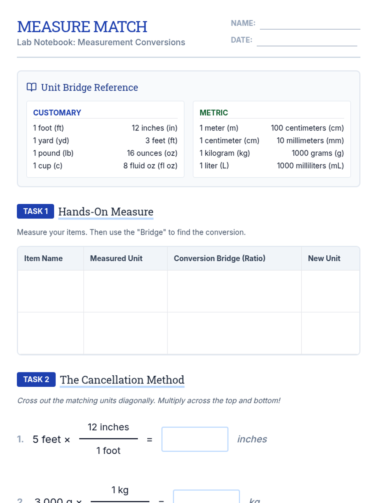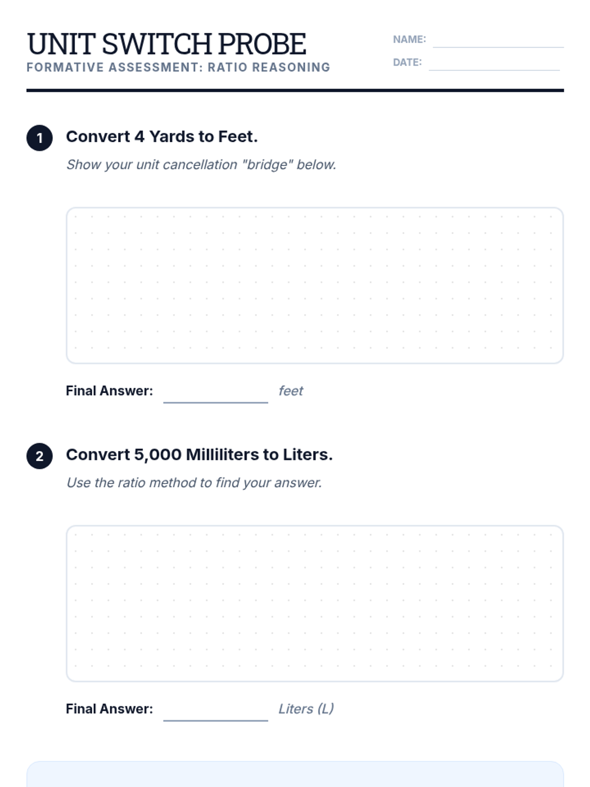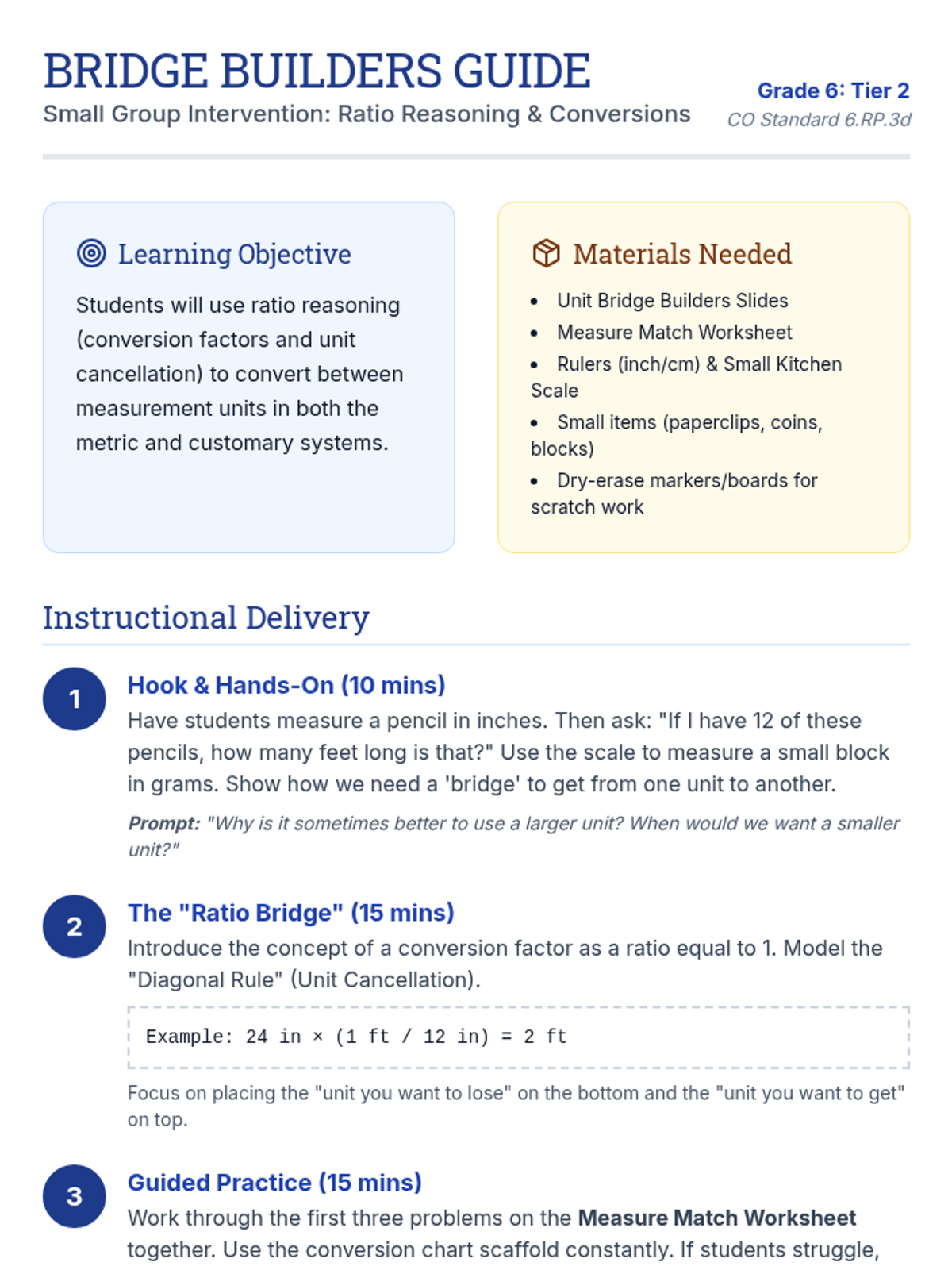 A targeted intervention sequence focusing on helping students master measurement conversions through ratio reasoning and unit cancellation.