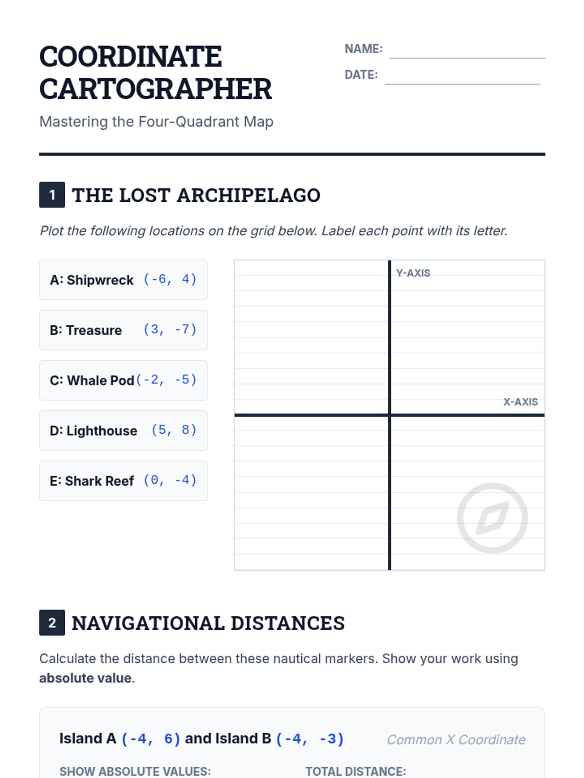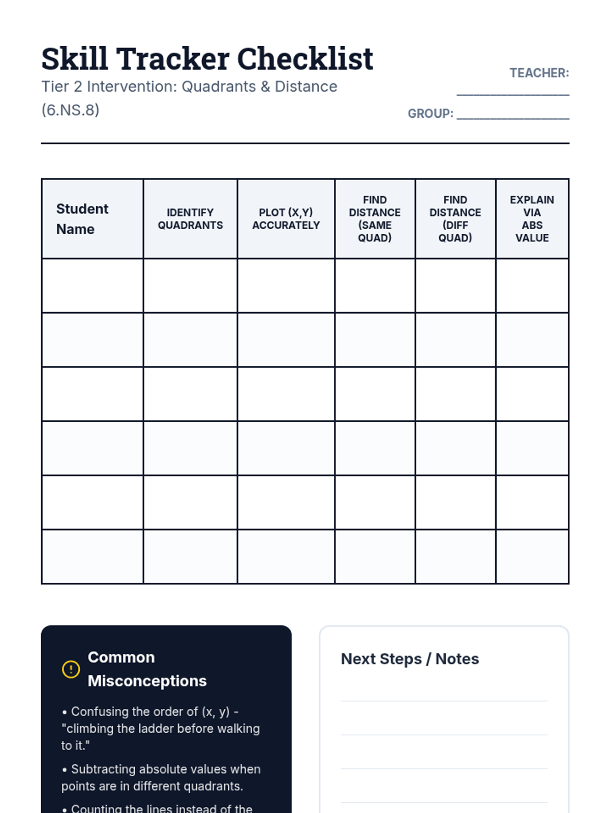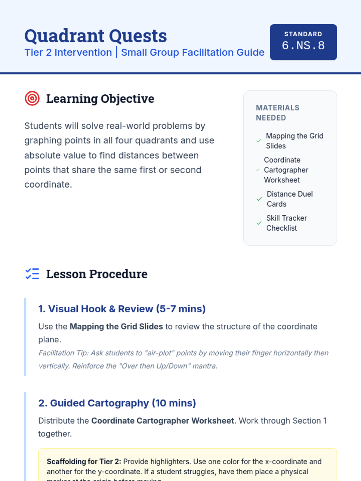 A Tier 2 intervention unit focused on mastering the four-quadrant coordinate plane and calculating distances between points using absolute value, aligned with Colorado standard 6.NS.8.
