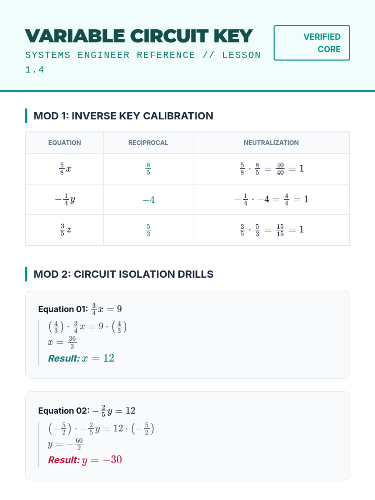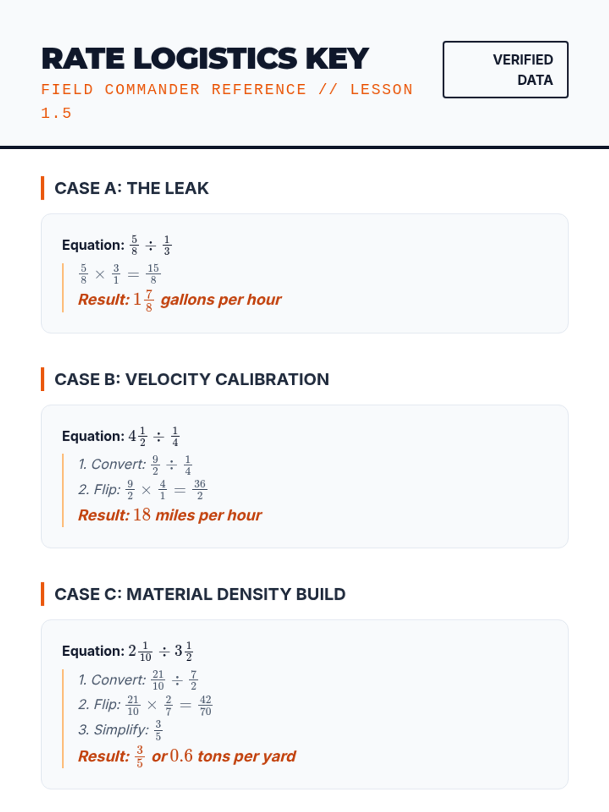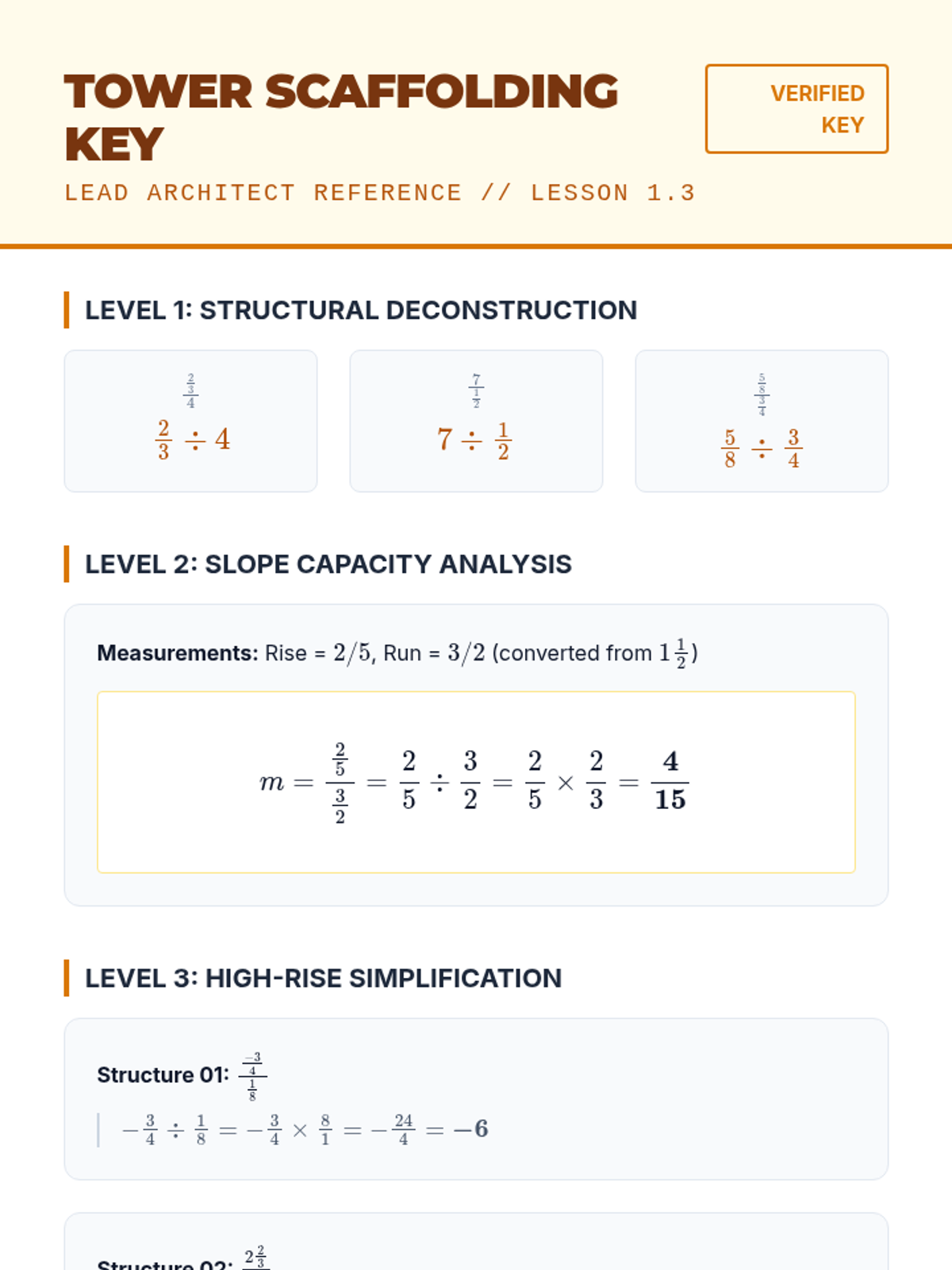 A comprehensive 8th-grade math sequence that bridges the gap between basic fraction division and algebraic reasoning. It covers visual proofs, rational number rules, complex fractions, fractional coefficients in equations, and real-world rate applications.