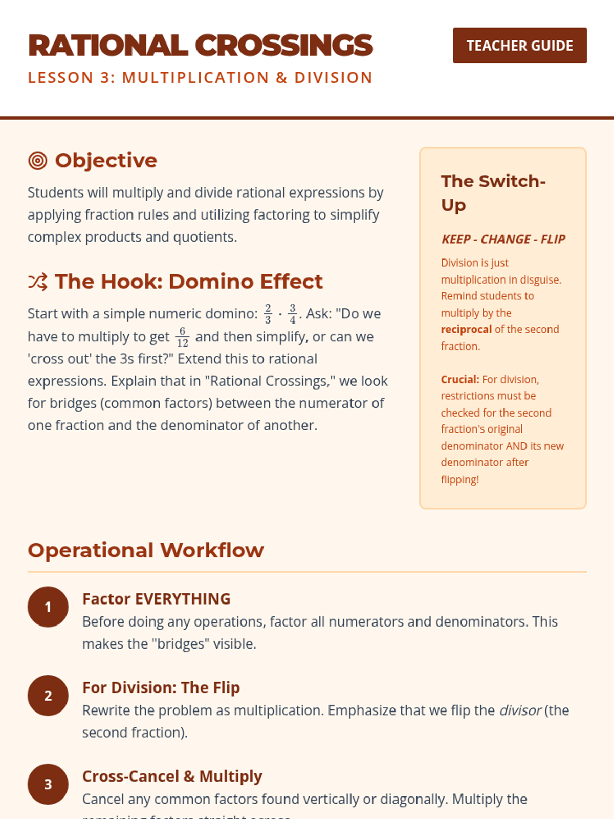 A 12-session tier 2 intervention sequence designed to build conceptual mastery of fraction division. Grounded in All Learners Network (ALN) principles, students progress from visual measurement models to the common denominator strategy and eventually the standard algorithm through deep reasoning and high-leverage concepts.
