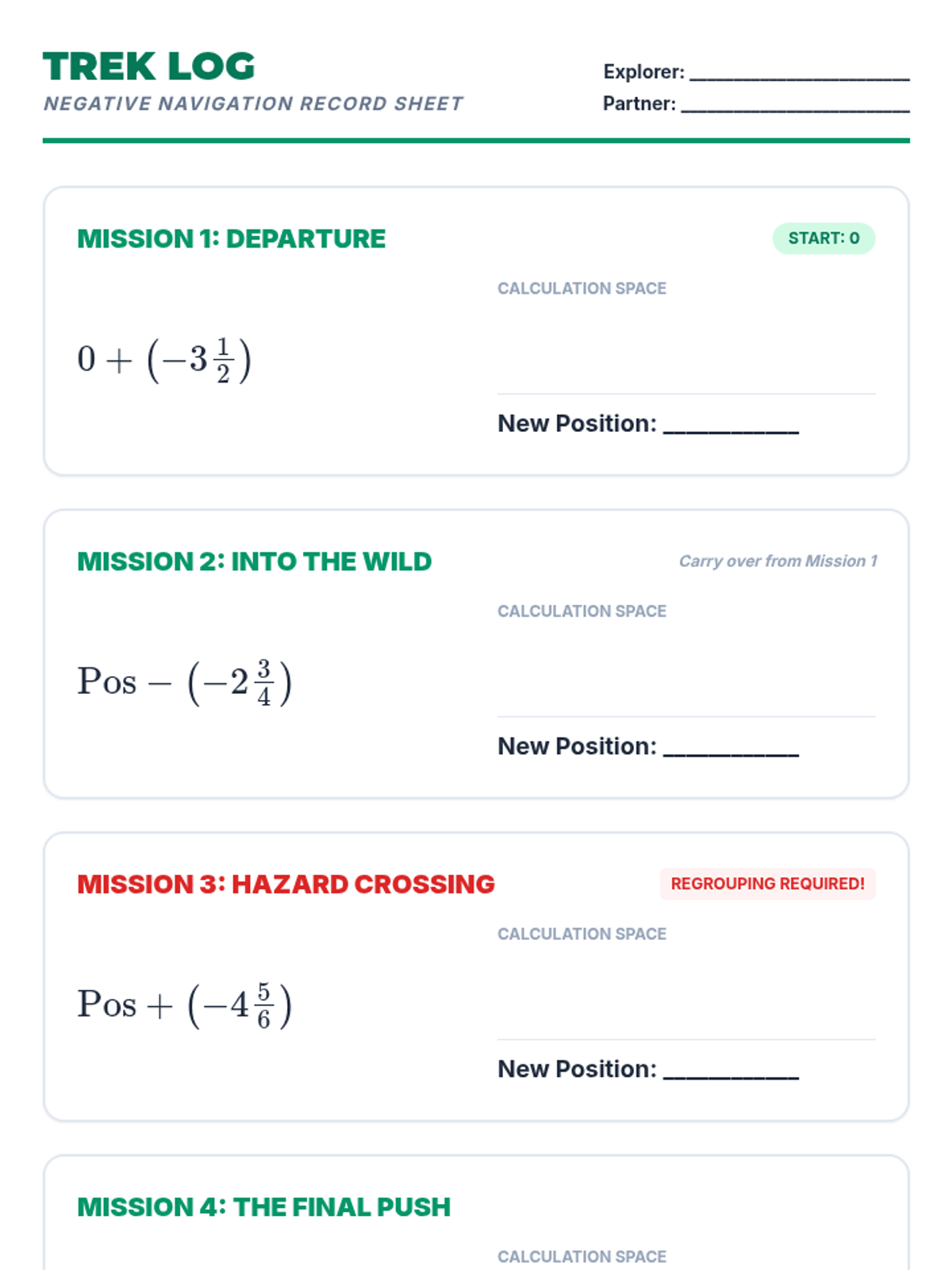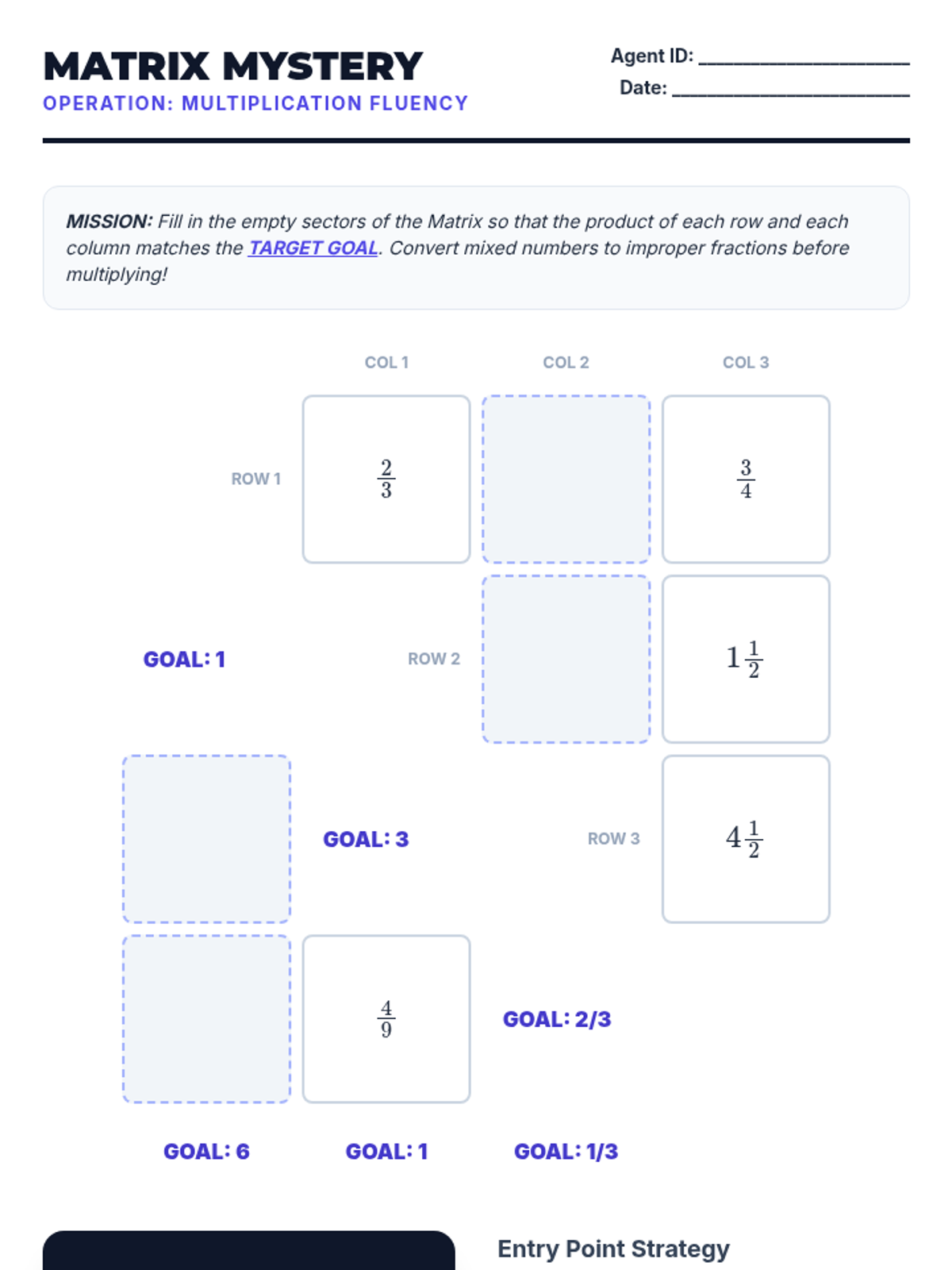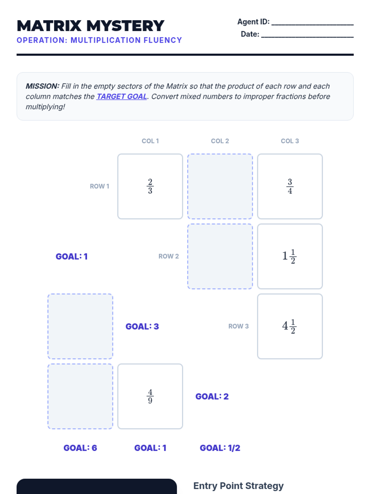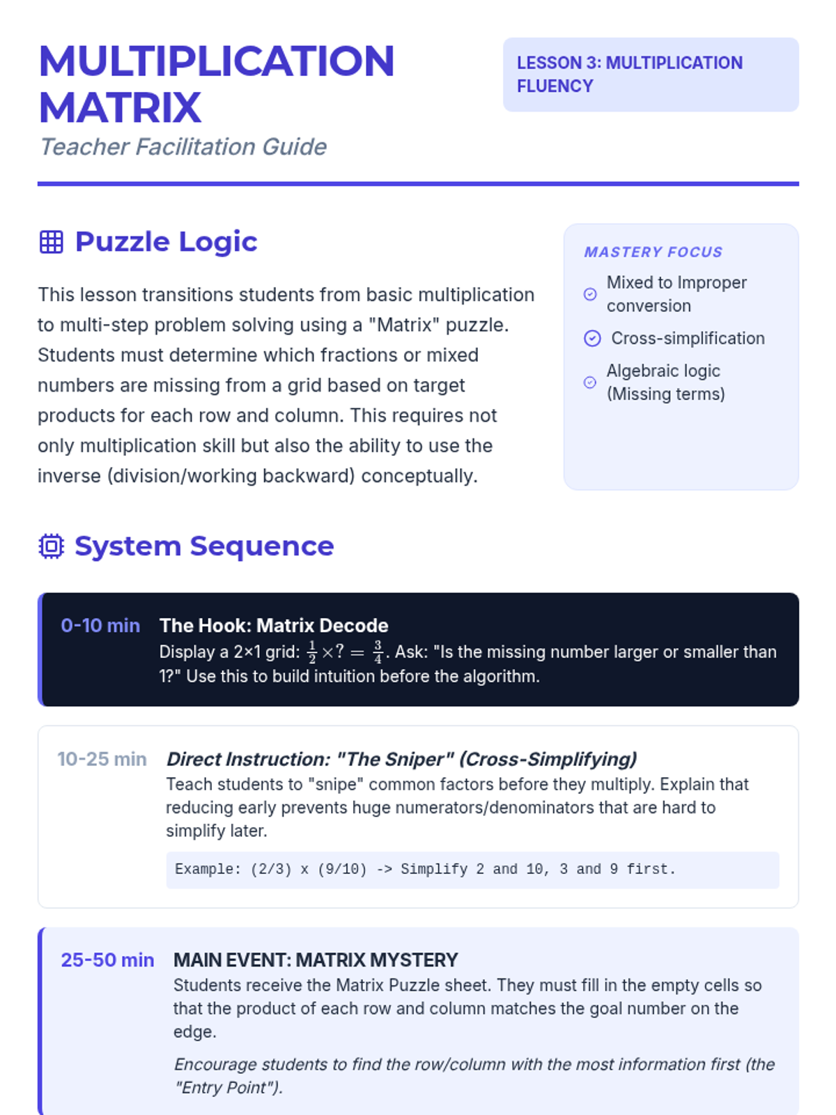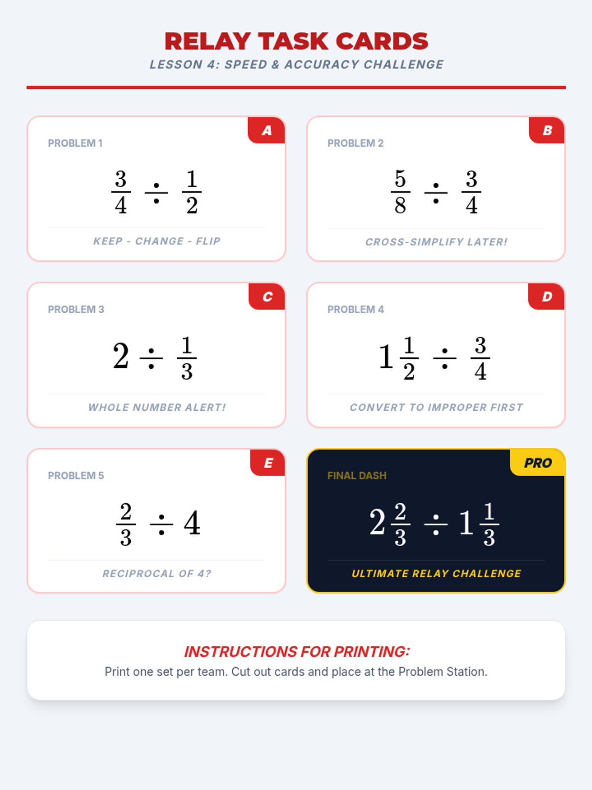 A high-energy series of 7th-grade math lessons focusing on fluency with rational fraction operations through games, puzzles, and competitive challenges. Students master addition, subtraction, multiplication, and division of signed fractions and mixed numbers.