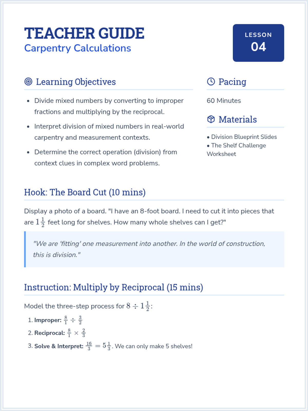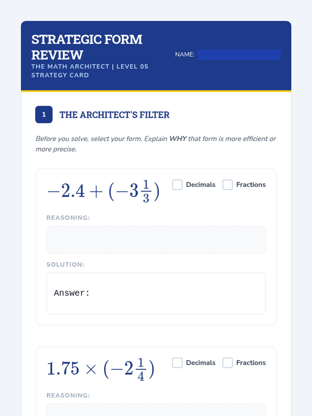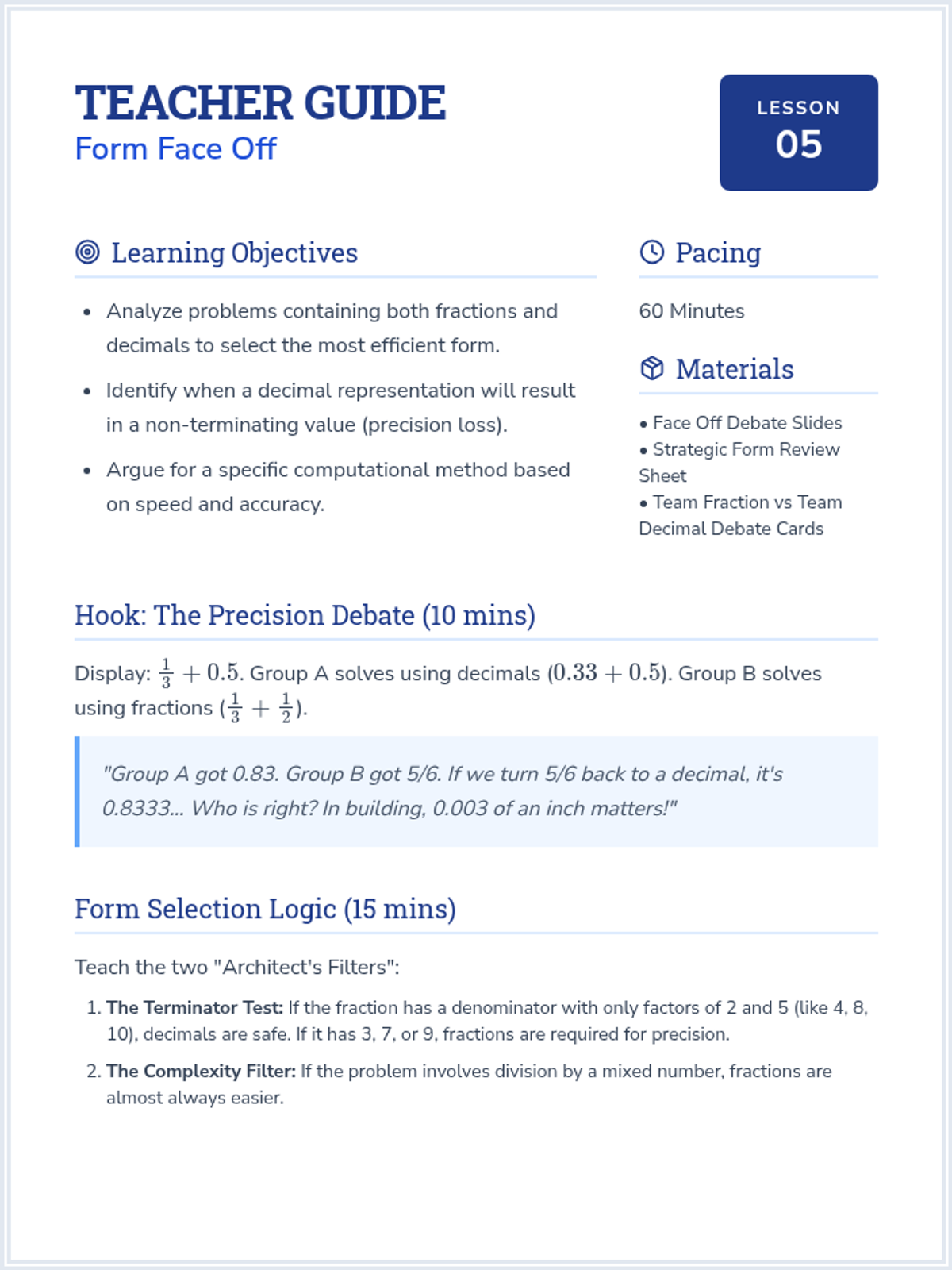 A comprehensive sequence for 7th-grade students focused on building procedural fluency with mixed numbers and improper fractions, including negative values. Students will learn to navigate between forms, apply regrouping strategies, and choose the most efficient methods for multi-step rational number operations.