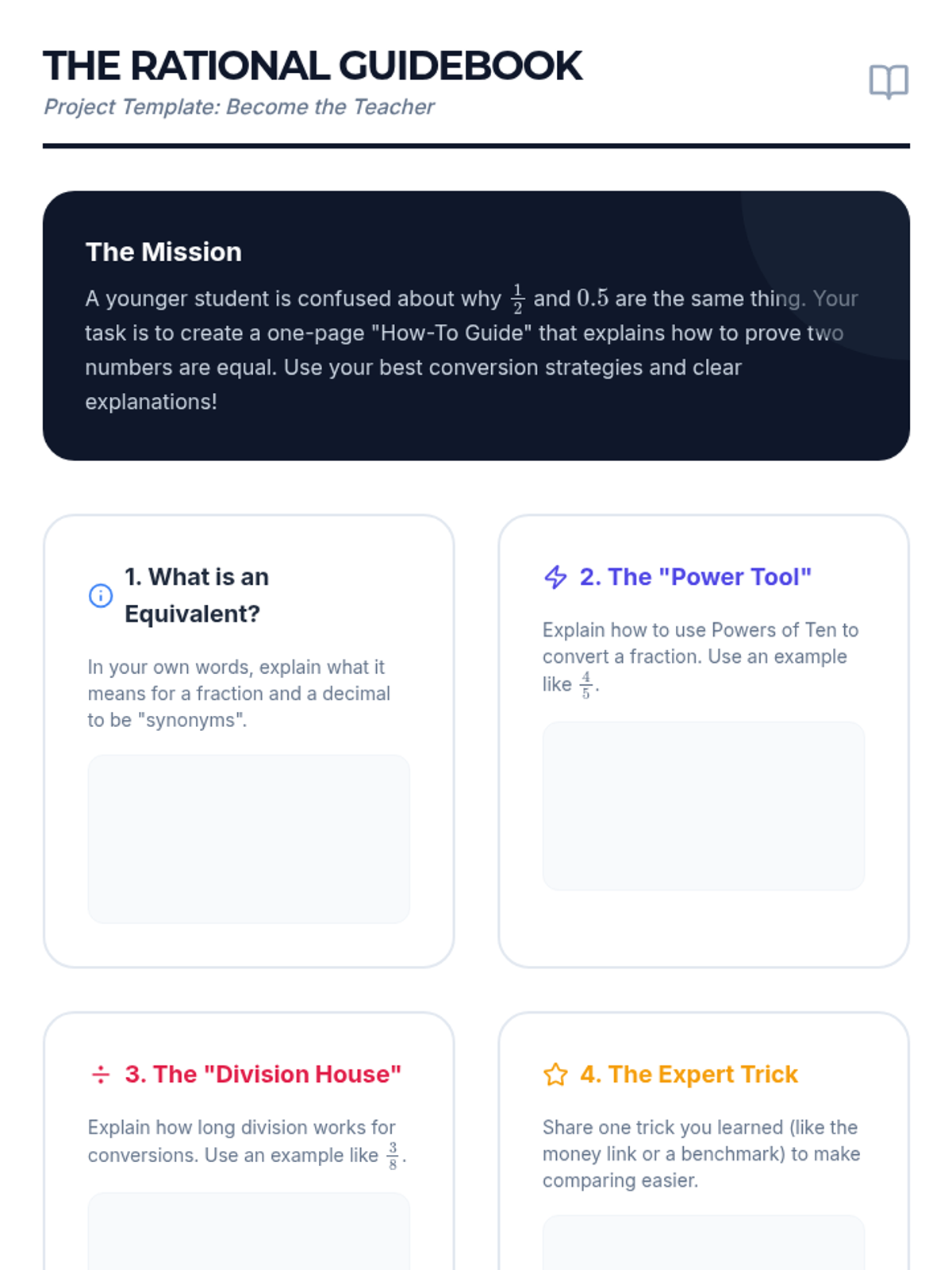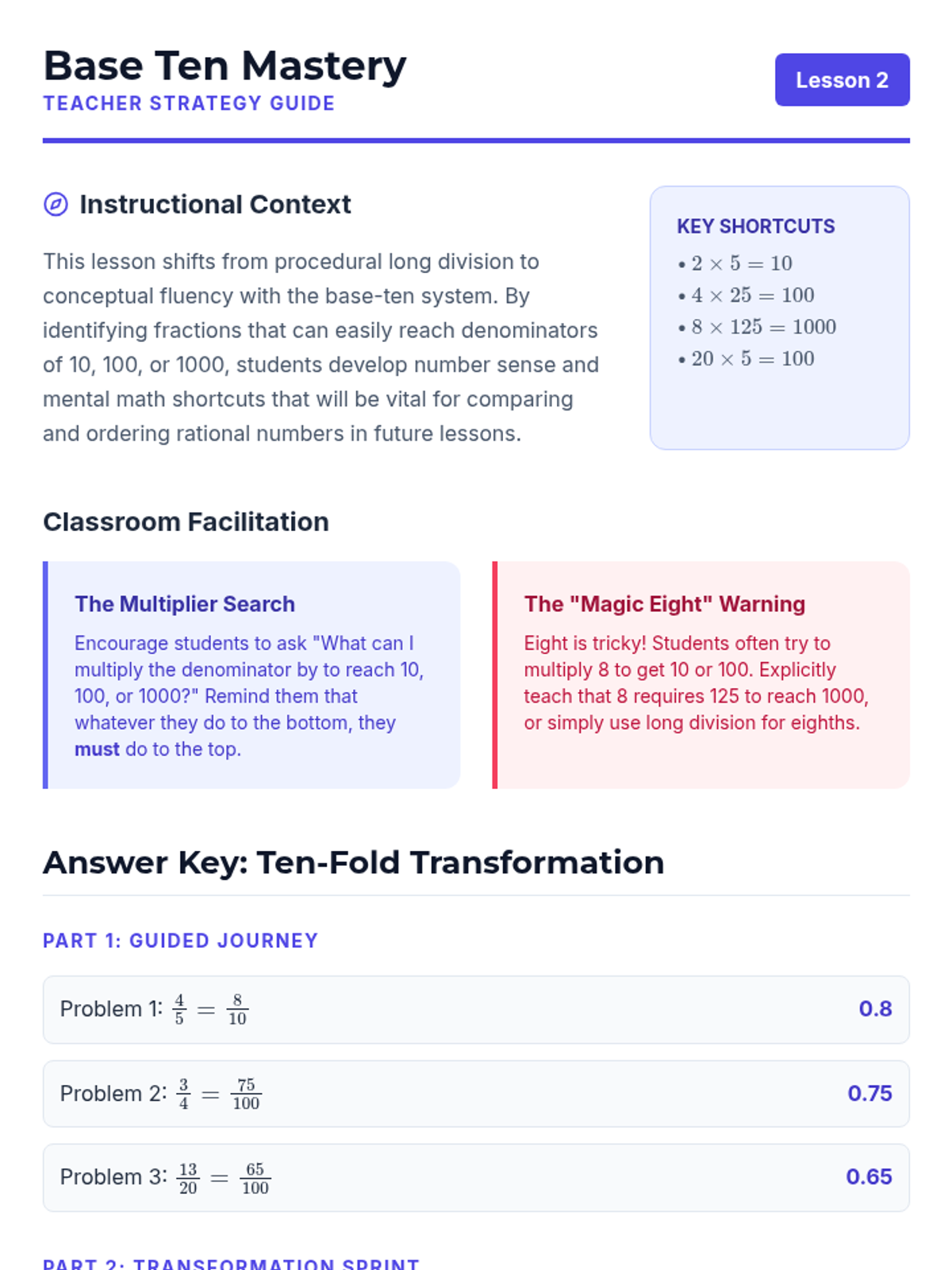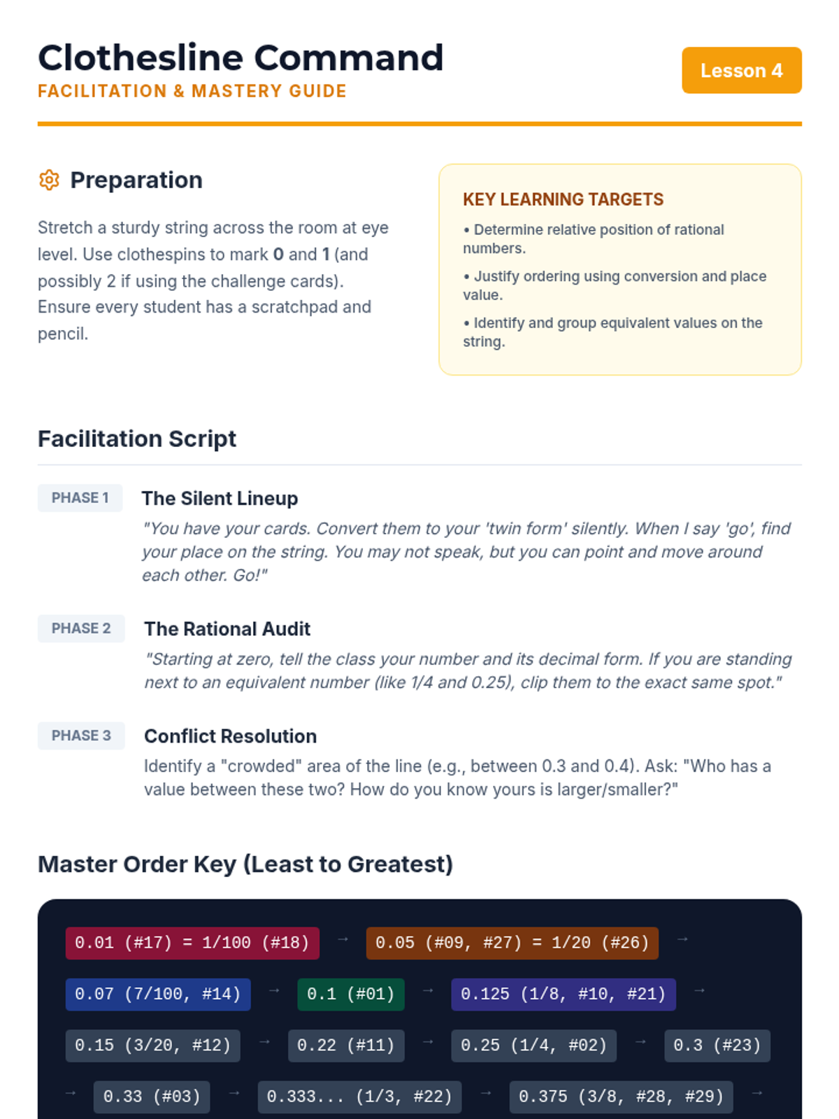 This workshop-style sequence empowers students to fluently translate between fraction and decimal notations to compare values effectively. Students explore fractions as division, use powers of ten for conversion, and master ordering mixed data sets.