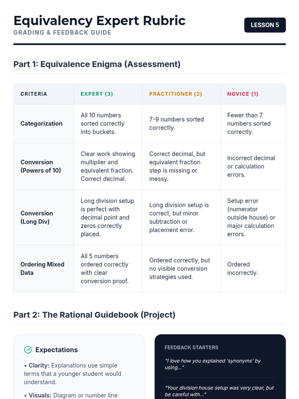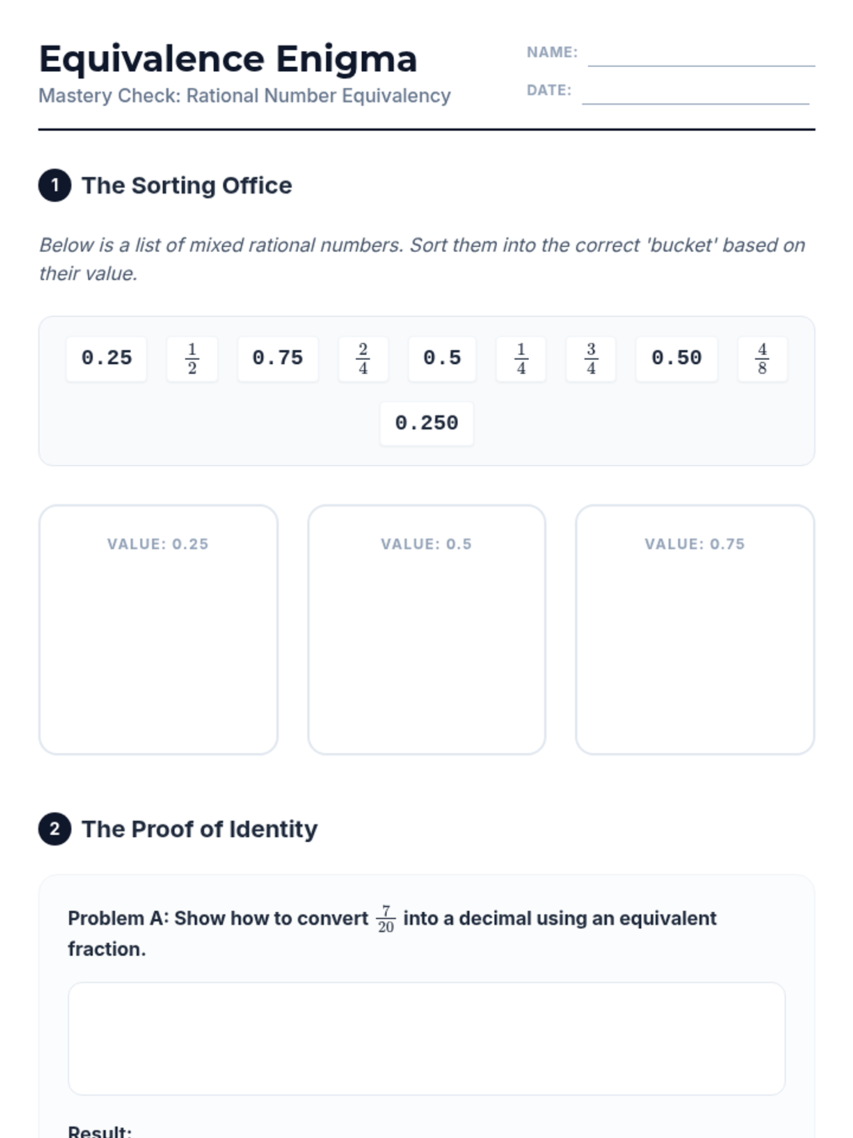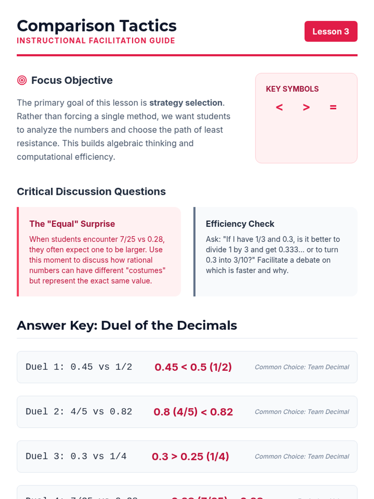 This workshop-style sequence empowers students to fluently translate between fraction and decimal notations to compare values effectively. Students explore fractions as division, use powers of ten for conversion, and master ordering mixed data sets.