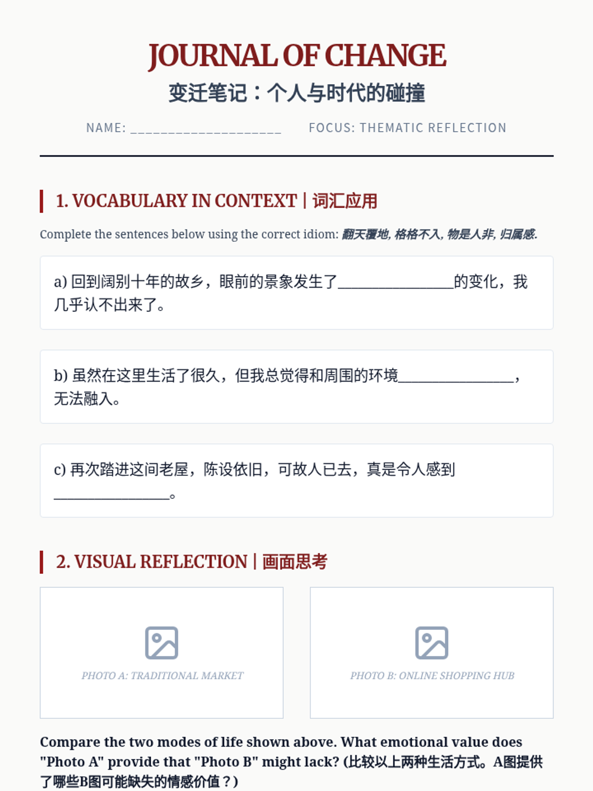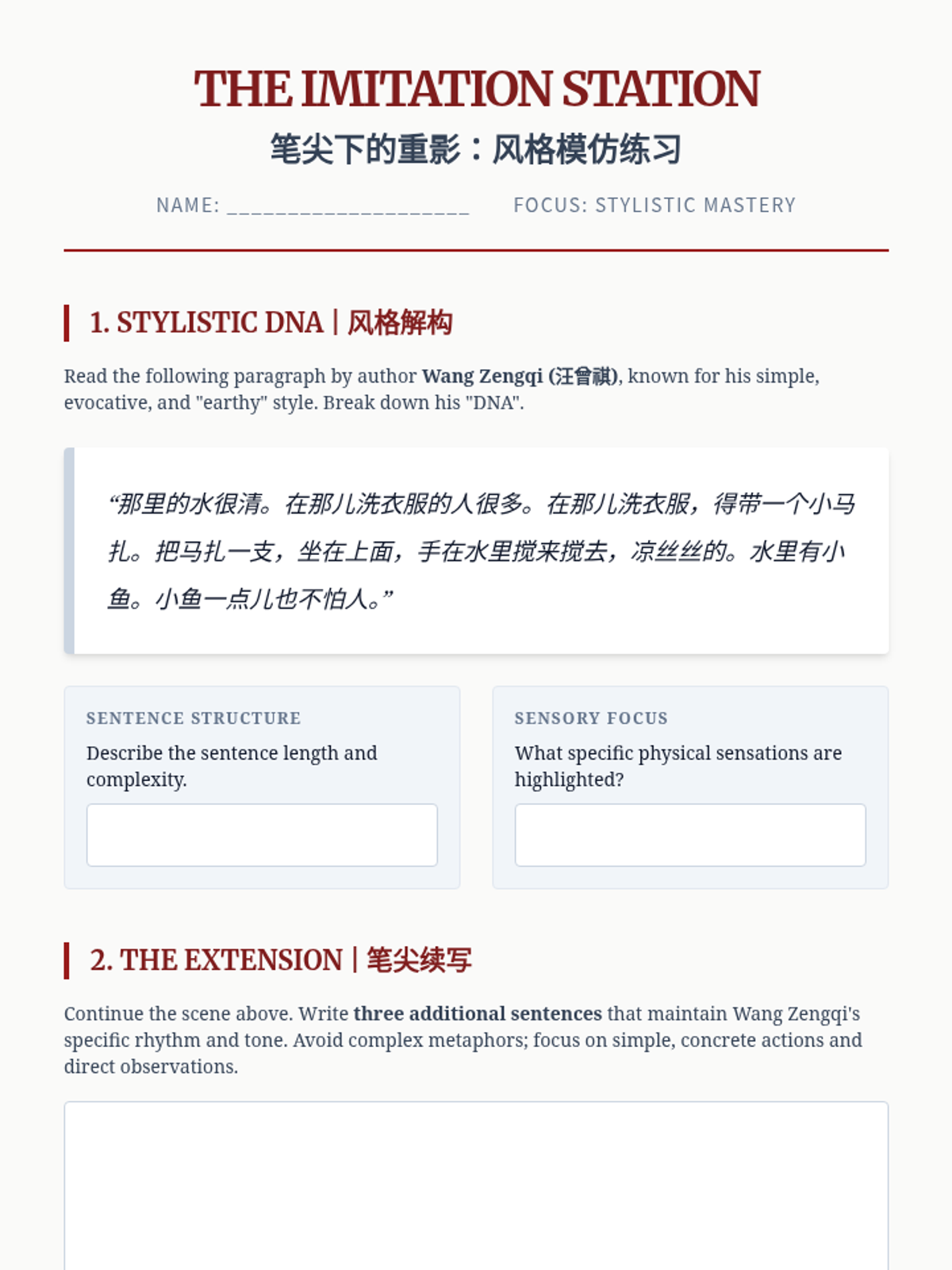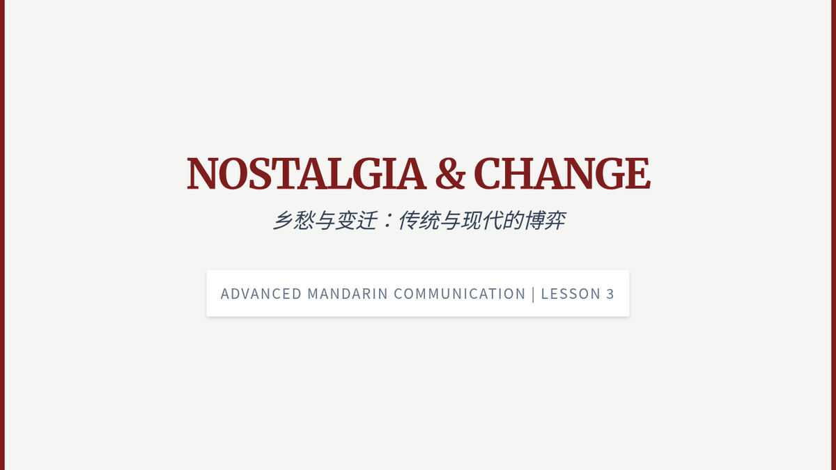 An advanced Mandarin Chinese sequence focusing on the analysis and creation of modern prose (Sanwen), exploring themes of nostalgia, change, and literary style.