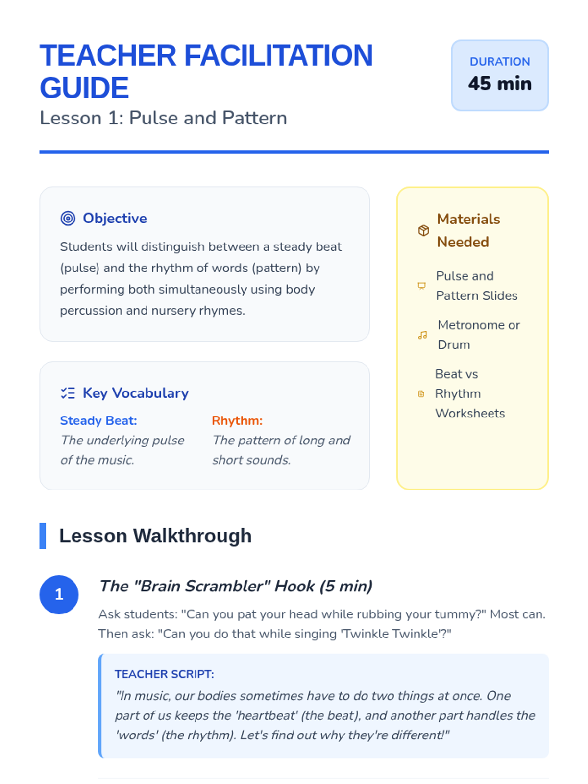 A high-energy, interactive unit focused on mastering rhythm and tempo through digital gameplay and body percussion, designed specifically for paperless classrooms.