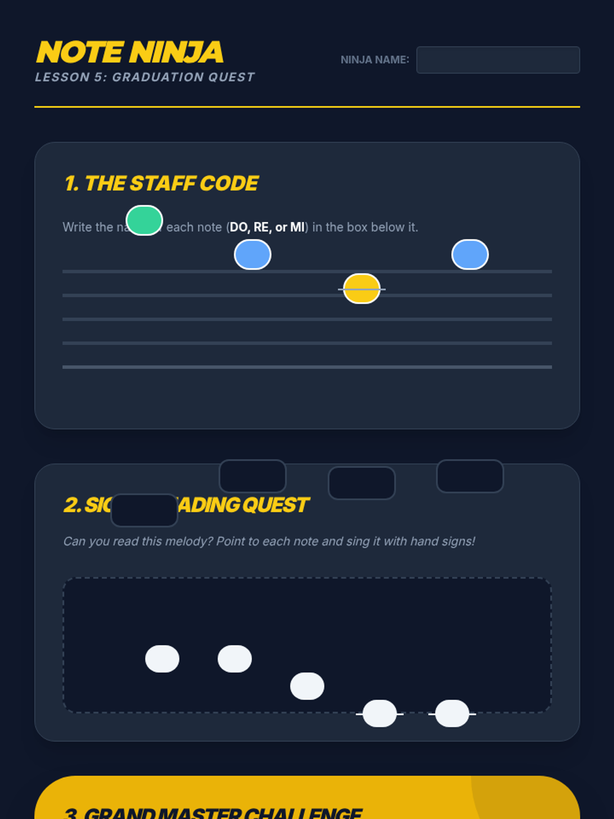 A 5-lesson sequence for 2nd graders to master reading pitch on the musical staff, moving from high/low discrimination to reading 3-note melodies using Solfege.