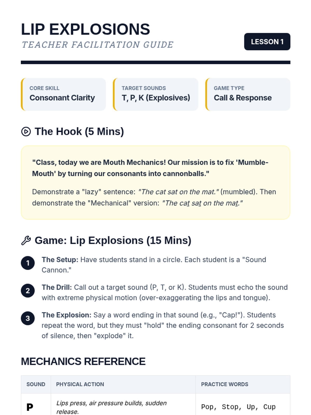 A 5-lesson sequence for 2nd graders focusing on vocal articulation, diction, and clarity. Using a 'Mouth Mechanics' theme, students turn speech drills into engaging games to improve singing quality.
