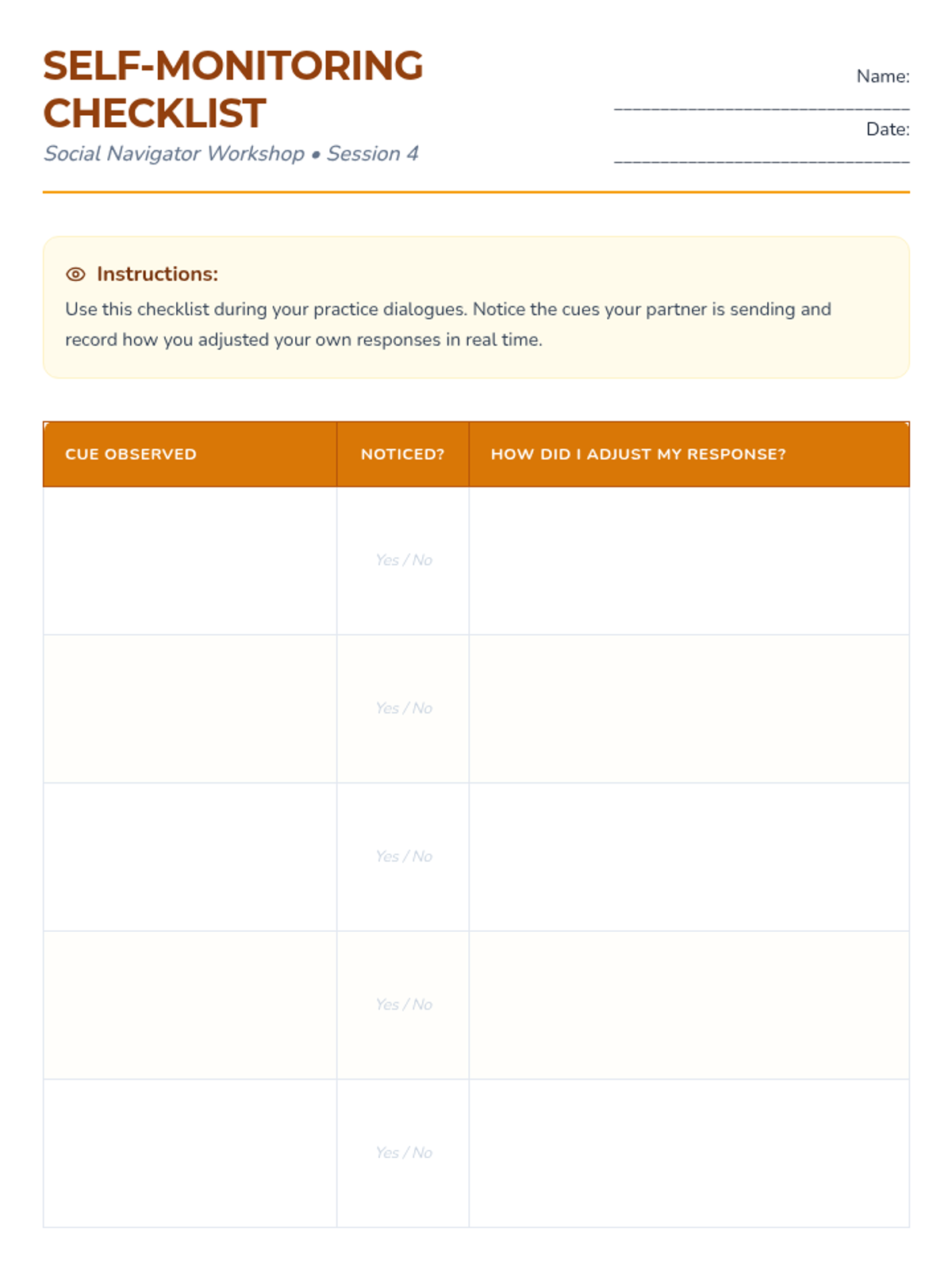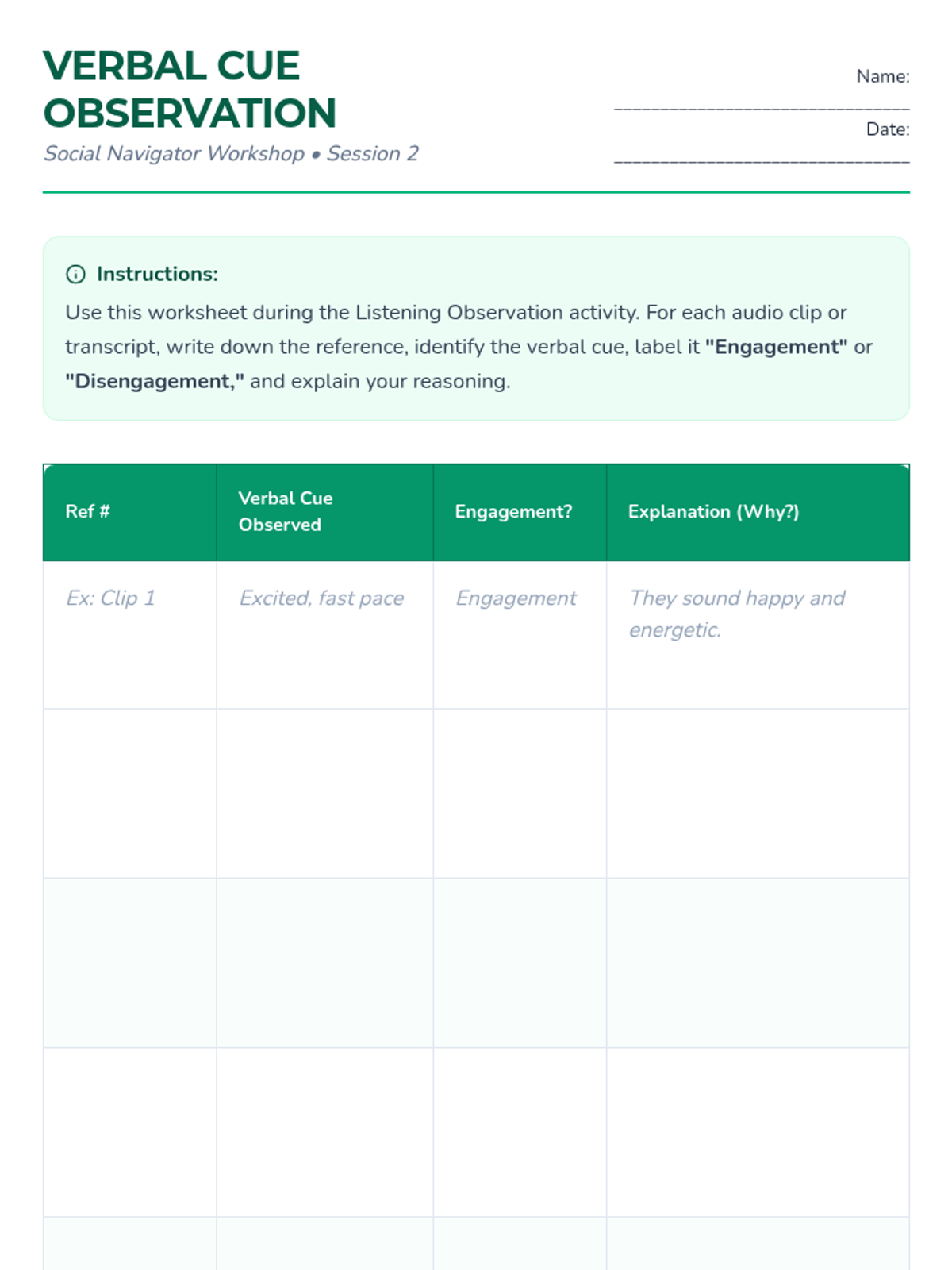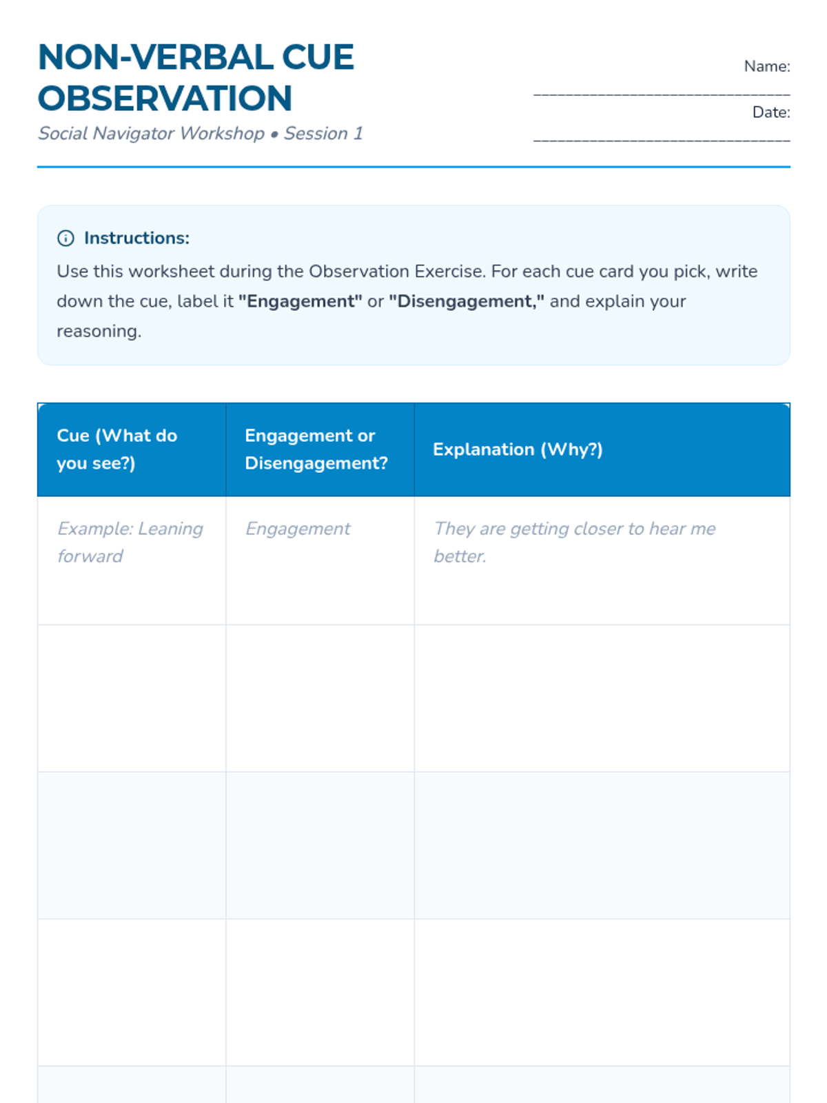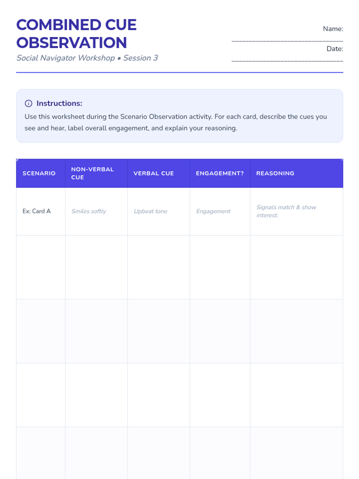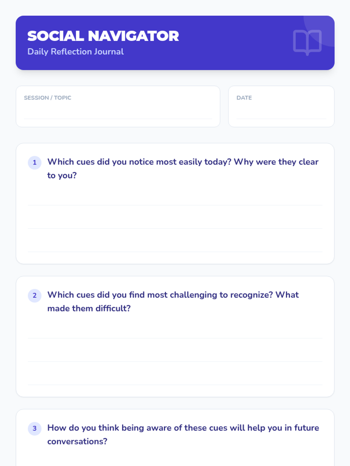 A series of four 15-minute sessions for individual learners to master recognizing verbal and non-verbal social cues. This sequence helps adults with developmental disabilities build social awareness and stronger connections.