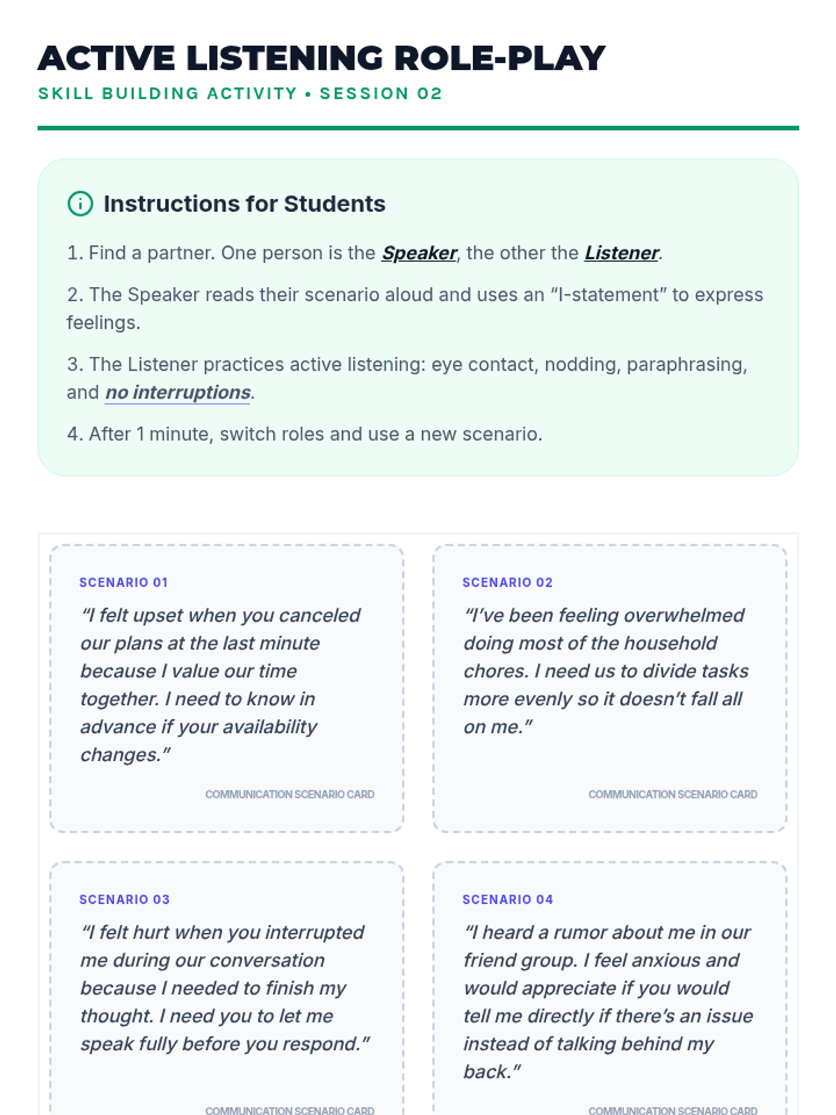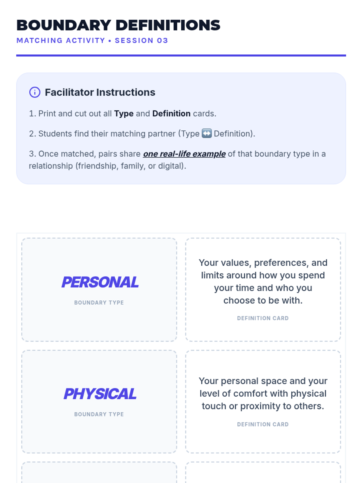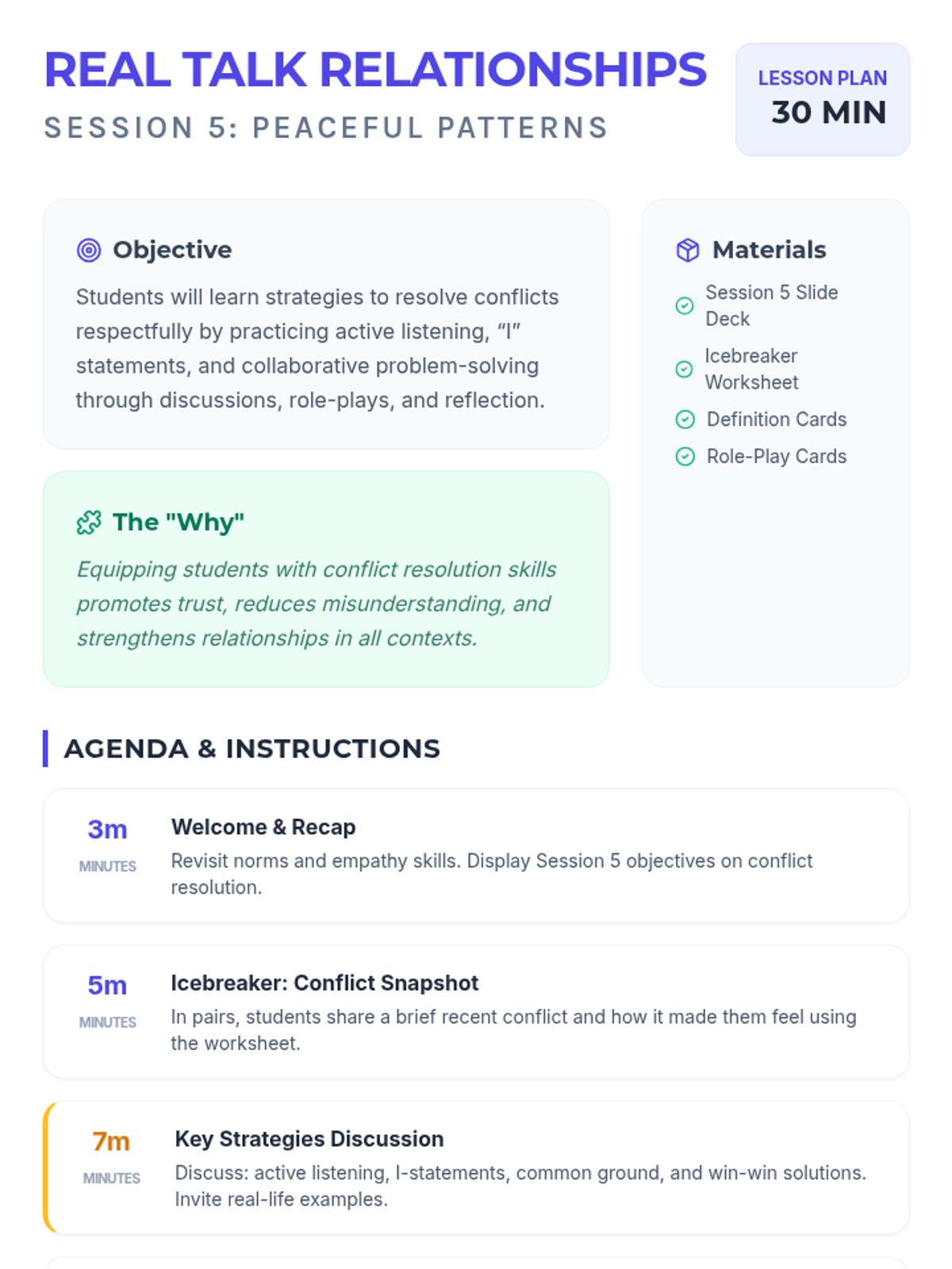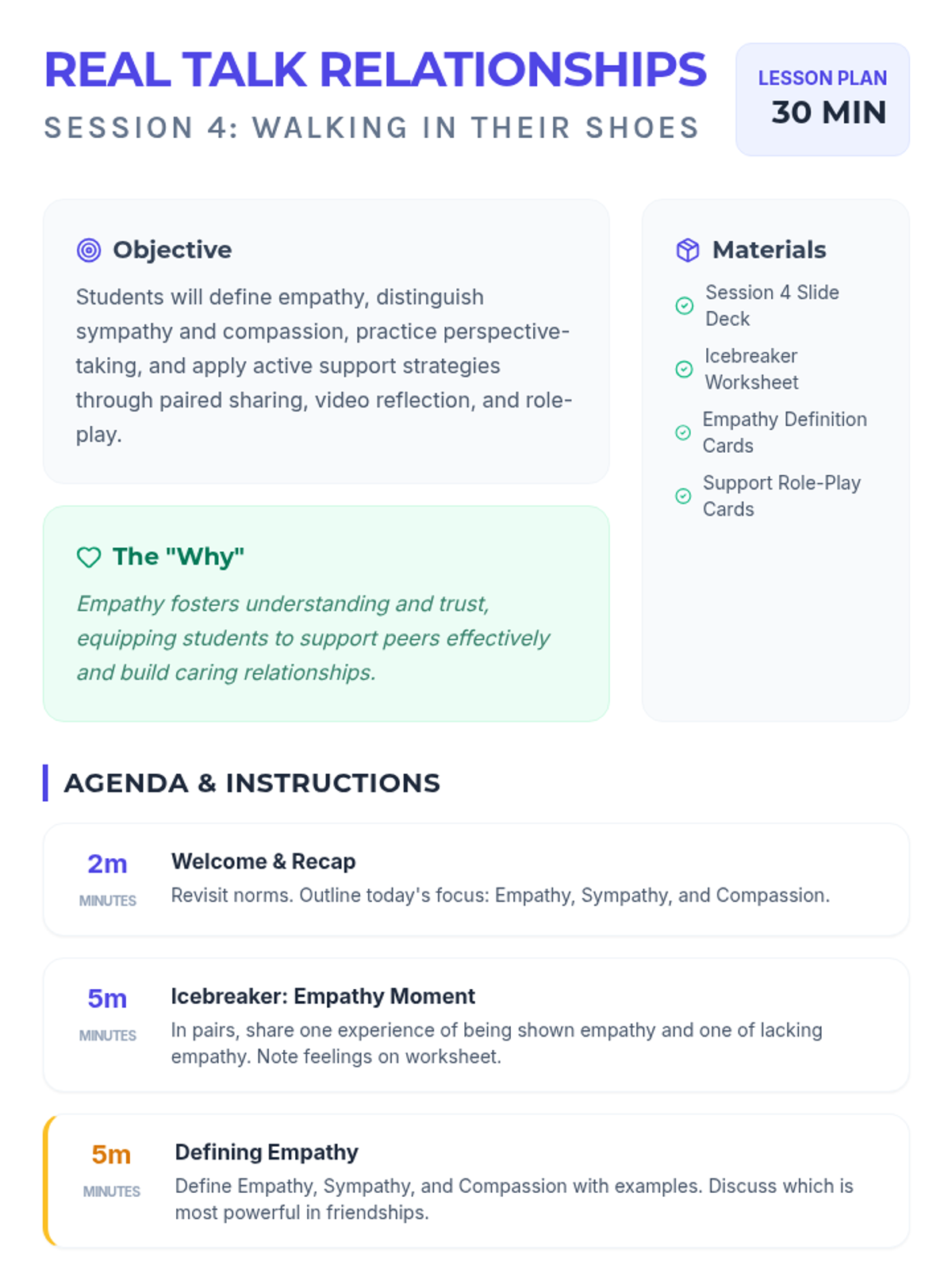 A 10-session course for high school students exploring healthy relationship skills including communication, boundaries, empathy, and conflict resolution across platonic, romantic, and digital contexts.