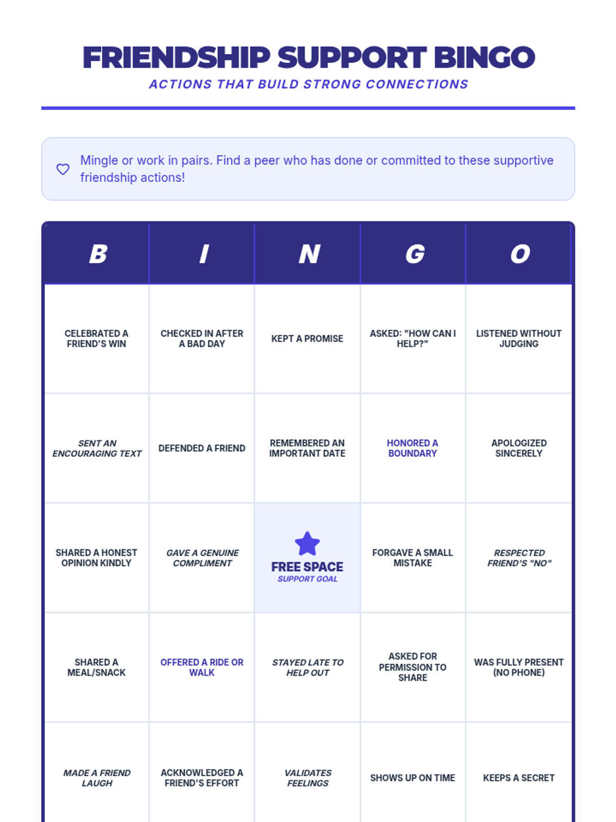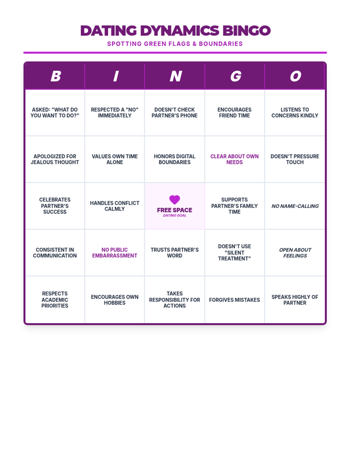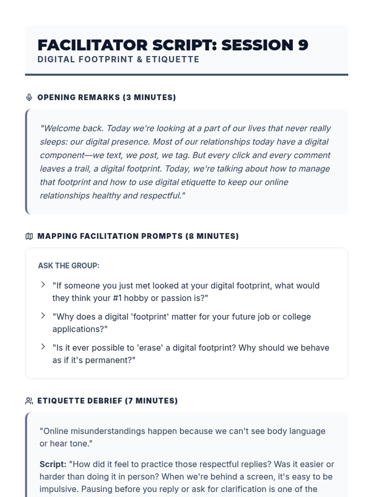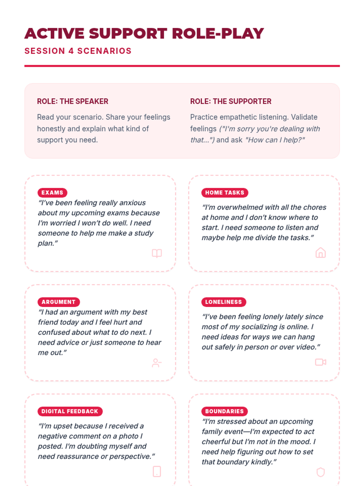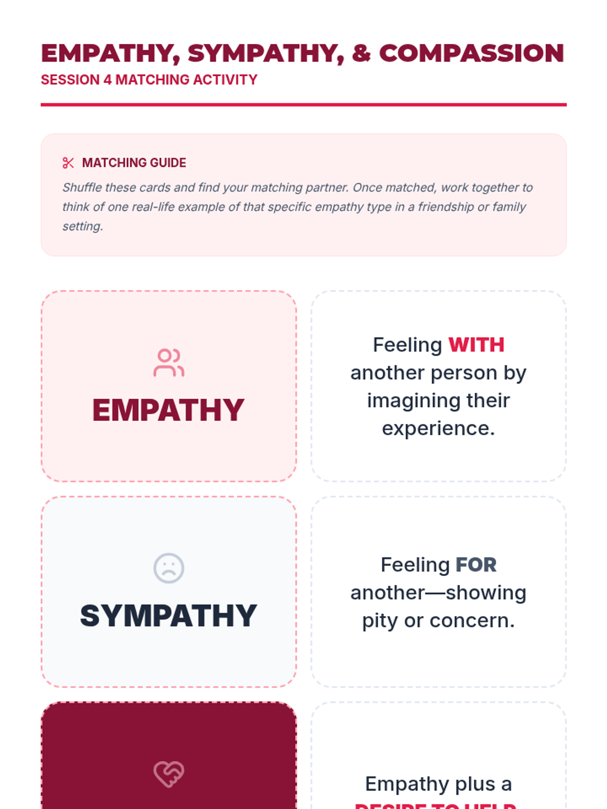 A 10-session course for high school students focused on building and maintaining healthy romantic, platonic, and digital relationships through communication, boundaries, and empathy.
