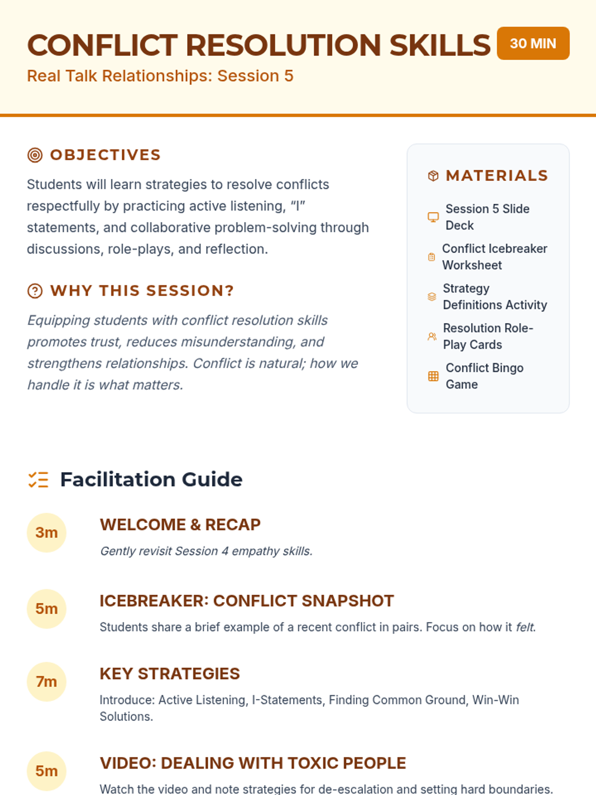 An advanced five-part professional development series for 11th graders focusing on the psychology of conflict, high-stakes communication, and strategic diplomacy. Students prepare for adult environments by mastering emotional intelligence, interest-based negotiation, and professional digital protocols.