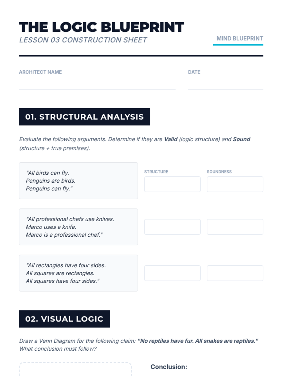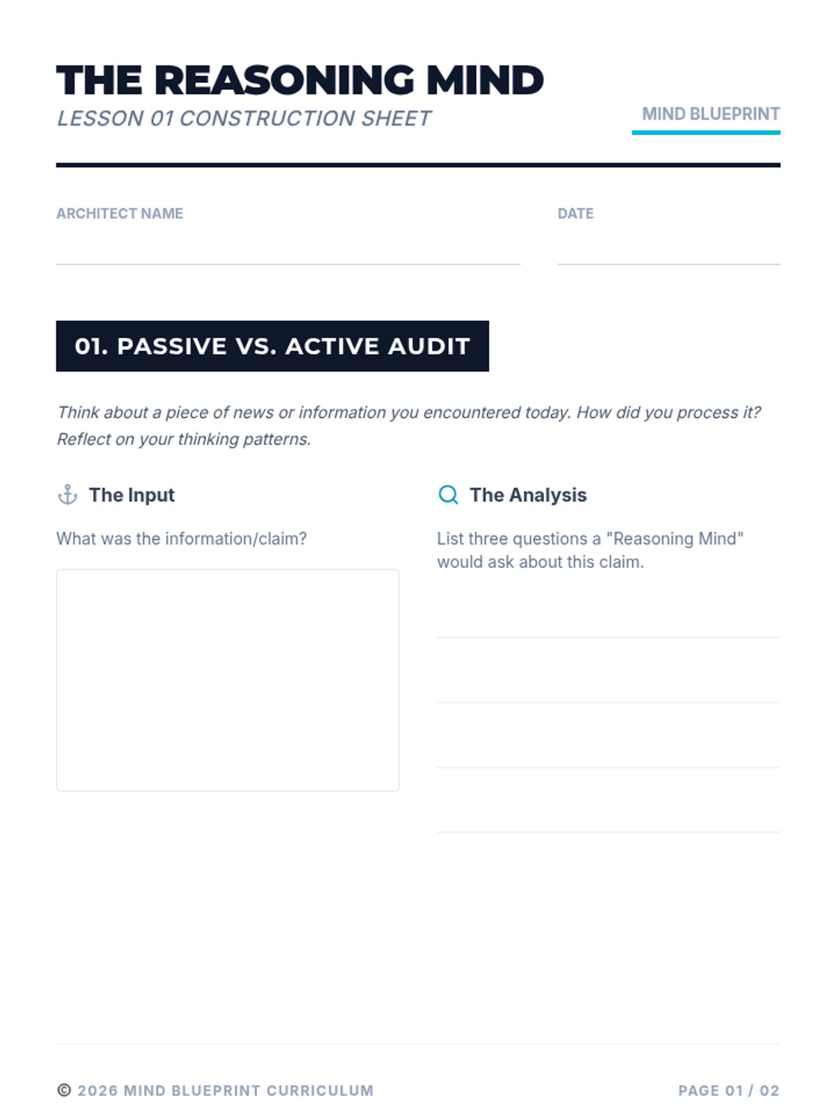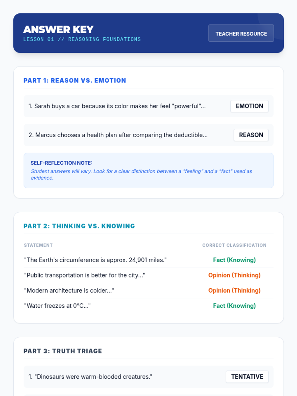 A 12-lesson intensive course on reasoning and critical thinking, aligned with the 'Reasoning Skills Success' framework. This sequence covers everything from the distinction between reason and emotion to complex logical fallacies, statistical analysis, and deductive/inductive logic.