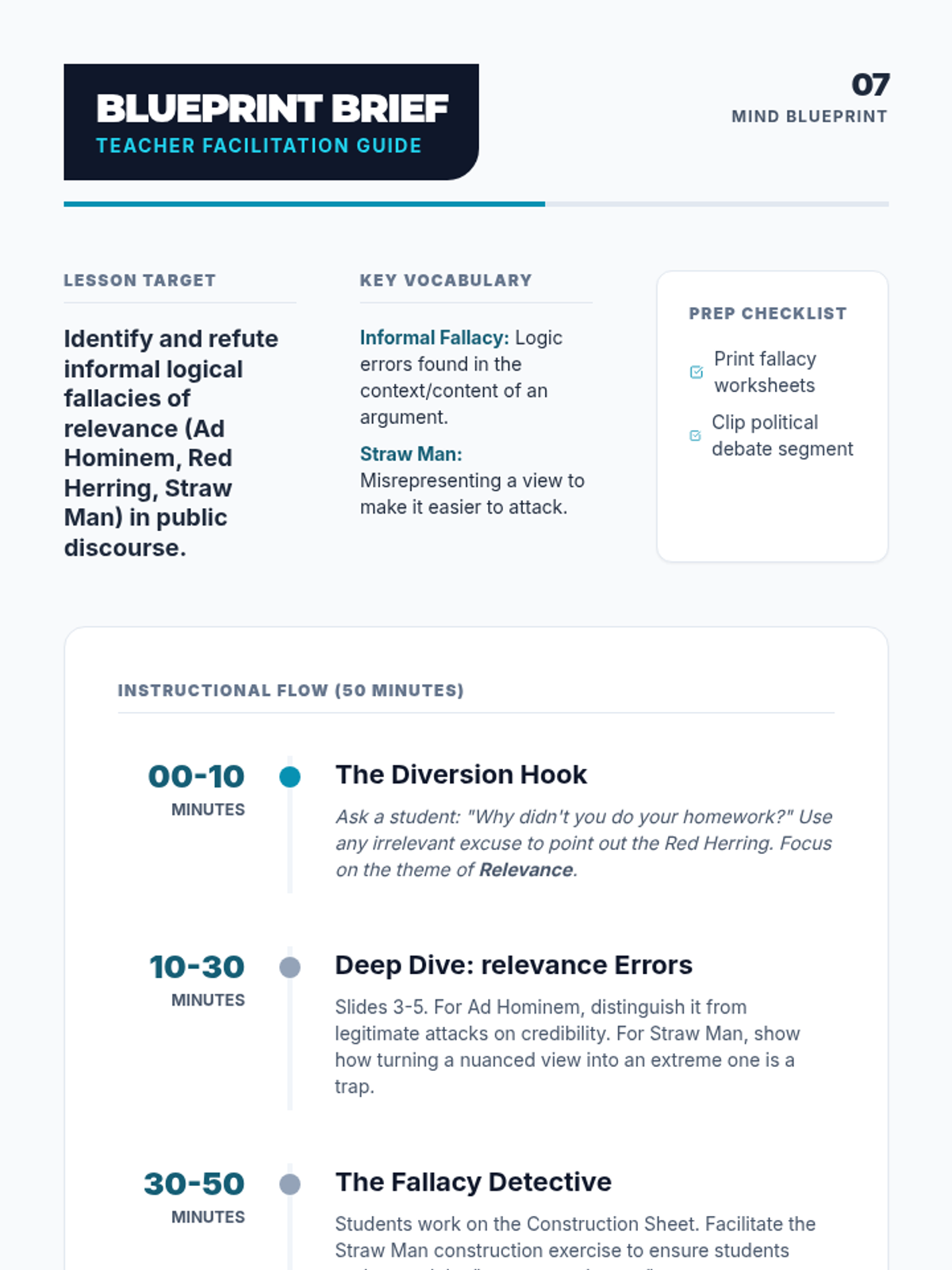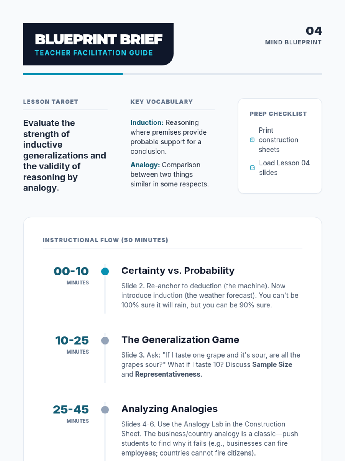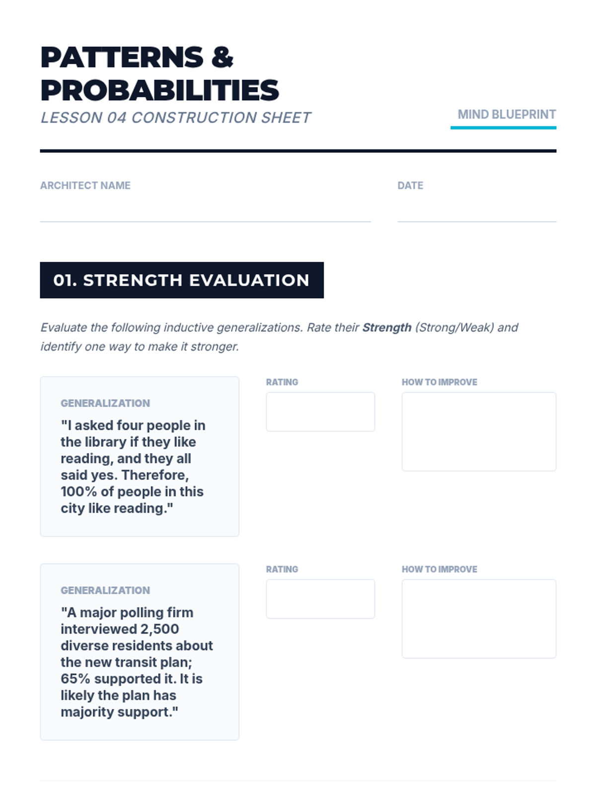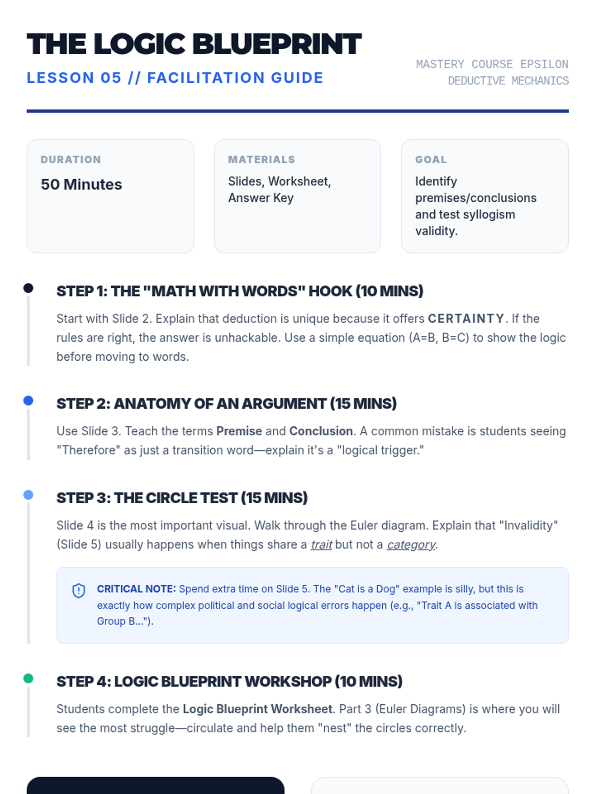 A 12-lesson intensive course on reasoning and critical thinking, aligned with the 'Reasoning Skills Success' framework. This sequence covers everything from the distinction between reason and emotion to complex logical fallacies, statistical analysis, and deductive/inductive logic.