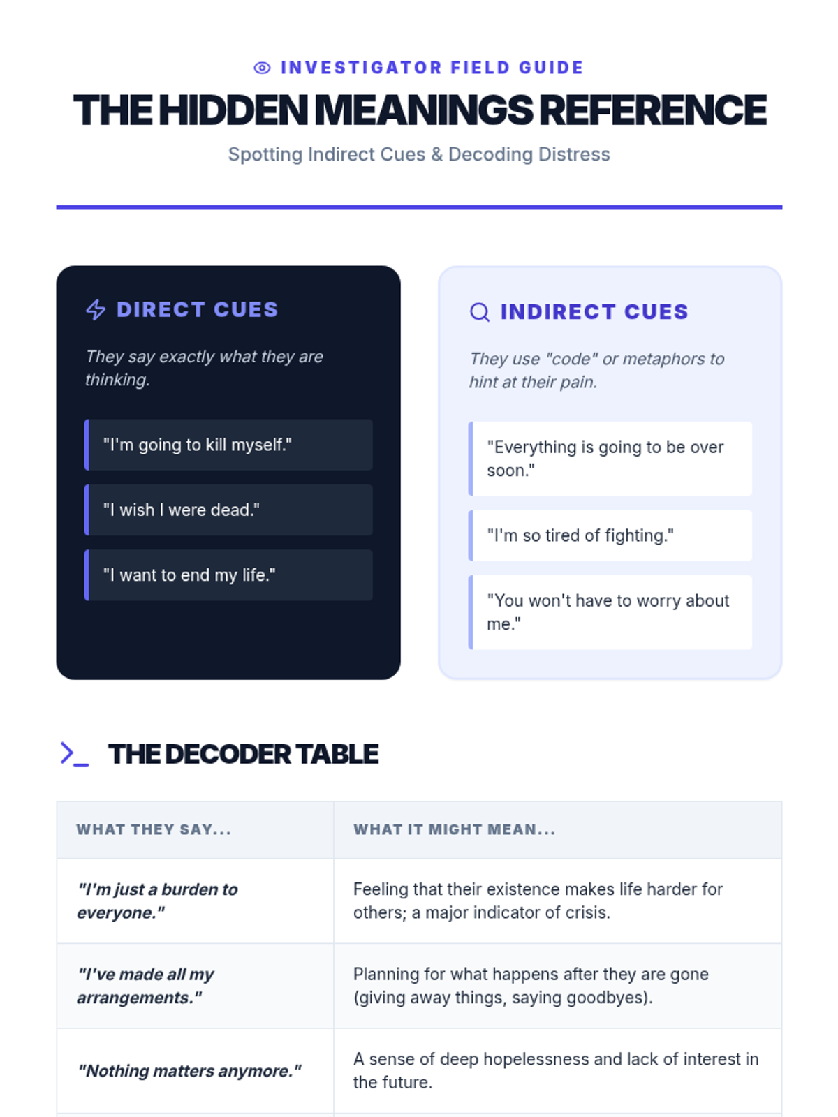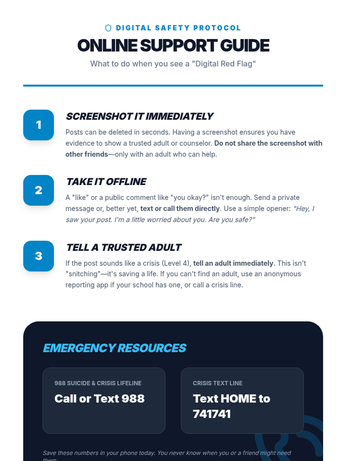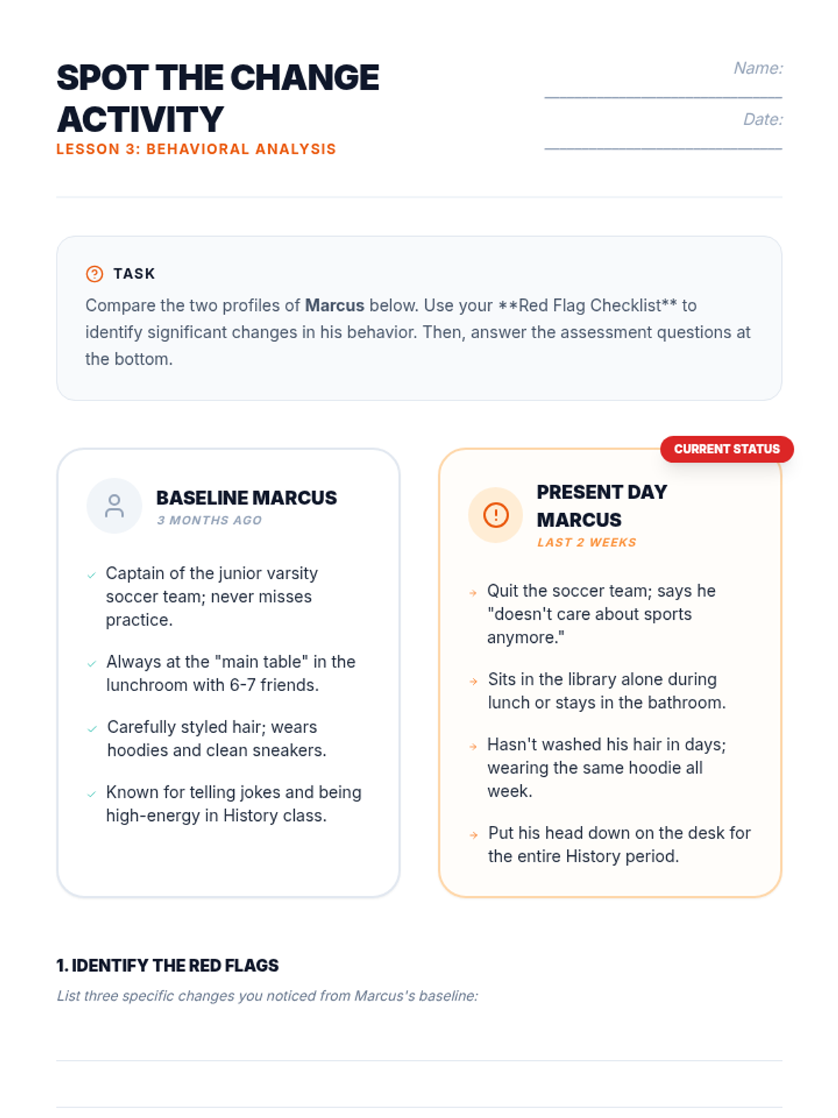 A comprehensive 5-lesson unit for 7th graders focused on identifying mental health crises through emotional, verbal, behavioral, and digital indicators. Students learn to distinguish between normal stress and critical situations requiring adult intervention.