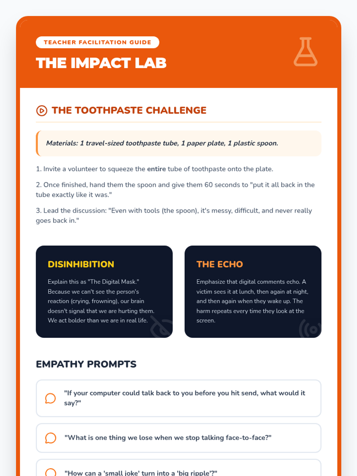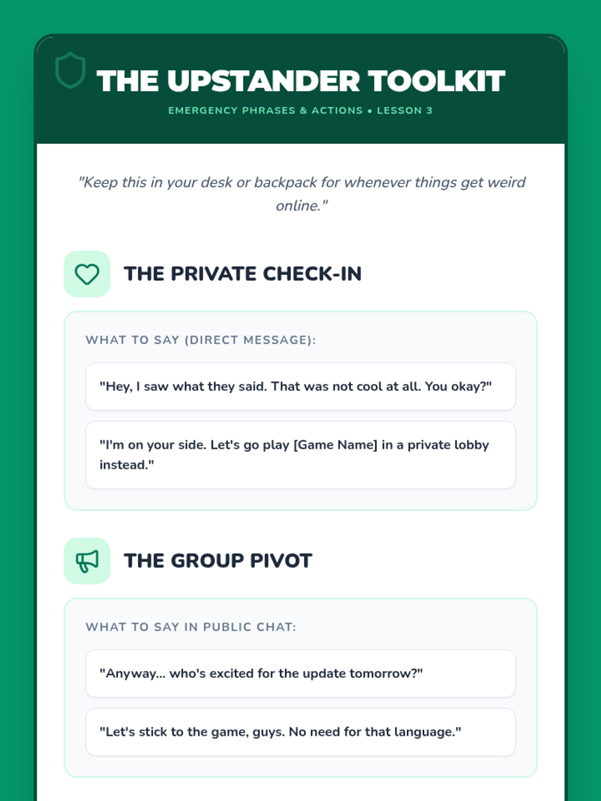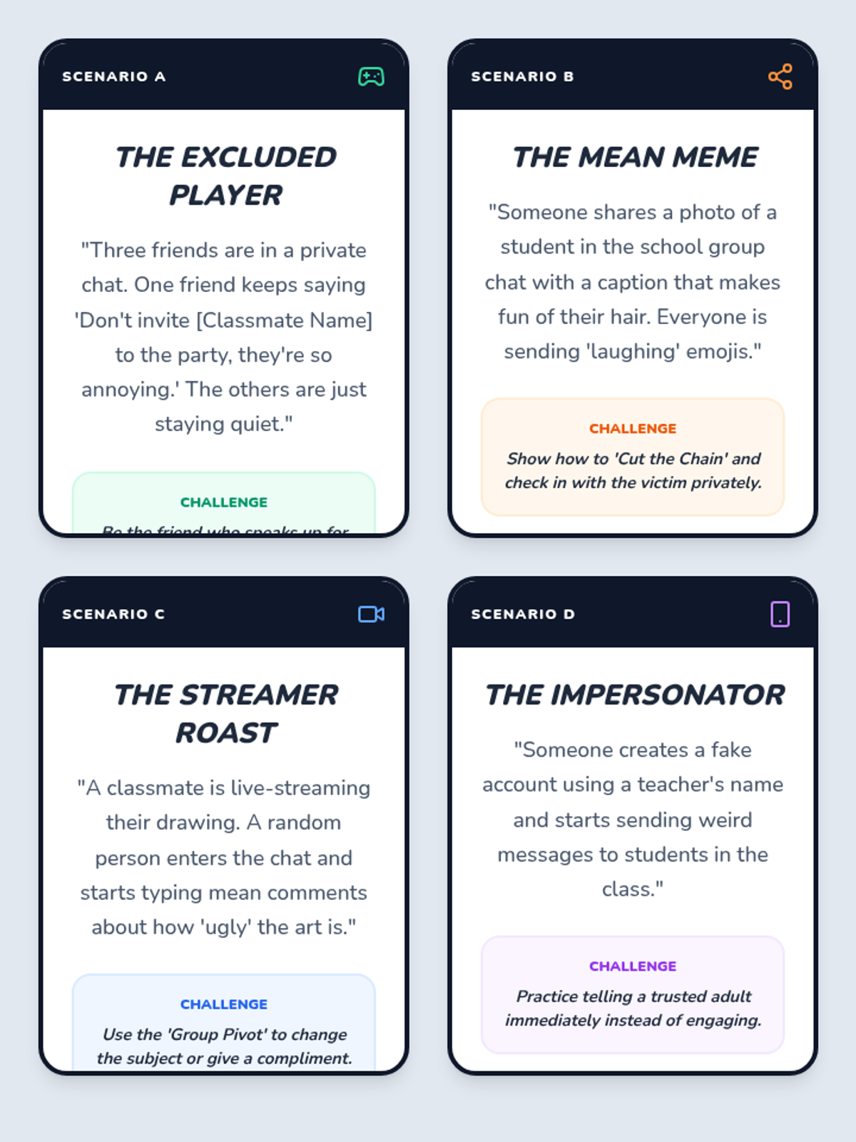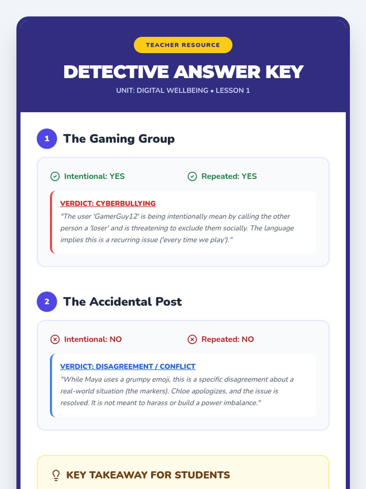 A comprehensive 4th-grade sequence on recognizing and preventing cyberbullying. Students progress from defining harmful online behaviors to practicing active upstander strategies and promoting a culture of digital kindness.