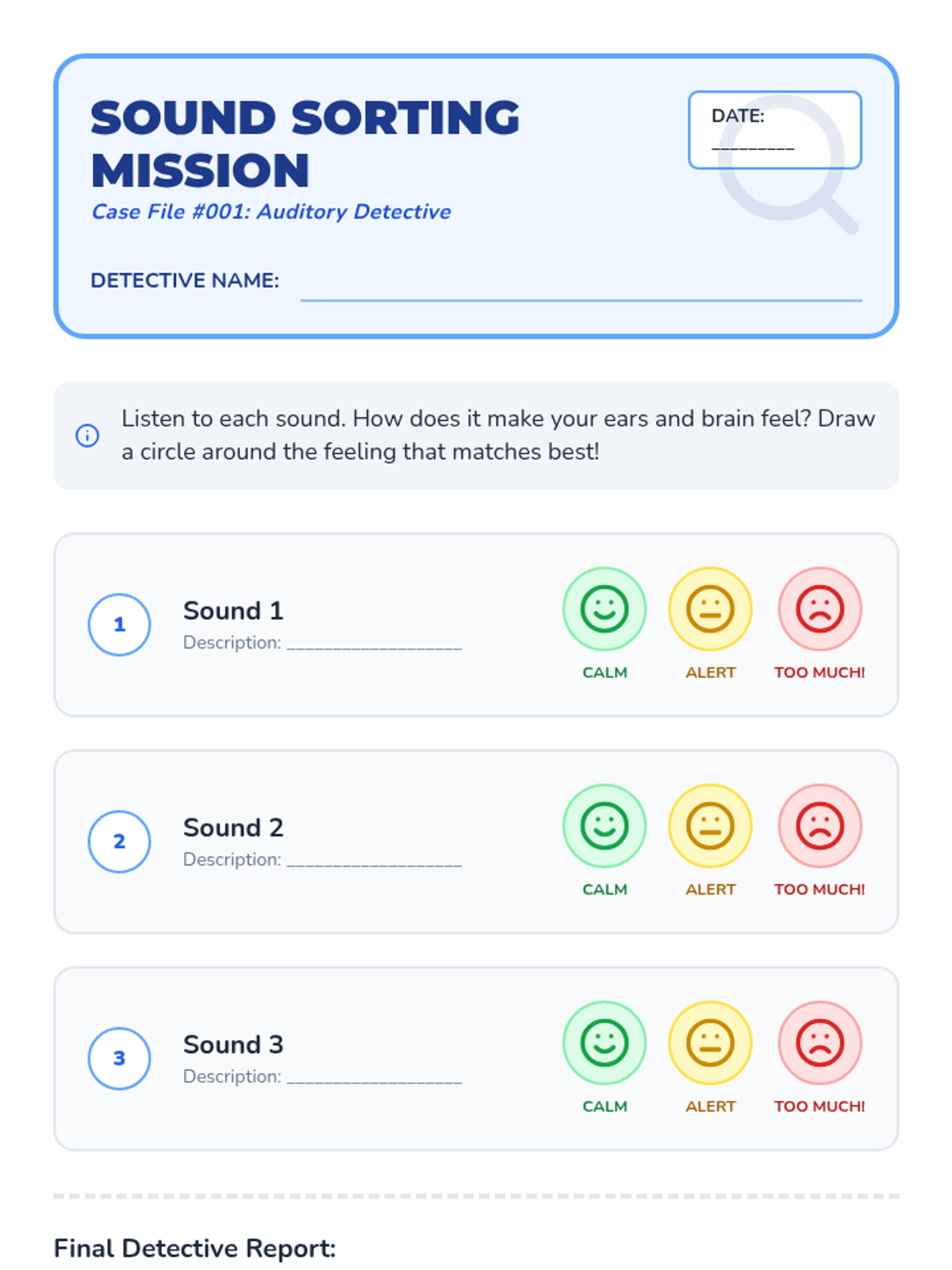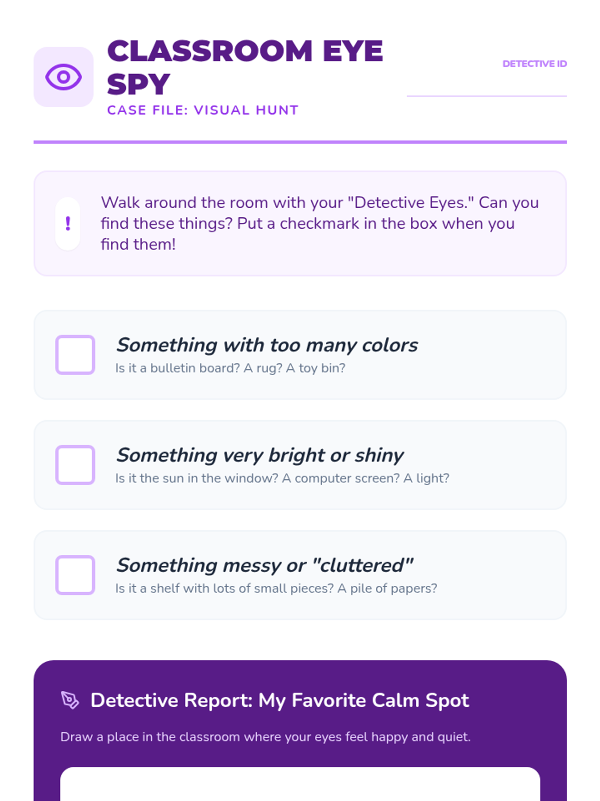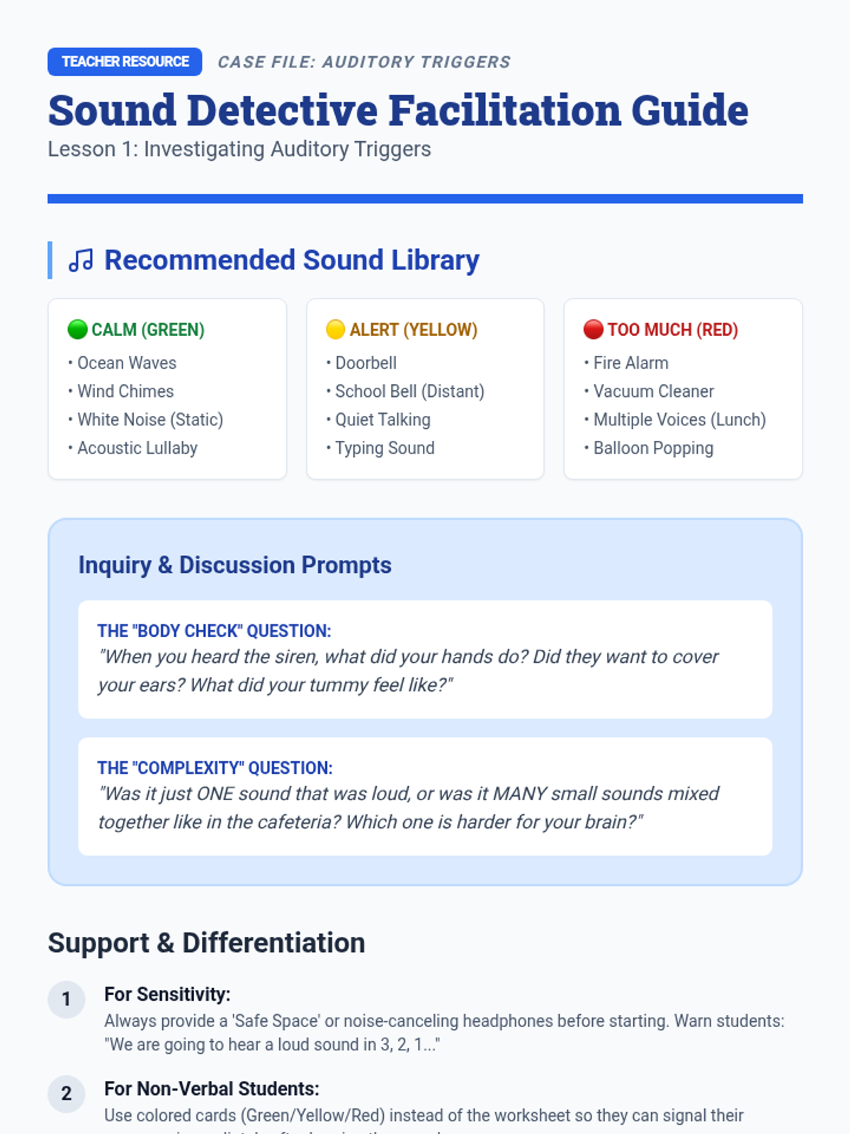 A comprehensive sequence for 1st-grade students focused on identifying auditory, visual, and tactile triggers within their environment to better recognize and communicate sensory overload.