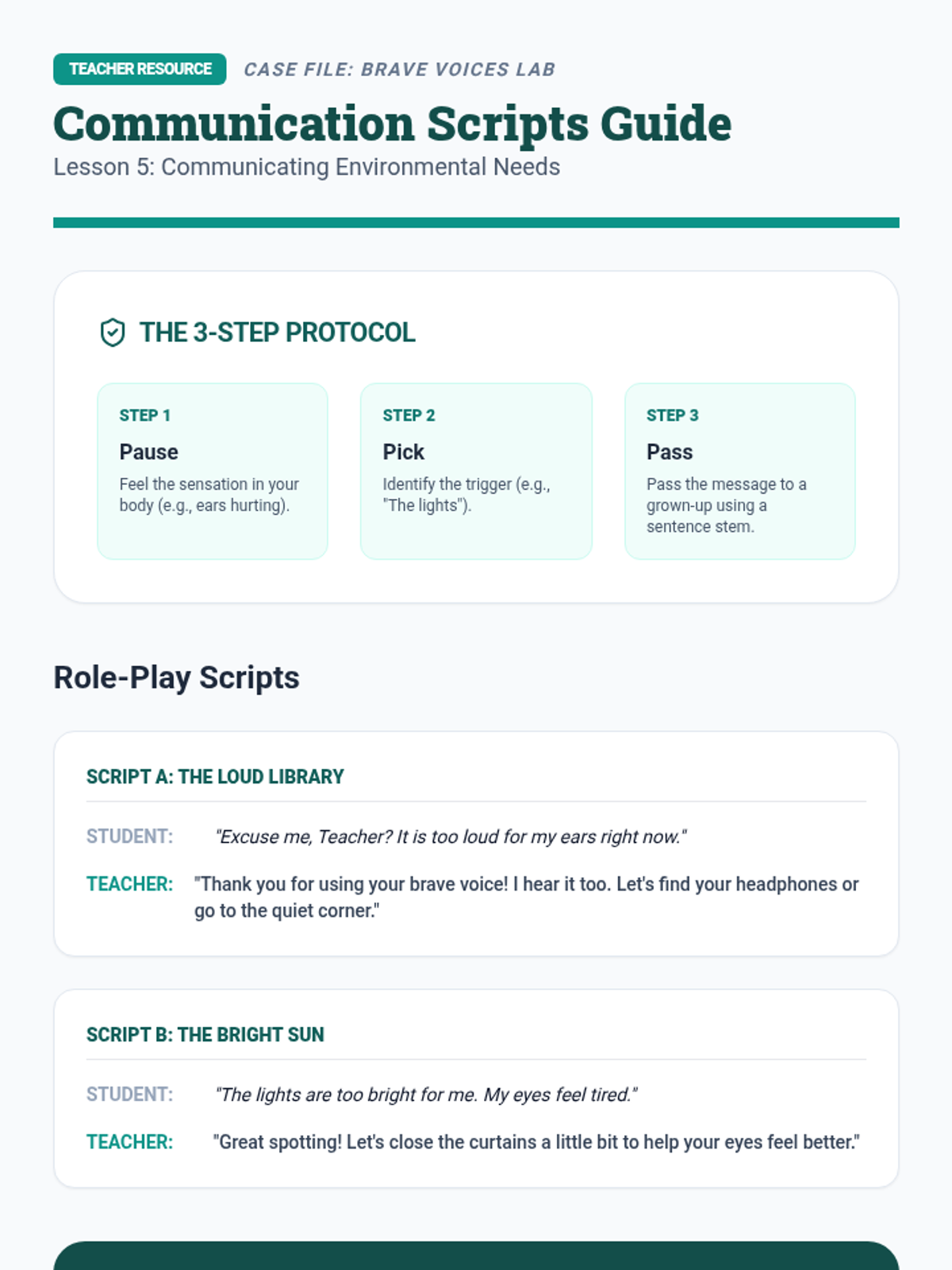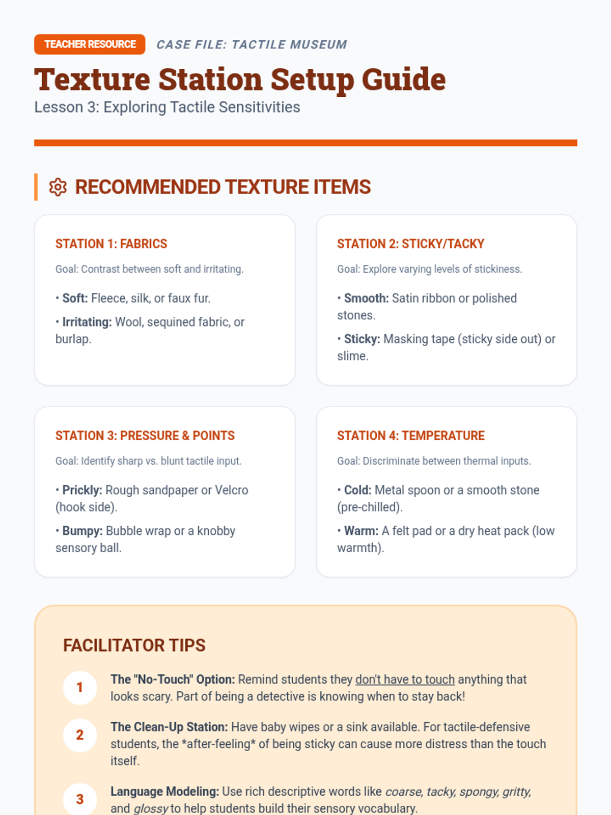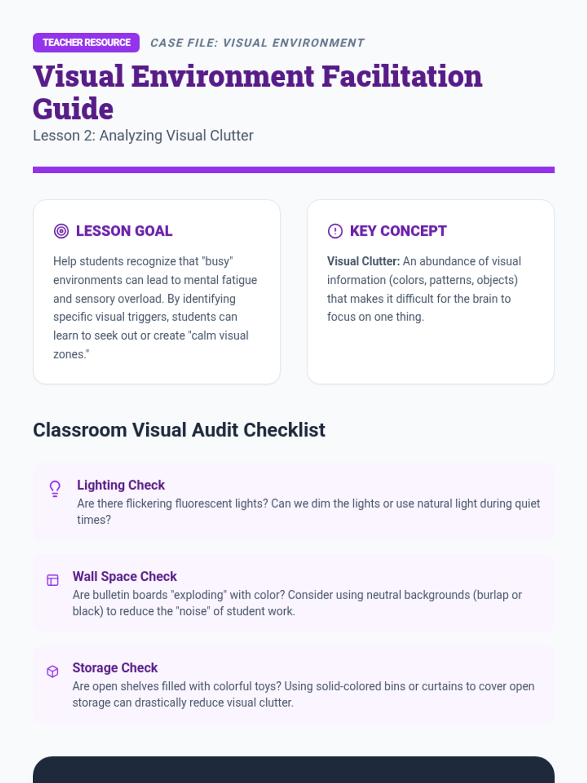 A comprehensive sequence for 1st-grade students focused on identifying auditory, visual, and tactile triggers within their environment to better recognize and communicate sensory overload.