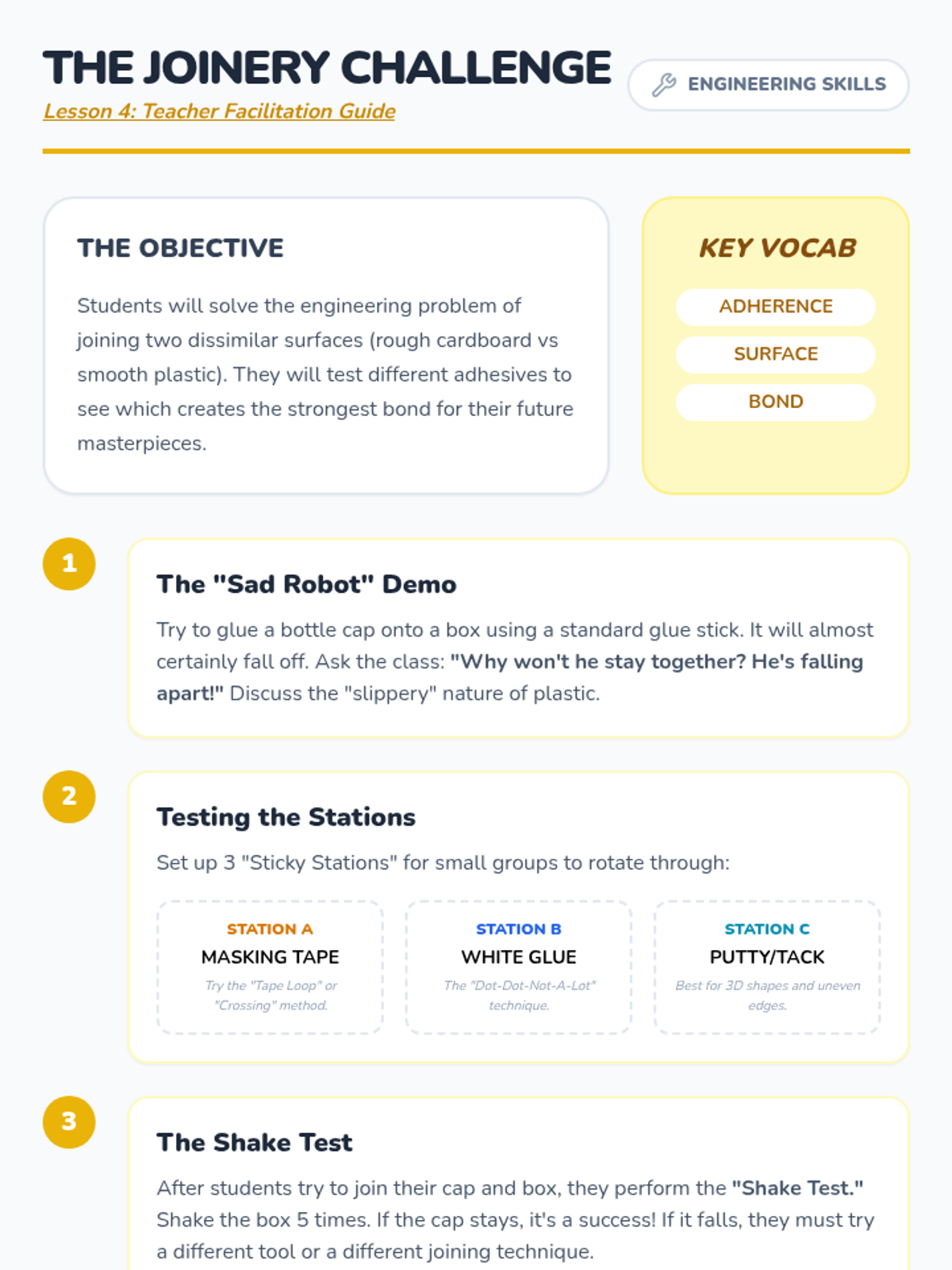 A hands-on introductory sequence for early elementary students to explore the mechanics of levers and fulcrums using everyday classroom objects.