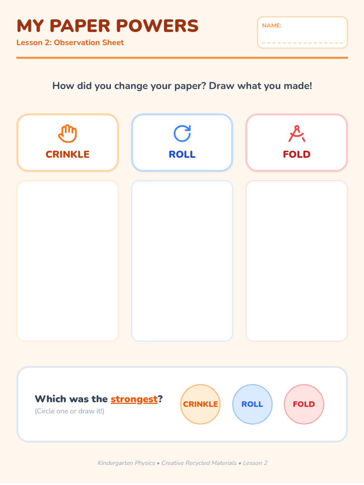 A Pre-K physics sequence exploring three-dimensional solids. Students investigate the properties of spheres, cubes, cylinders, and cones through hands-on experimentation with rolling, stacking, and sliding to understand how shape dictates movement and stability.