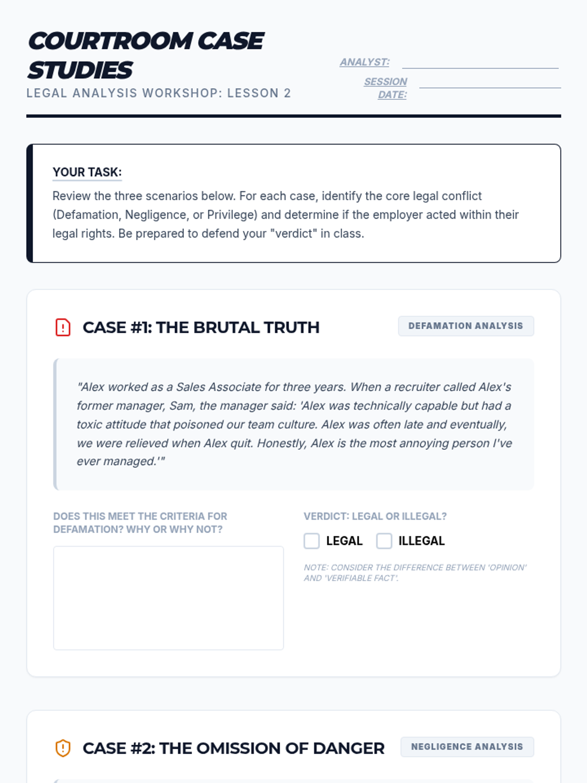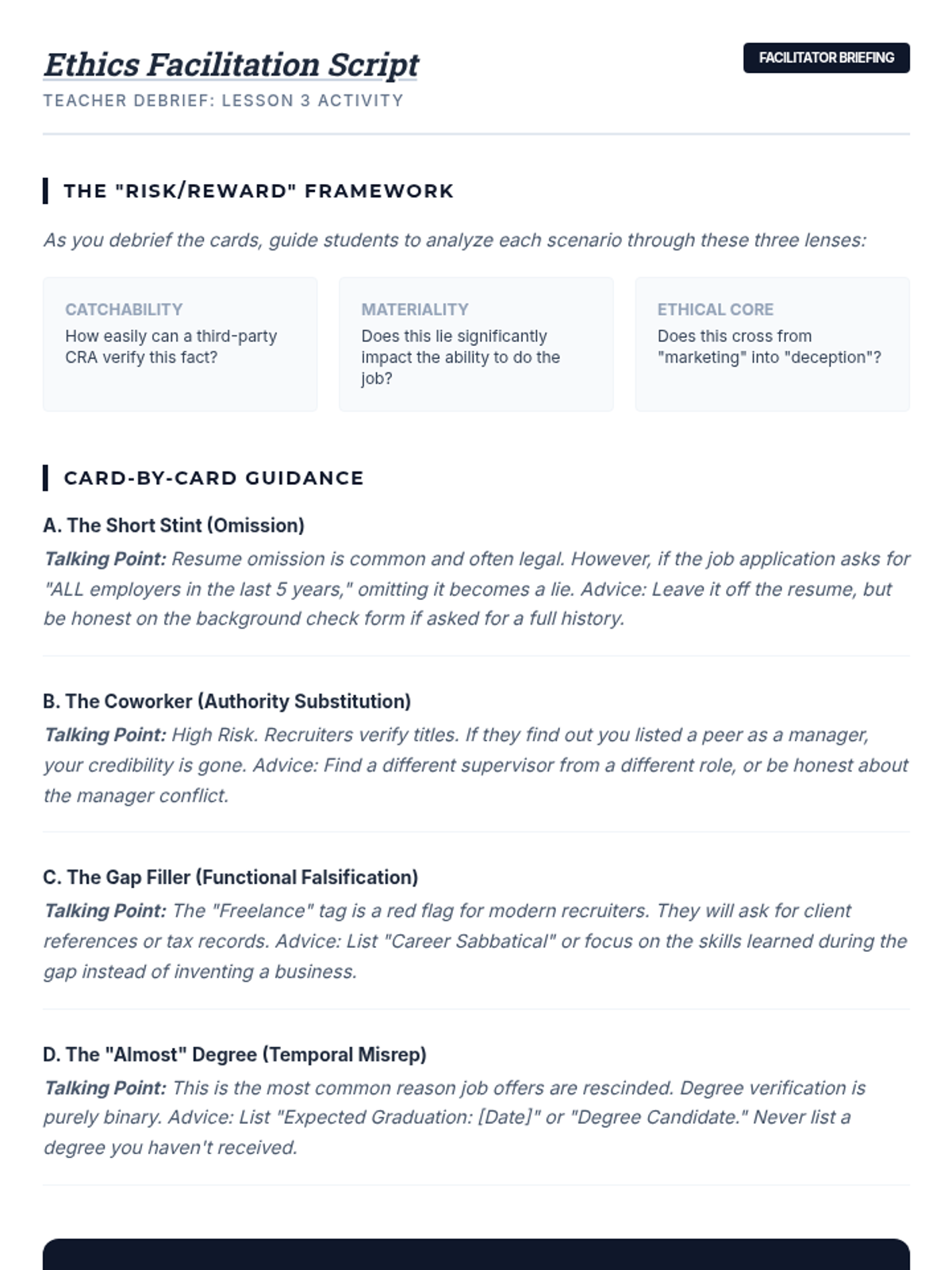 This sequence for undergraduate students explores the legal, ethical, and investigative aspects of professional references and background checks. It prepares students for corporate and government hiring through a flipped classroom model focused on rights, responsibilities, and professional integrity.