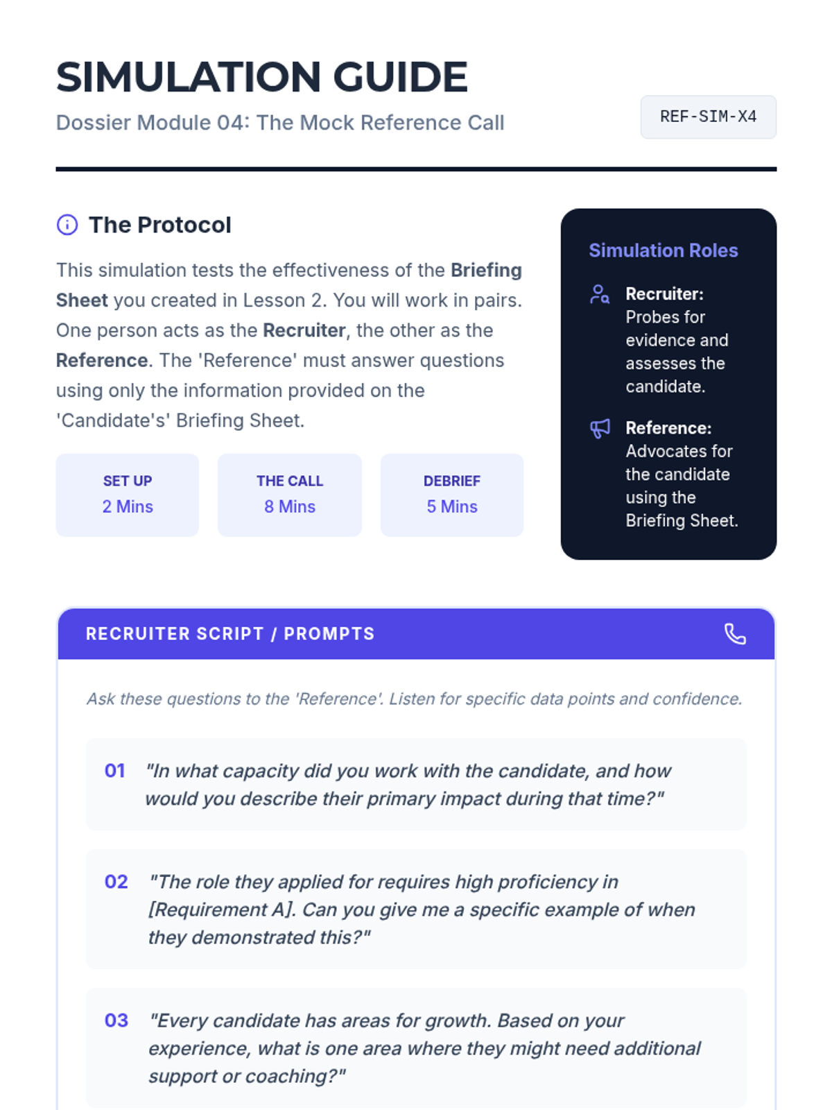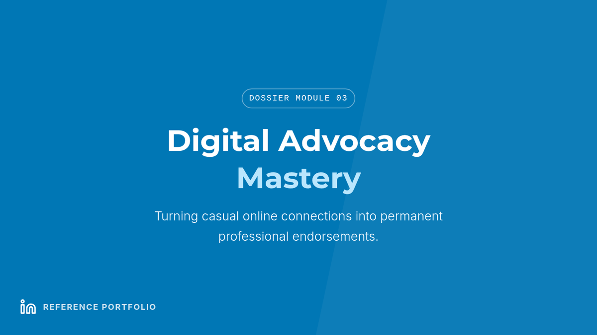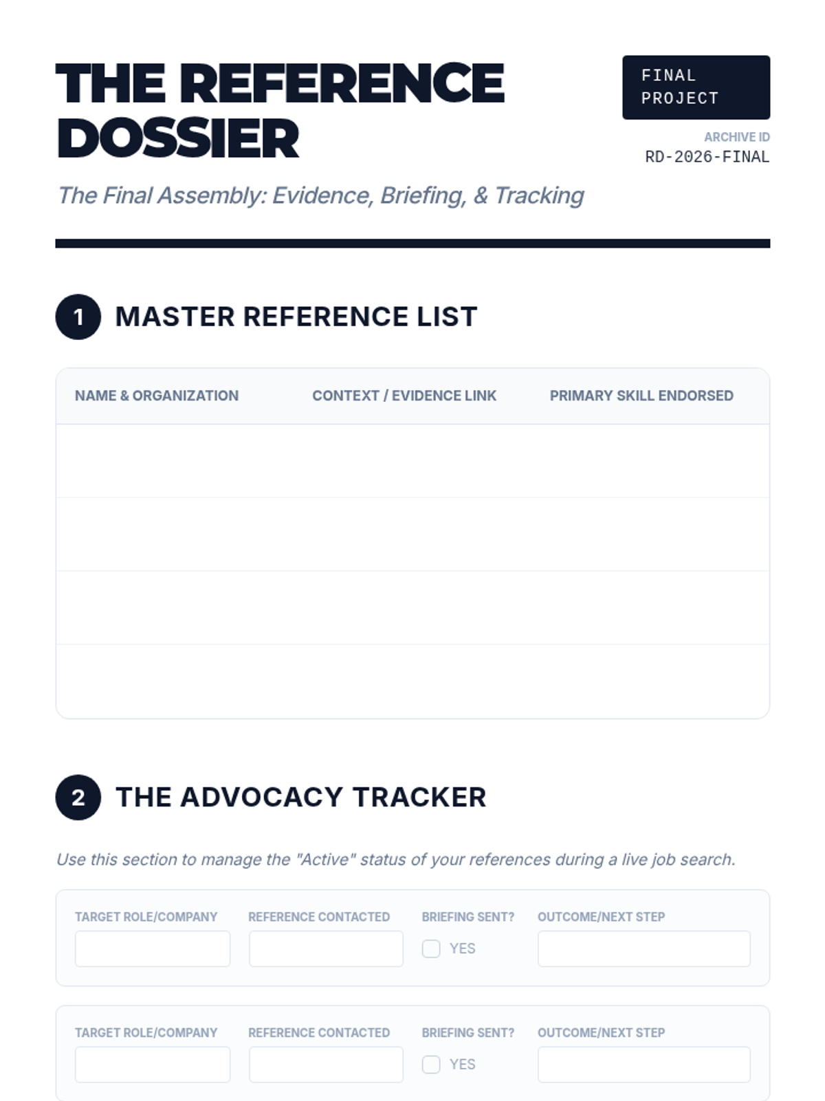 A project-based sequence for undergraduate students focused on transforming the process of providing professional references into an active 'Reference Portfolio' project. Students learn to curate evidence, brief their contacts effectively, and manage their professional reputation across digital and traditional platforms.