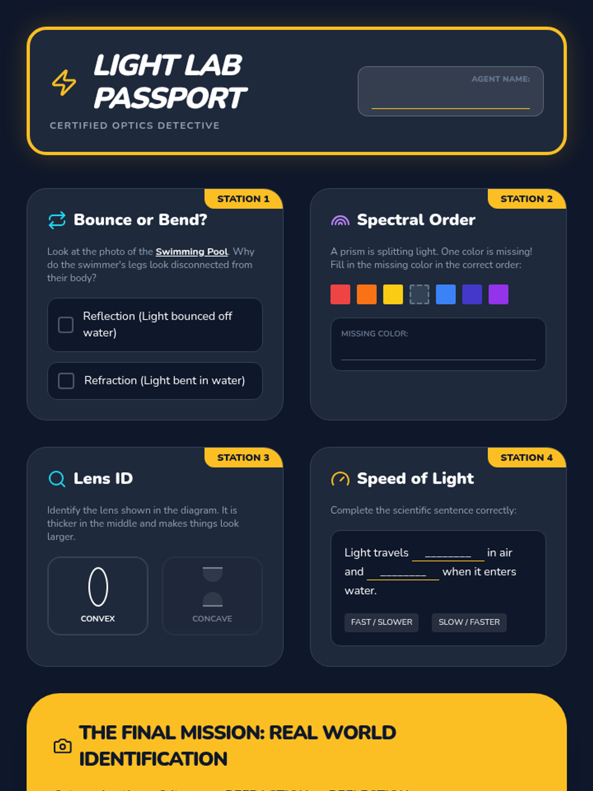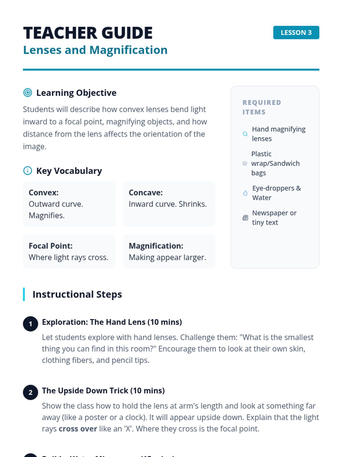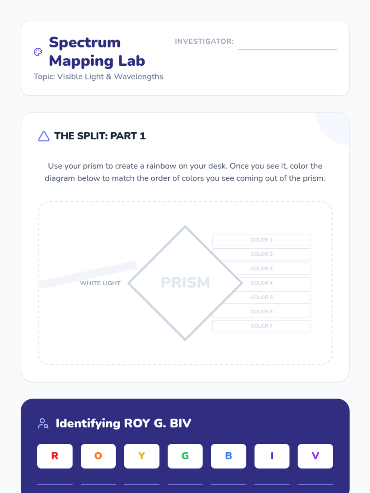 A 5-lesson unit for 4th graders exploring refraction, prisms, and lenses. Students use a hands-on lab approach to investigate how light bends and splits into colors.