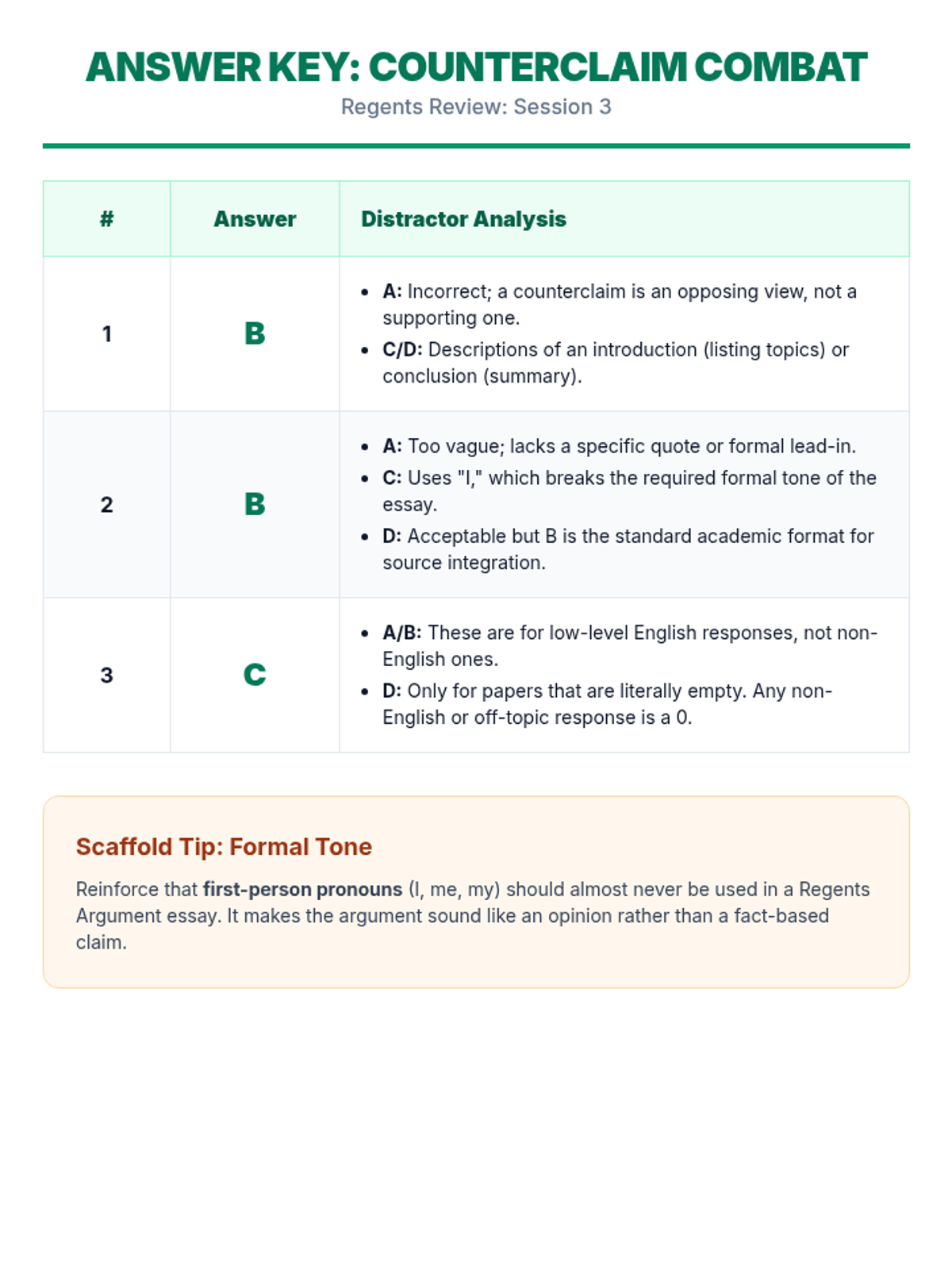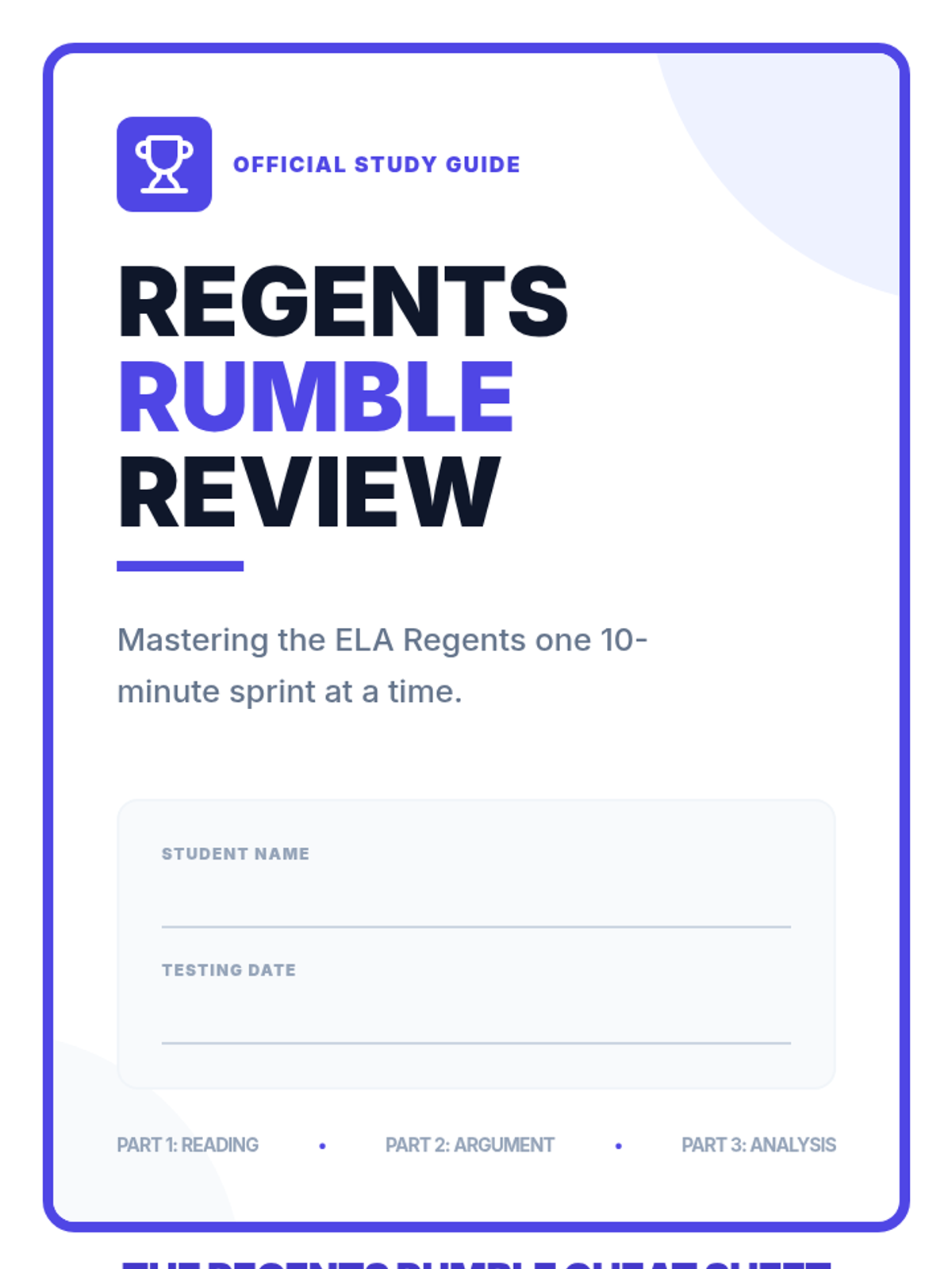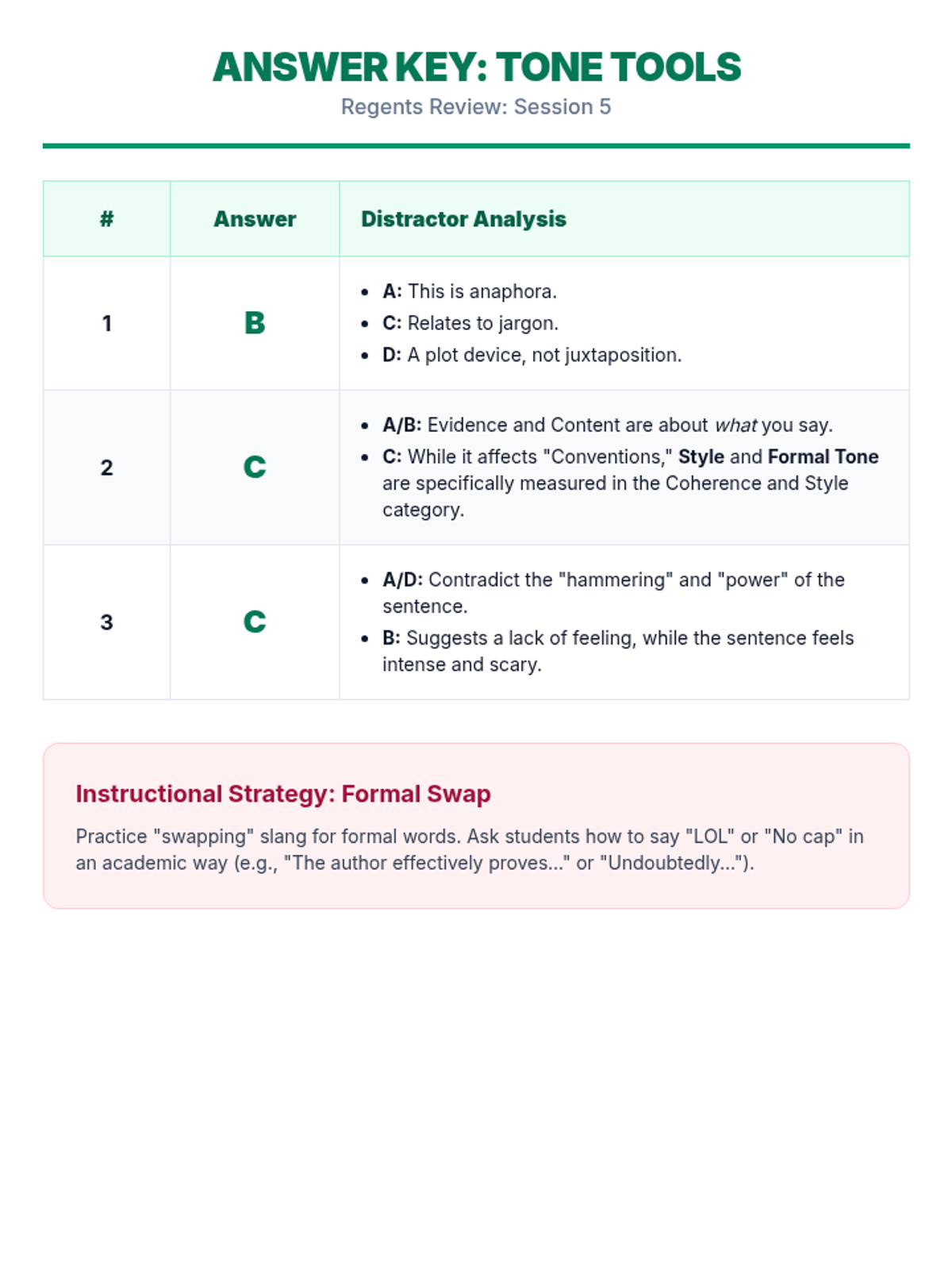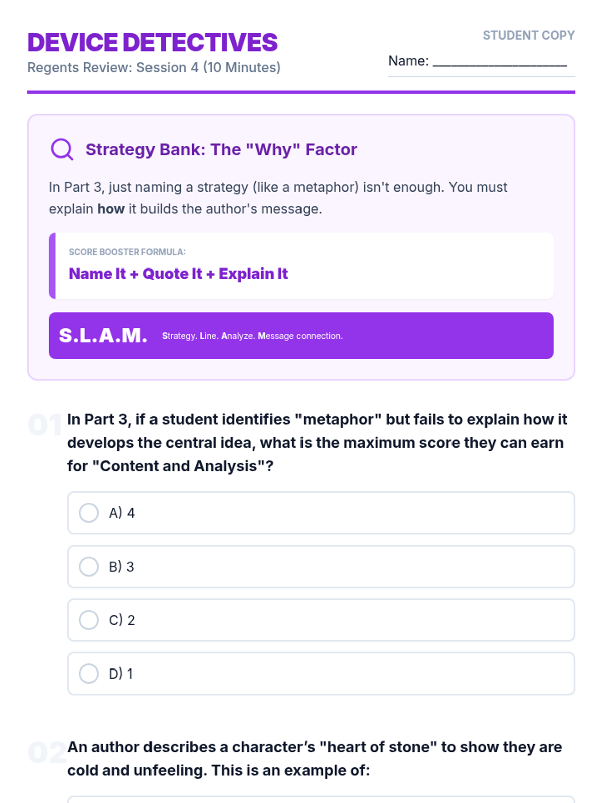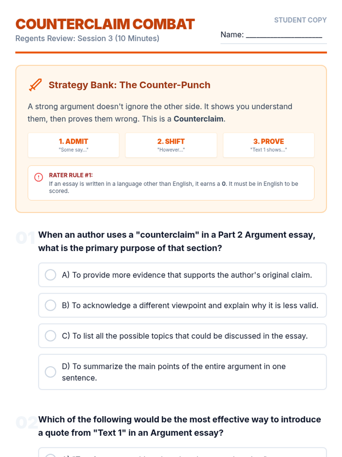 A comprehensive 6-lesson spiraling review sequence designed to prepare students for the ELA Regents exam through 10-minute daily practice sessions. Each lesson focuses on specific exam sets and high-impact test-taking strategies.