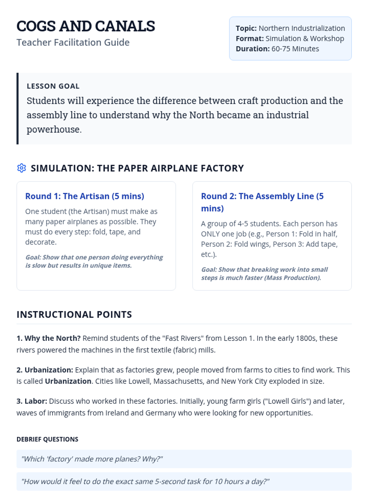 A 13-day journey through modern American history, from the Industrial Revolution to the present day, focusing on key historical figures and major conflicts as outlined in the 5th Grade TEKS. Each lesson is designed for a quick 30-minute block, integrating multimedia and primary source analysis.