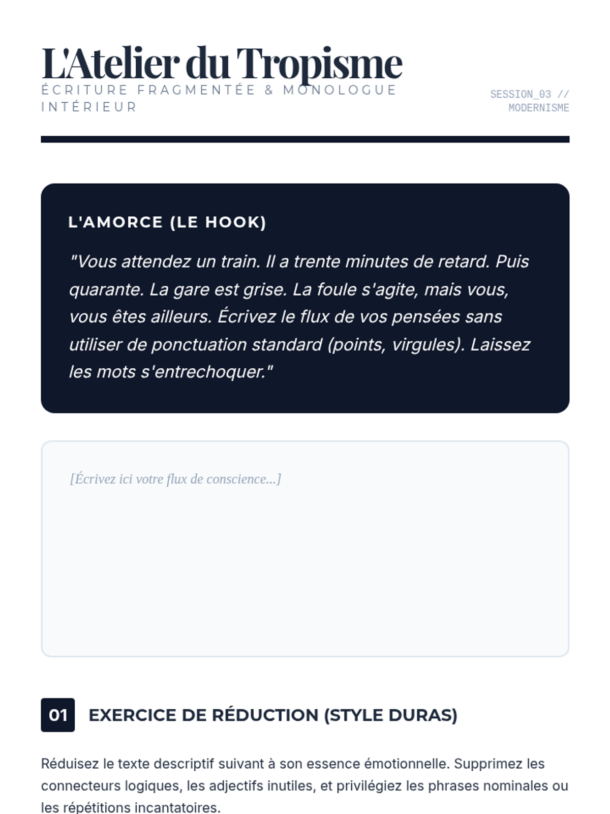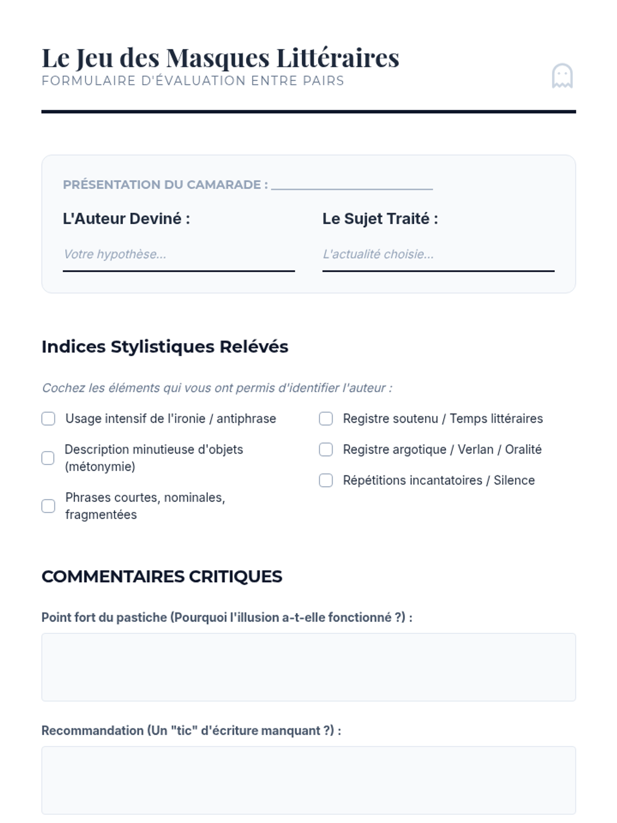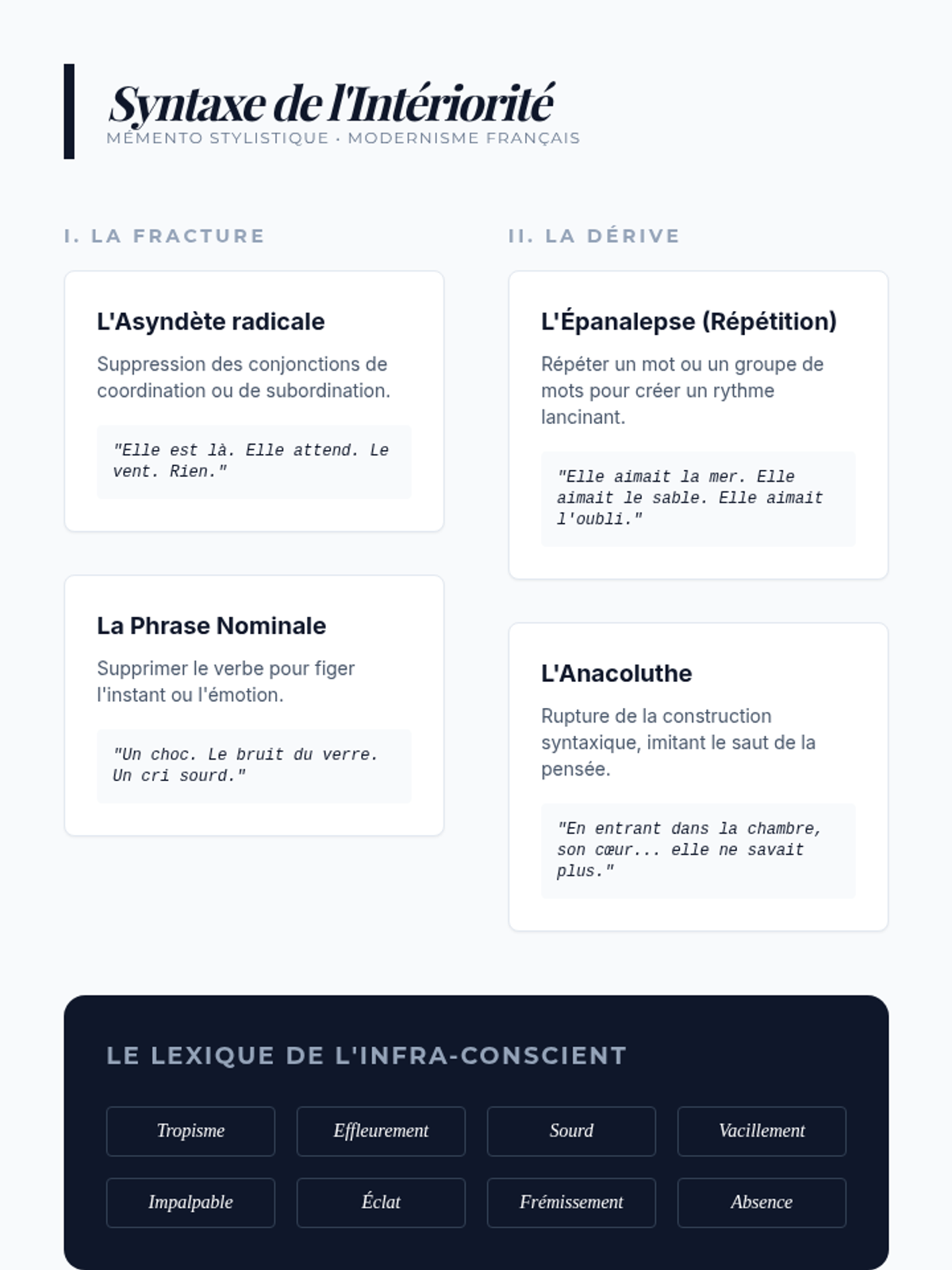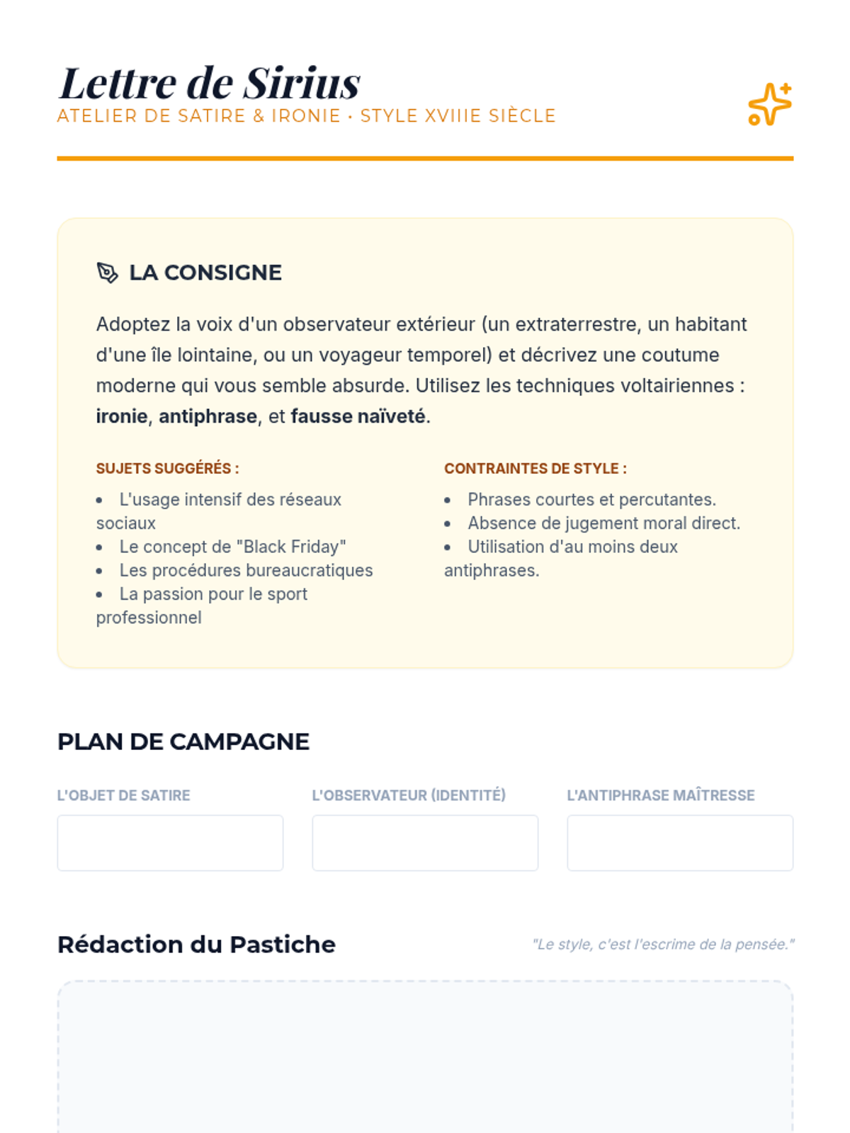 A graduate-level writing sequence focused on deconstructing and reconstructing French literary voices through the study of register, pastiche, and narrative authority. Students analyze styles ranging from 18th-century satire to modern fragmentation to master the art of register manipulation.