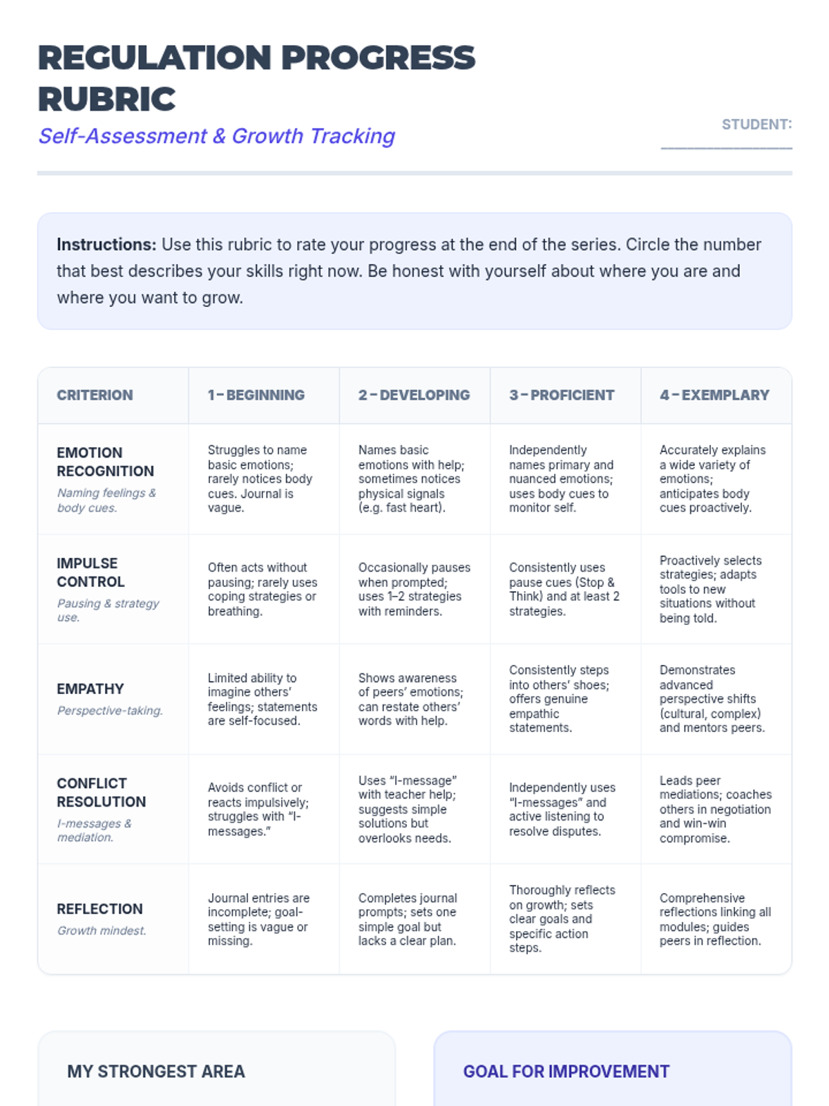 A 12-week sophisticated intervention for middle schoolers (ages 10-13) to master impulse control, emotional intelligence, and interpersonal trust using a behavioral analysis framework.