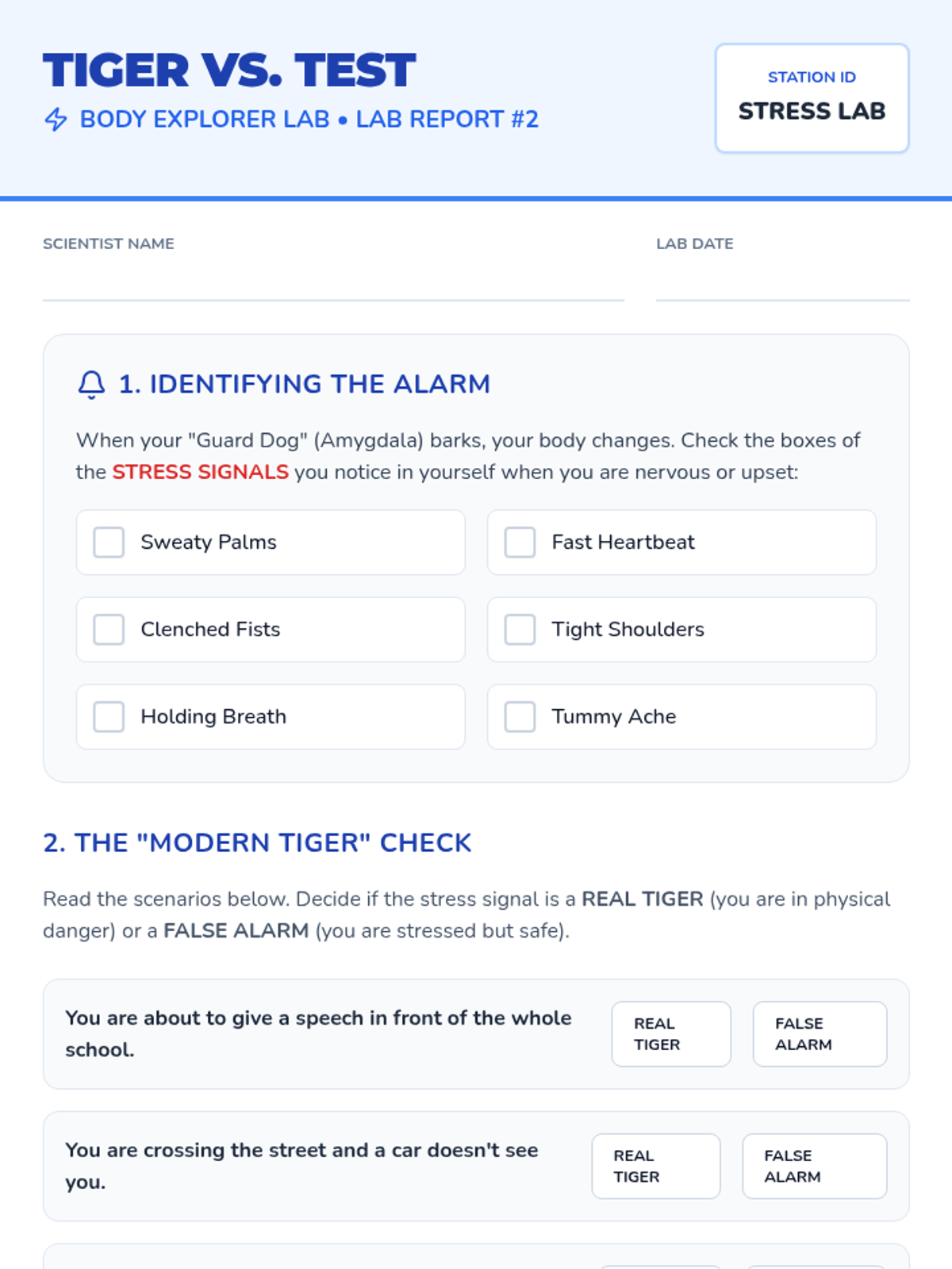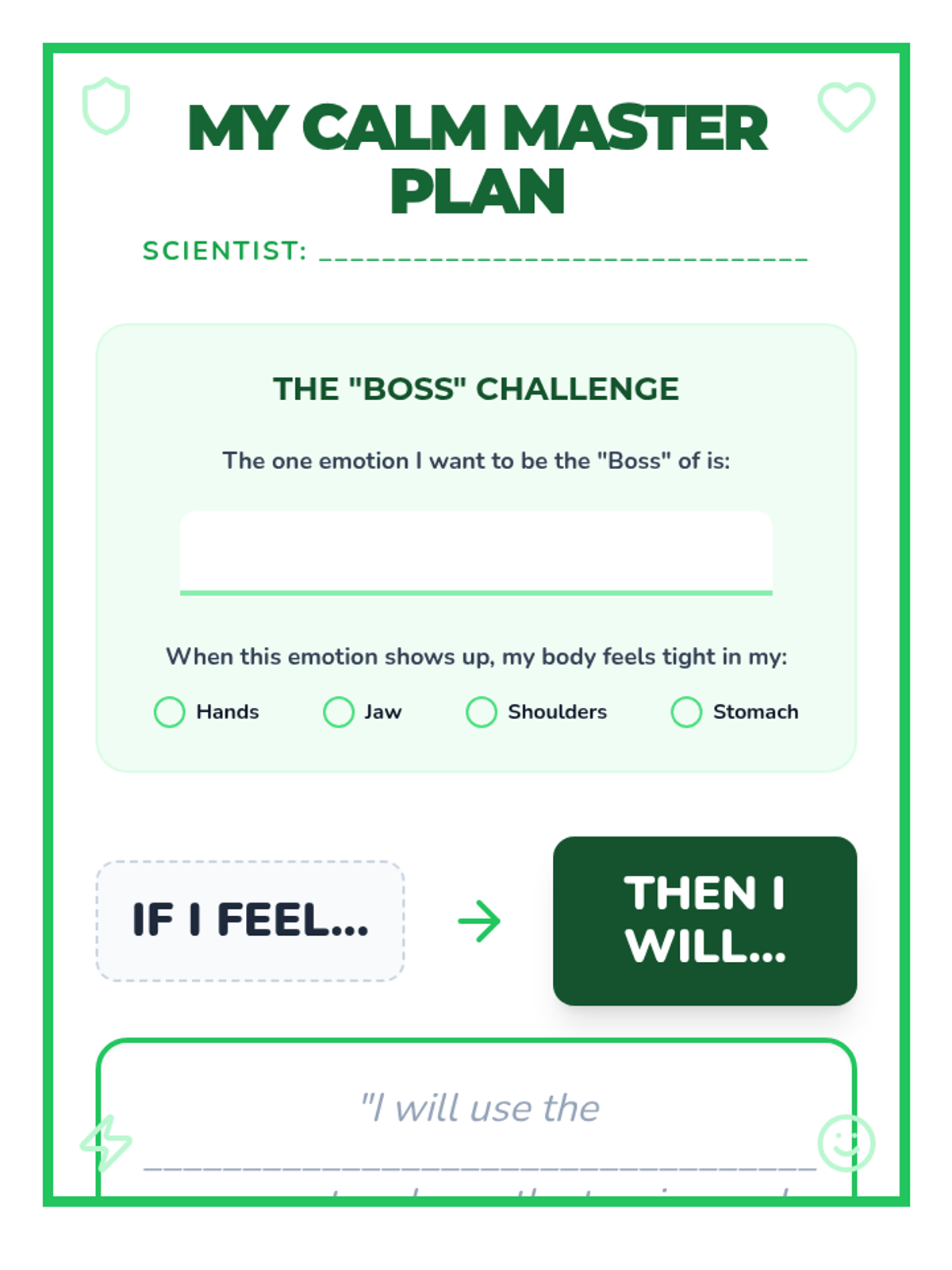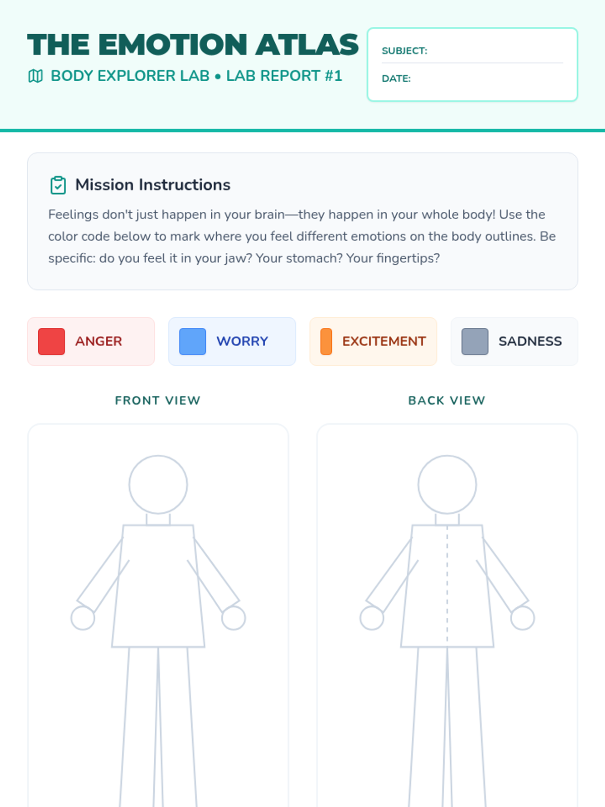 A 5-lesson sequence for 4th graders exploring the link between emotional stress and physical tension, using Progressive Muscle Relaxation (PMR) as a primary regulation tool. Students map emotions in the body, learn the science of stress, and practice PMR in simulated real-world scenarios like tests and playground conflicts.