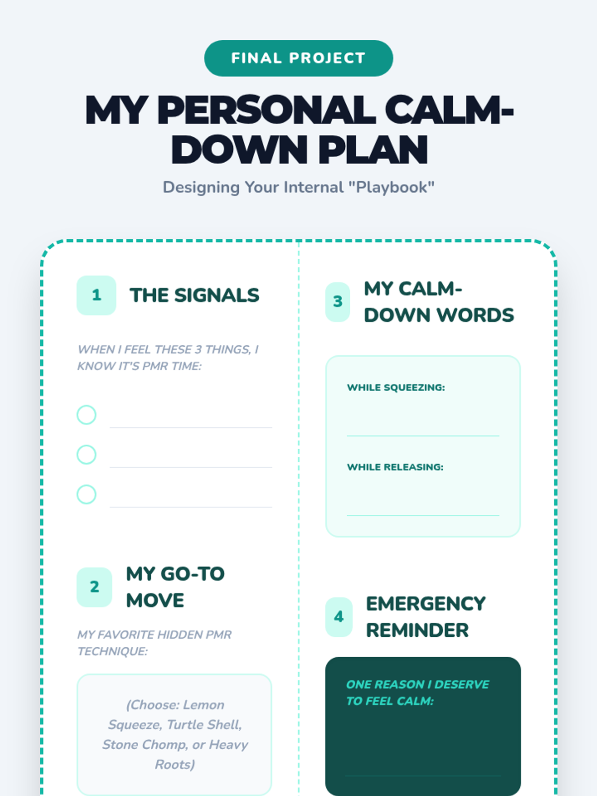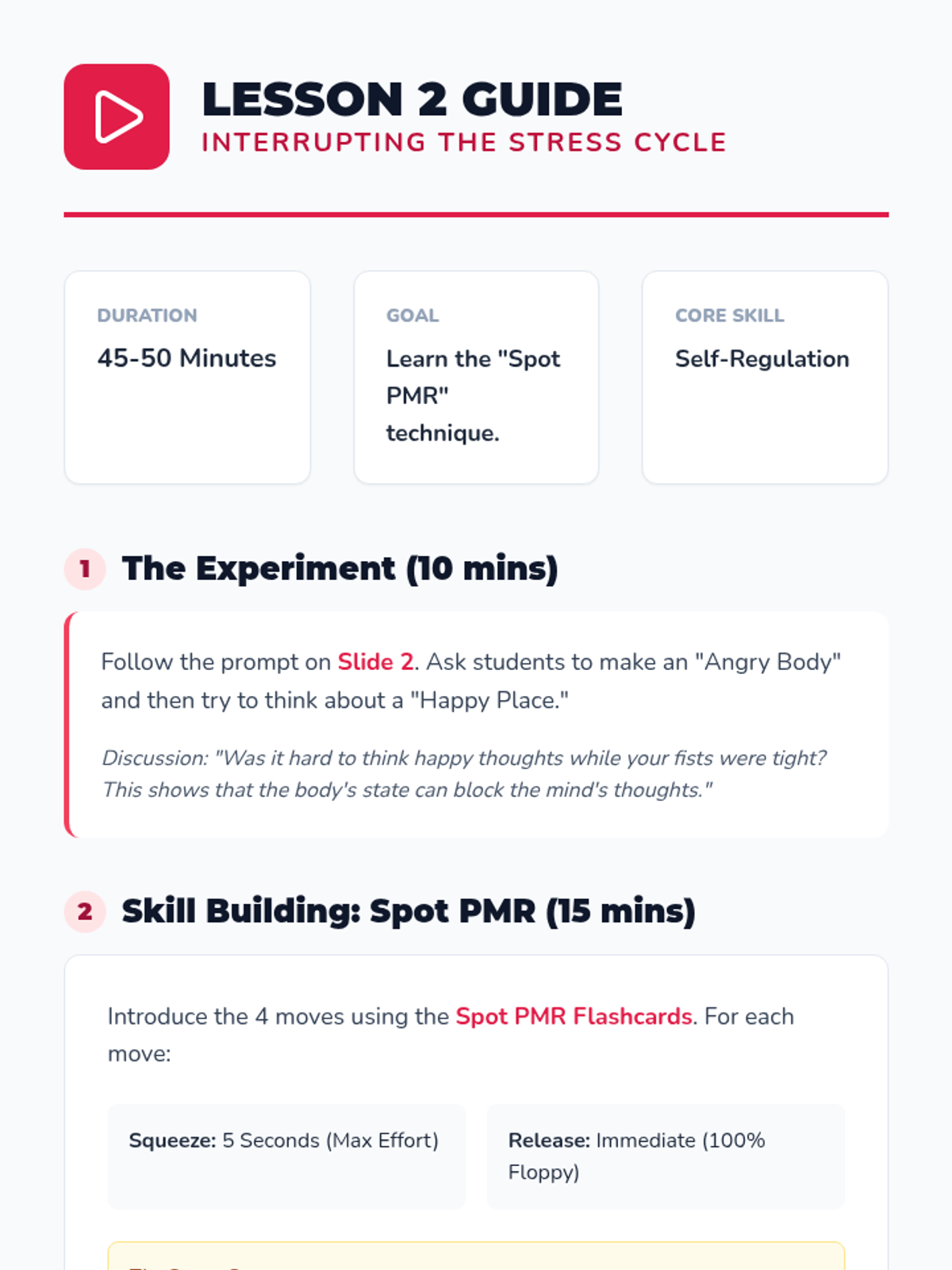 A 5th-grade sequence teaching students to use Progressive Muscle Relaxation (PMR) to manage the physiological and emotional impacts of stress. Students explore the mind-body connection, practice targeted relaxation techniques, and create a personalized emotional regulation plan.