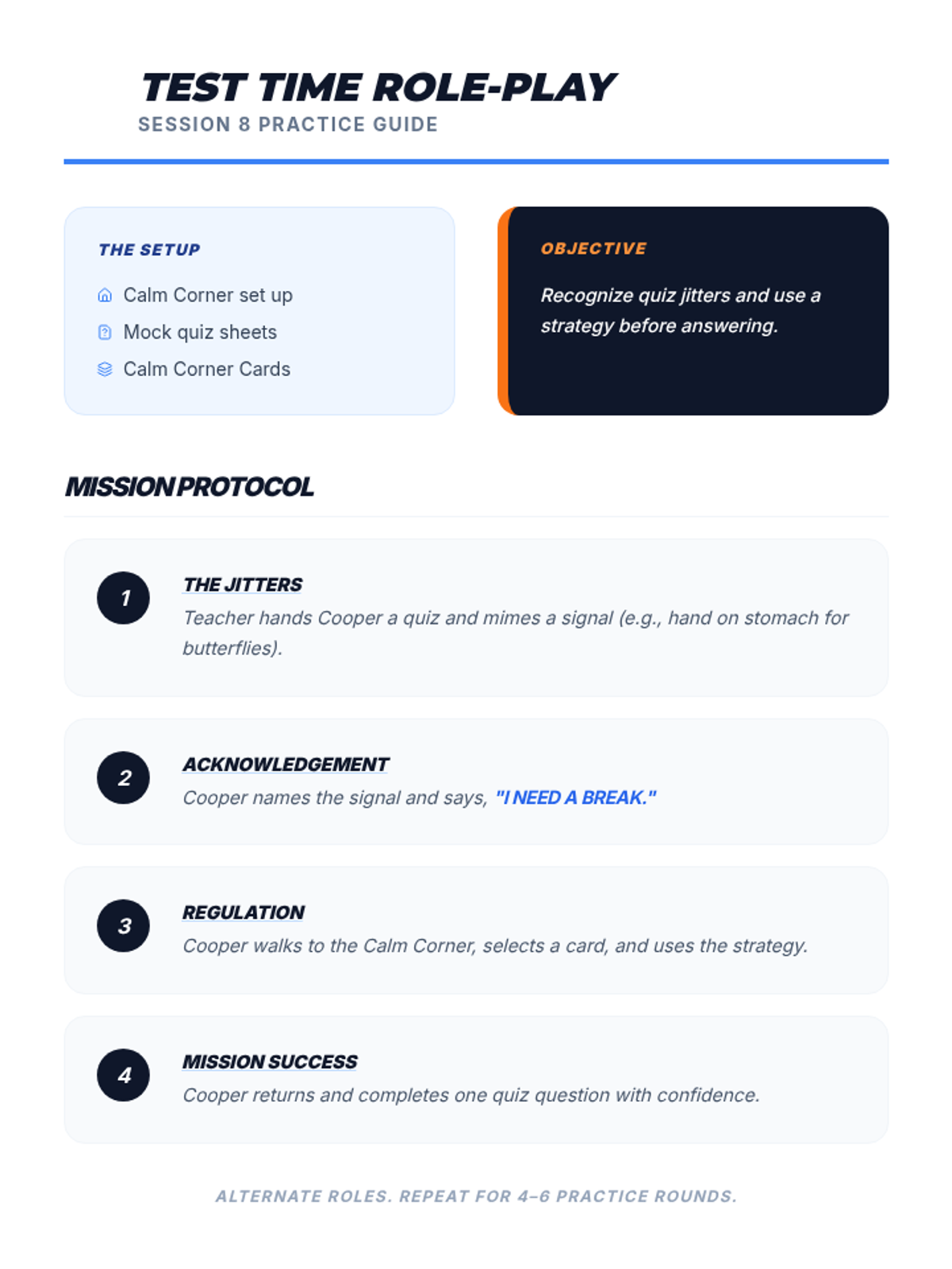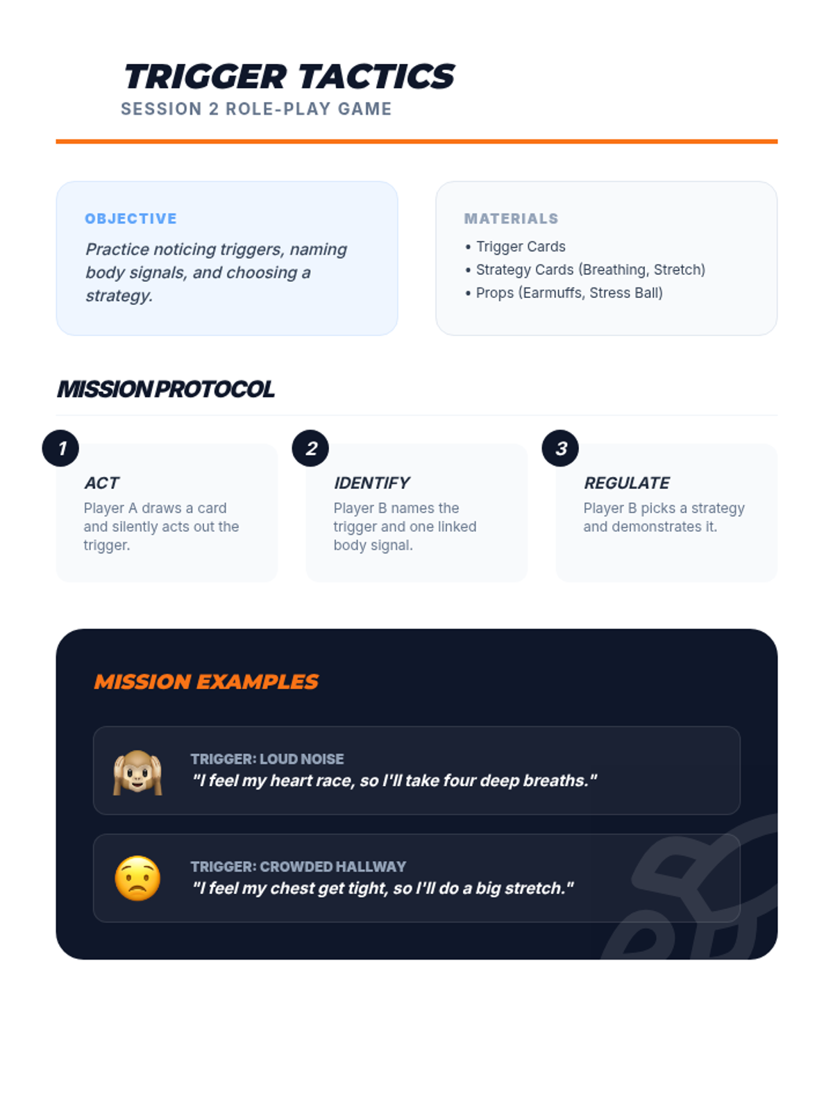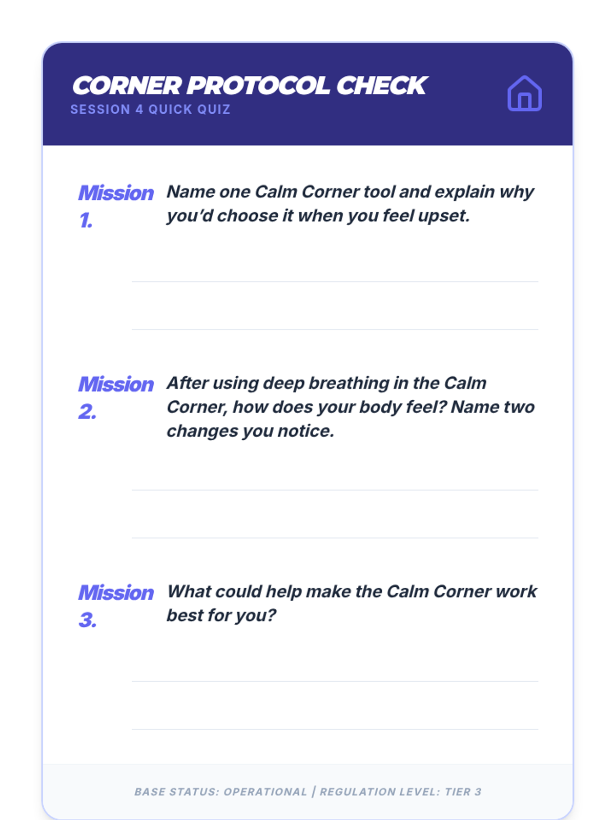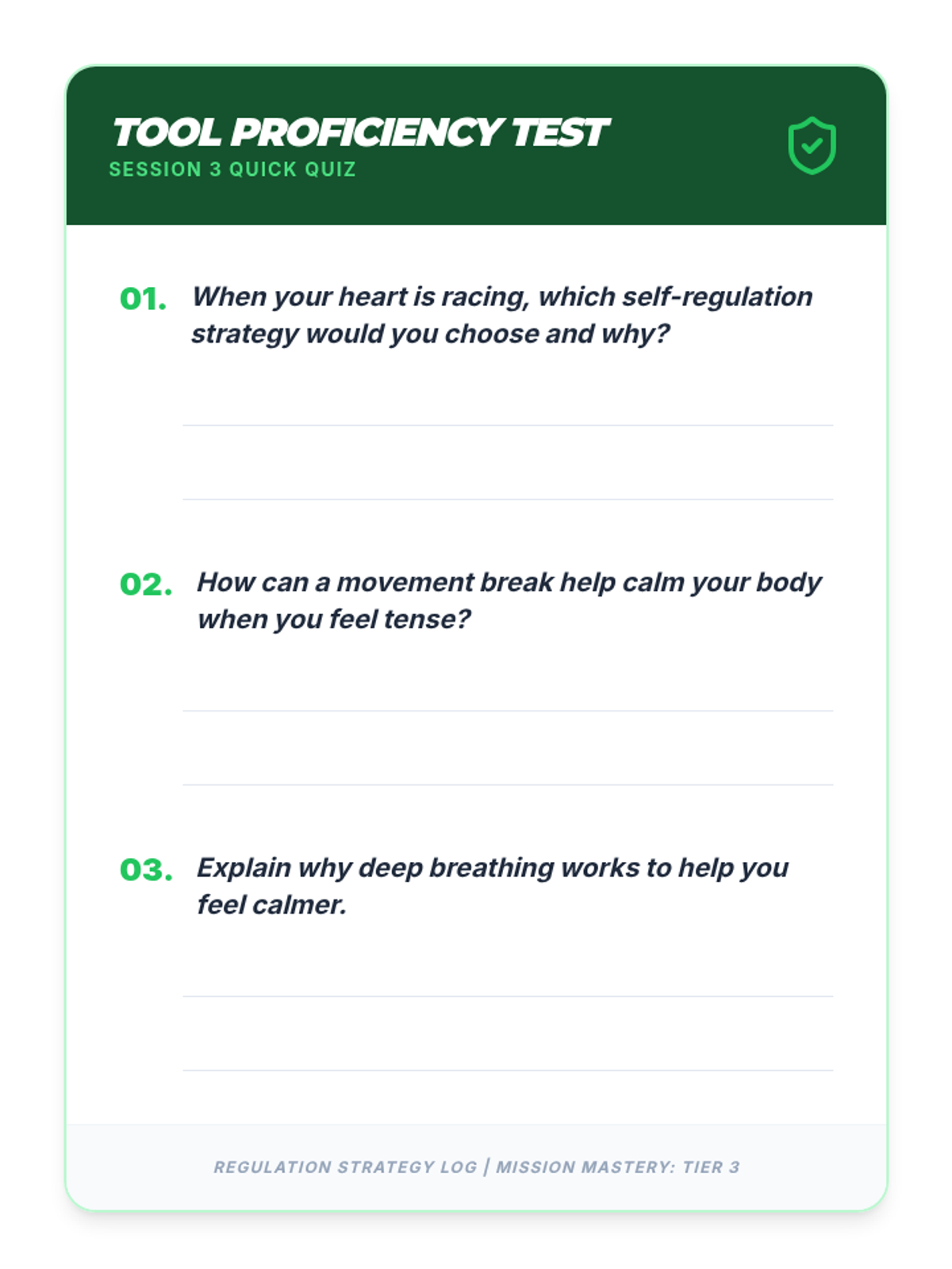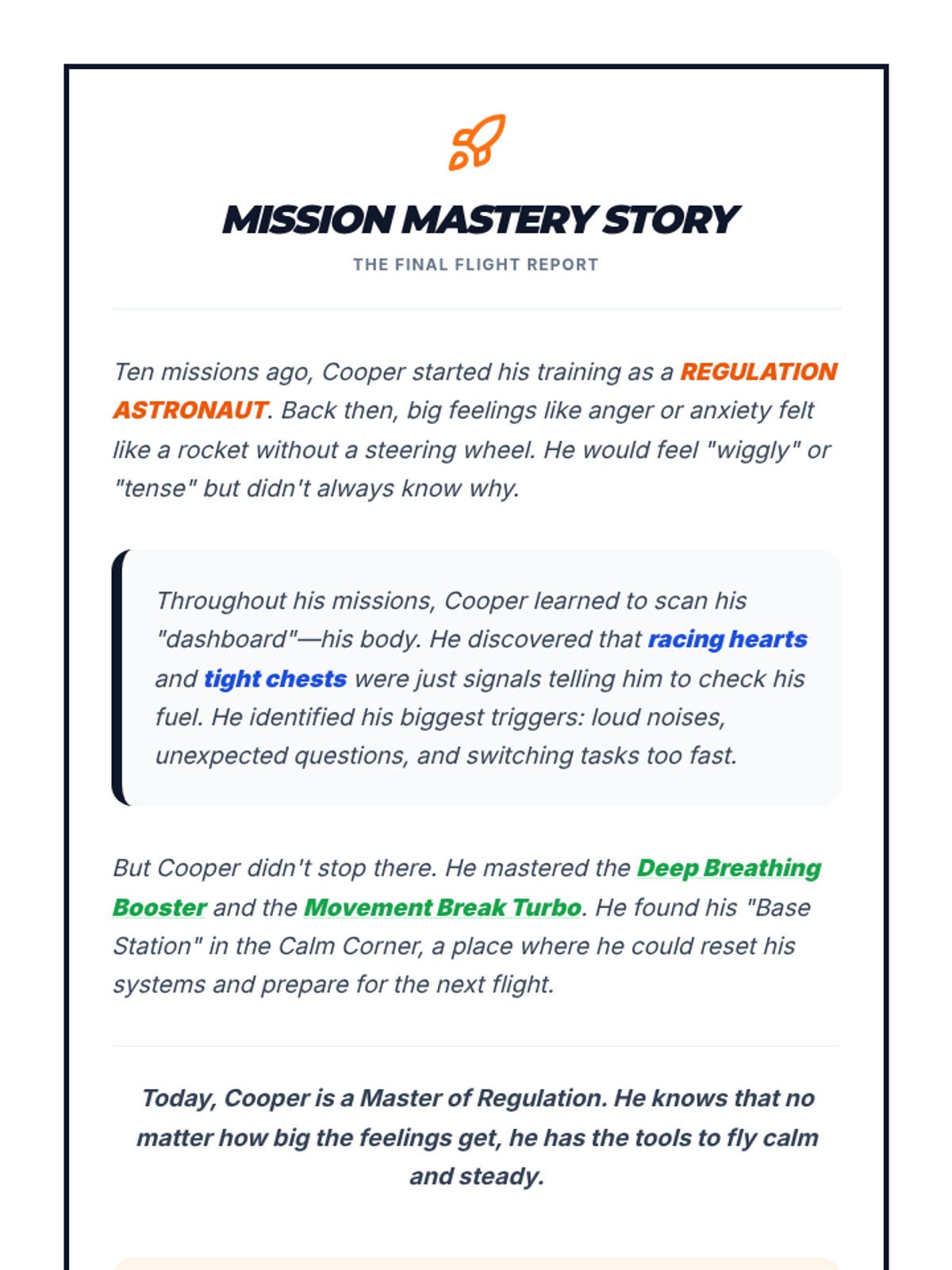 A 10-session social-emotional learning unit for an individual 4th grade student with ASD to master identifying emotions, recognizing dysregulation, and applying self-regulation strategies independently. The unit follows a "Regulation Rocket" mission theme to build self-awareness and coping skills.