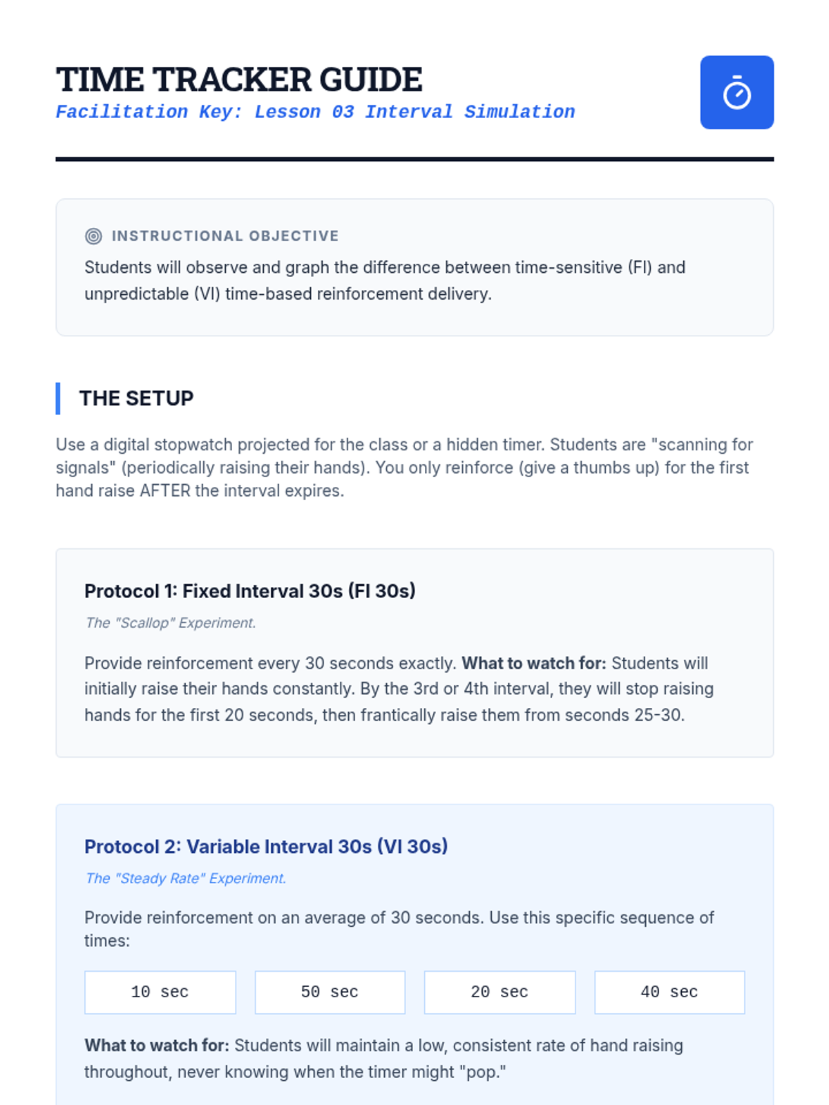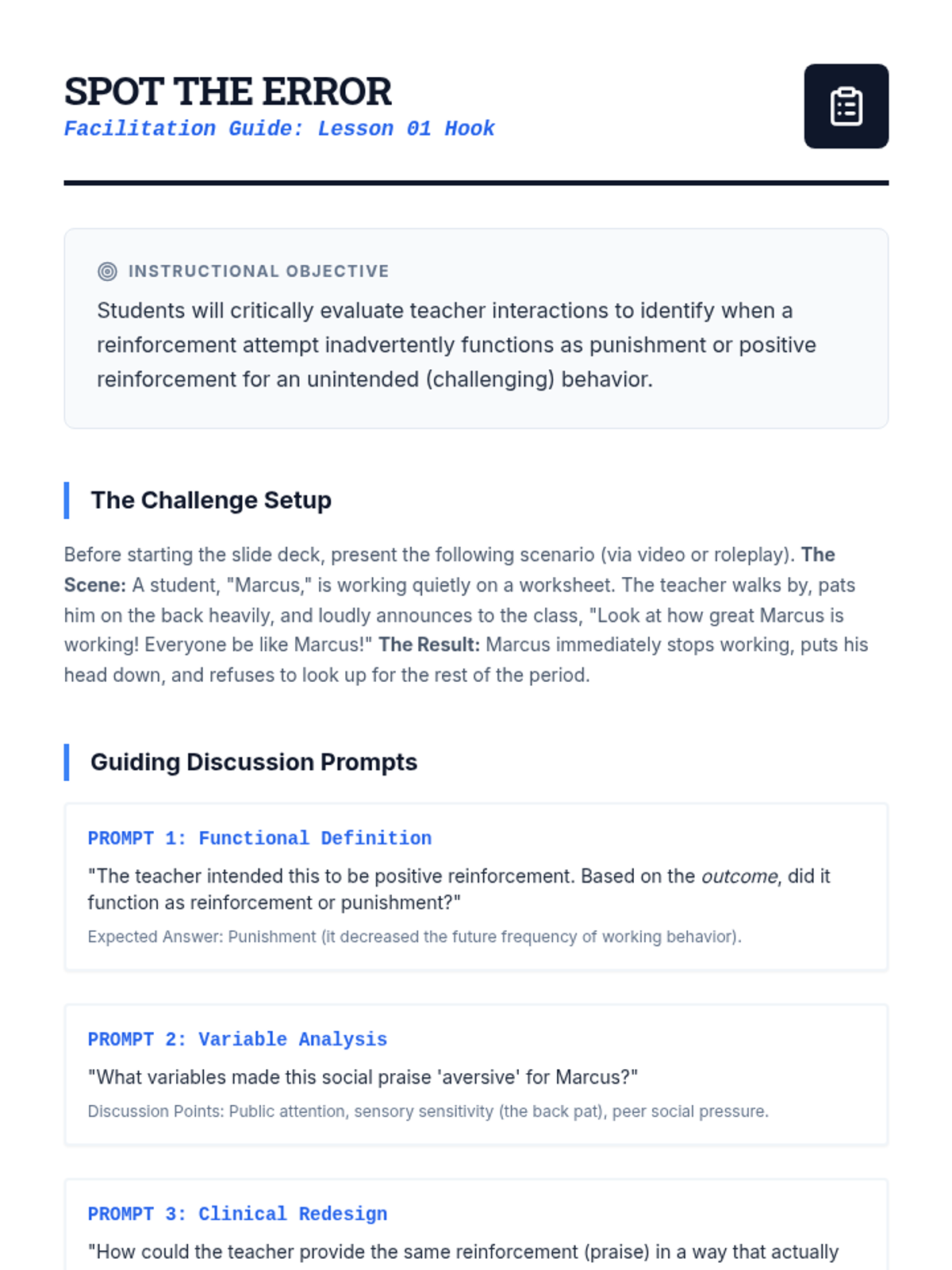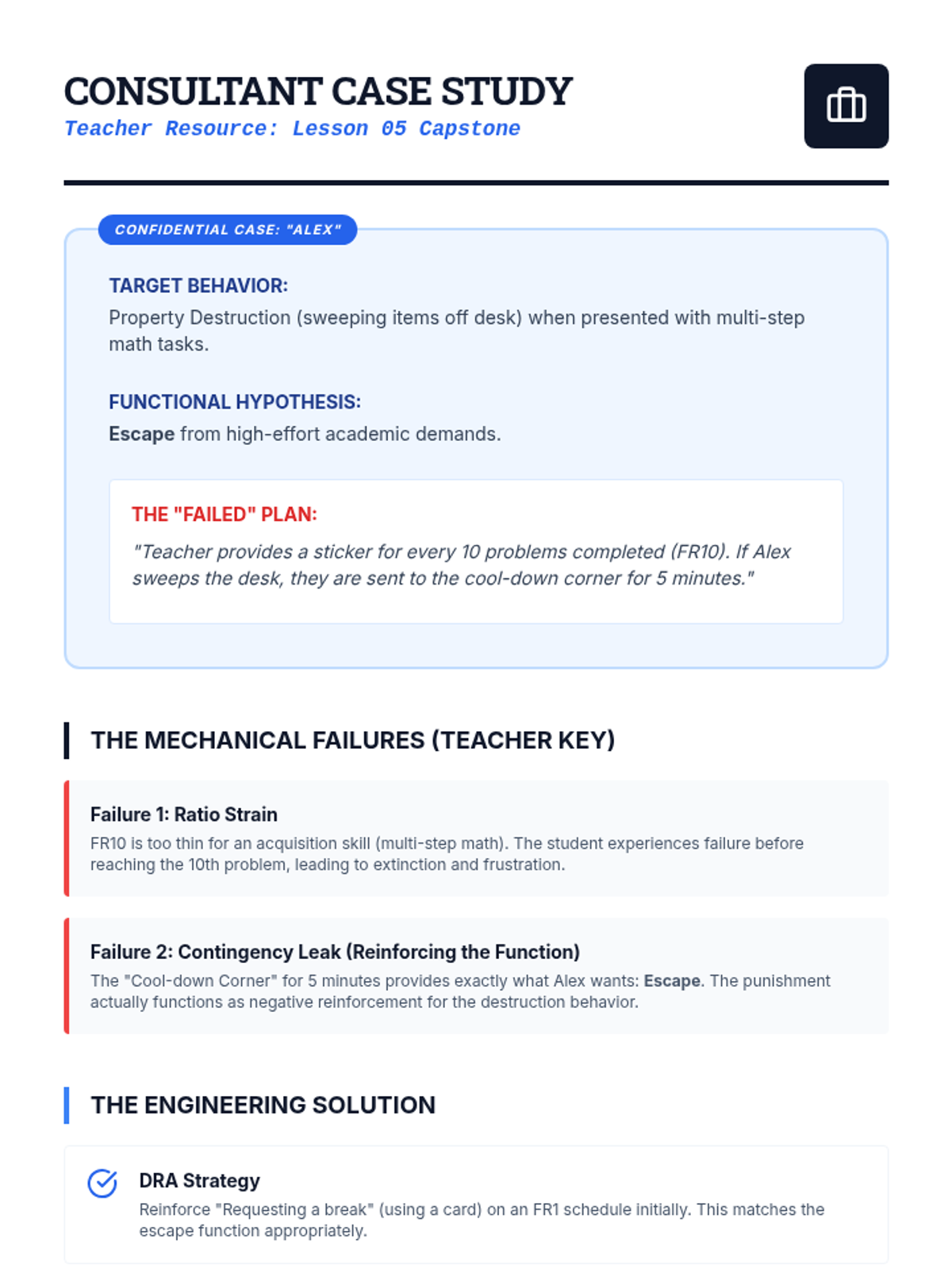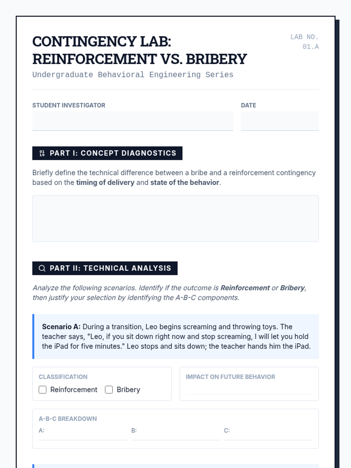 A comprehensive sequence for undergraduate students exploring the technical mechanics of reinforcement schedules, contingency design, and behavioral engineering in special education contexts.