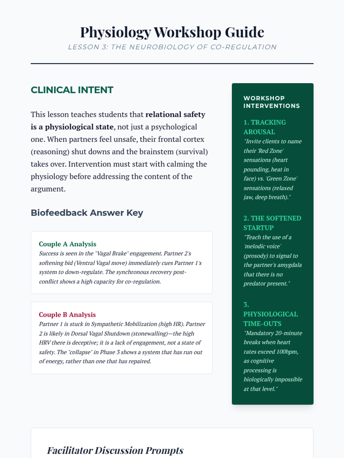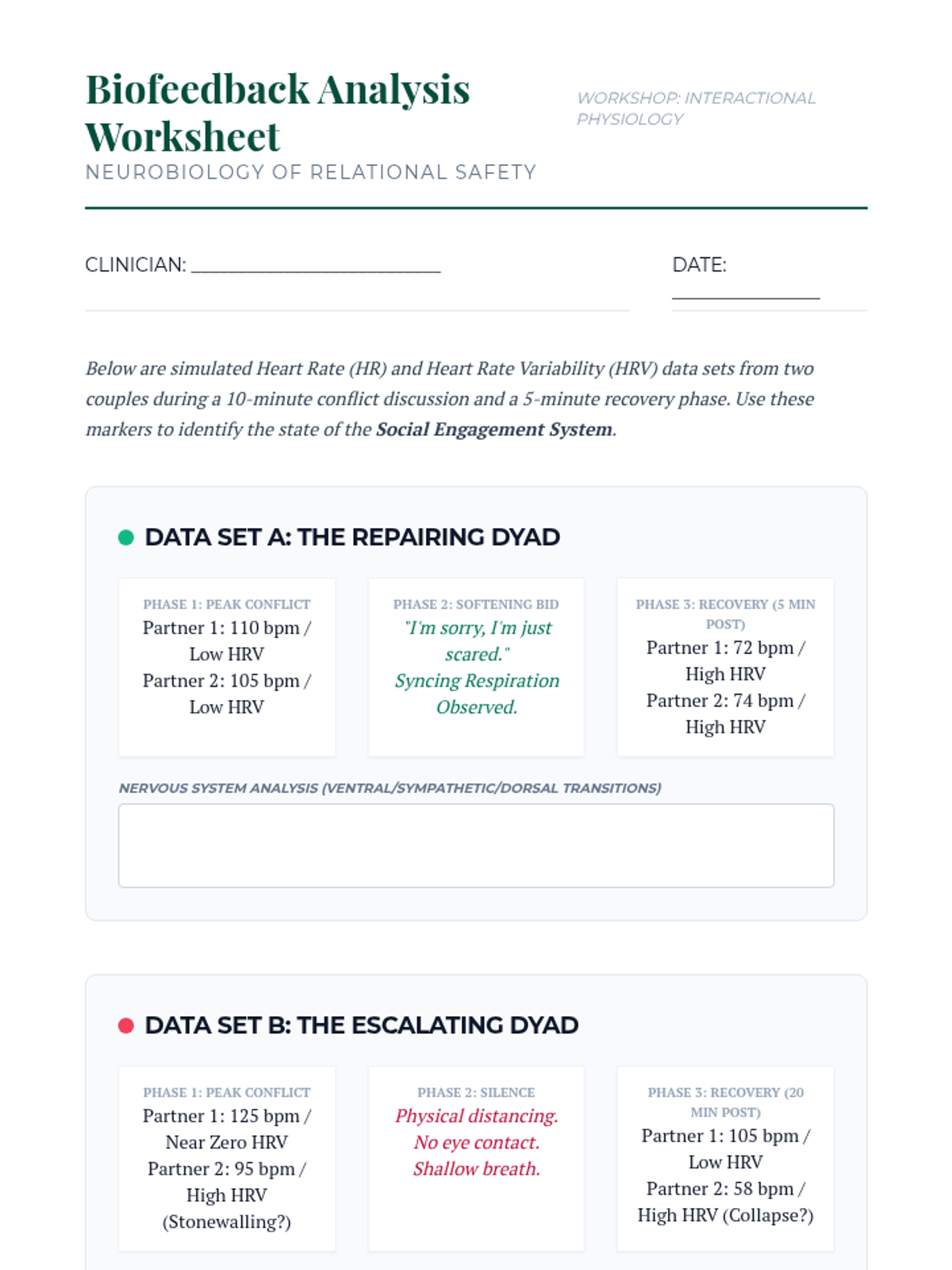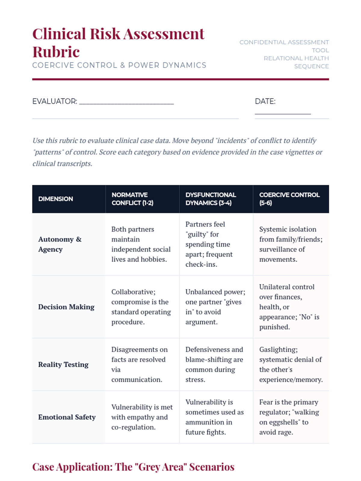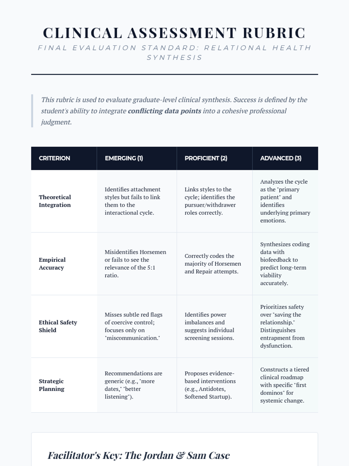An advanced clinical sequence for graduate students focusing on the assessment of romantic relationship dynamics through attachment theory, neurobiology, and evidence-based frameworks. It bridges theory with clinical application, focusing on adult attachment, power dynamics, and conflict styles.