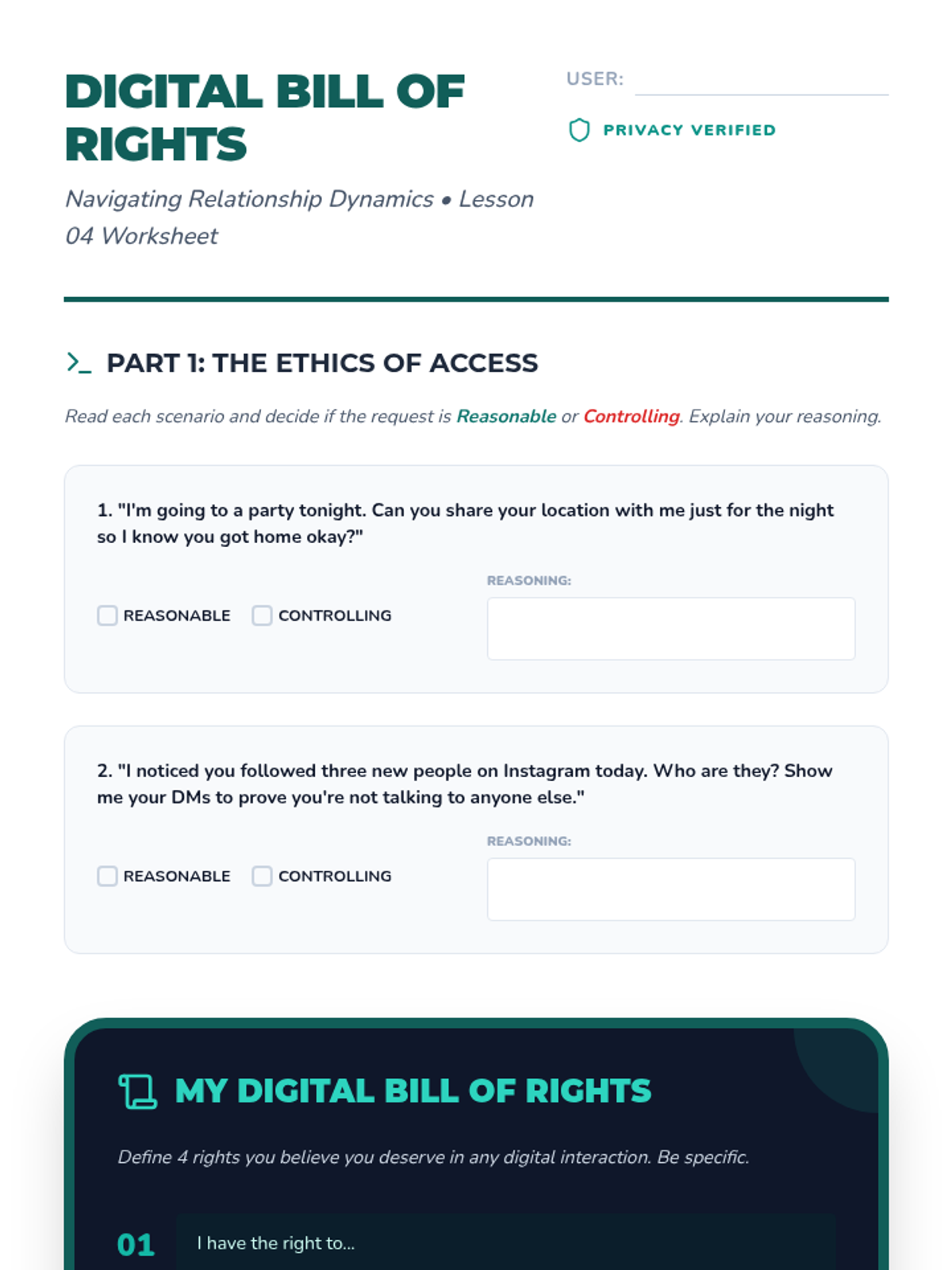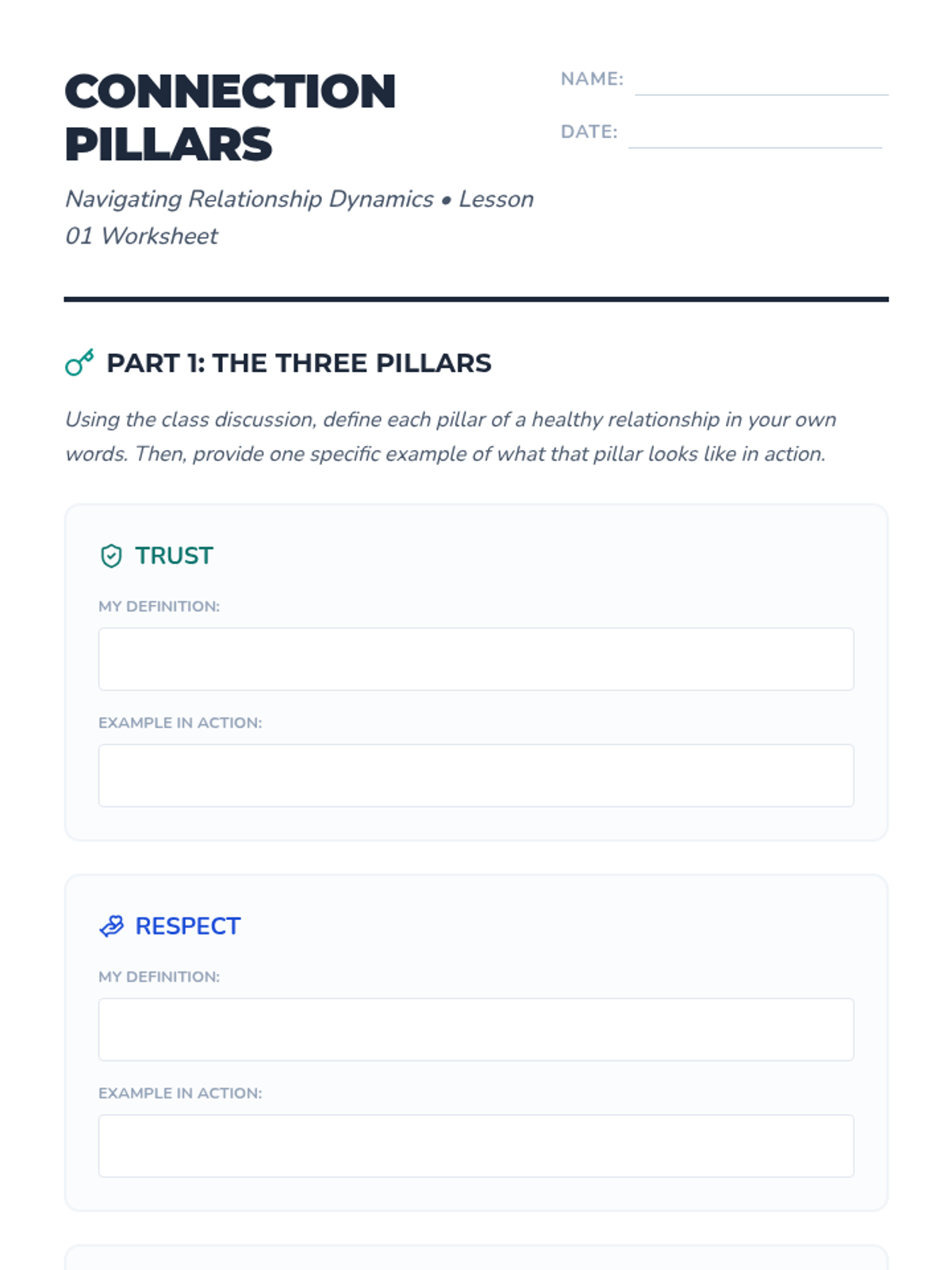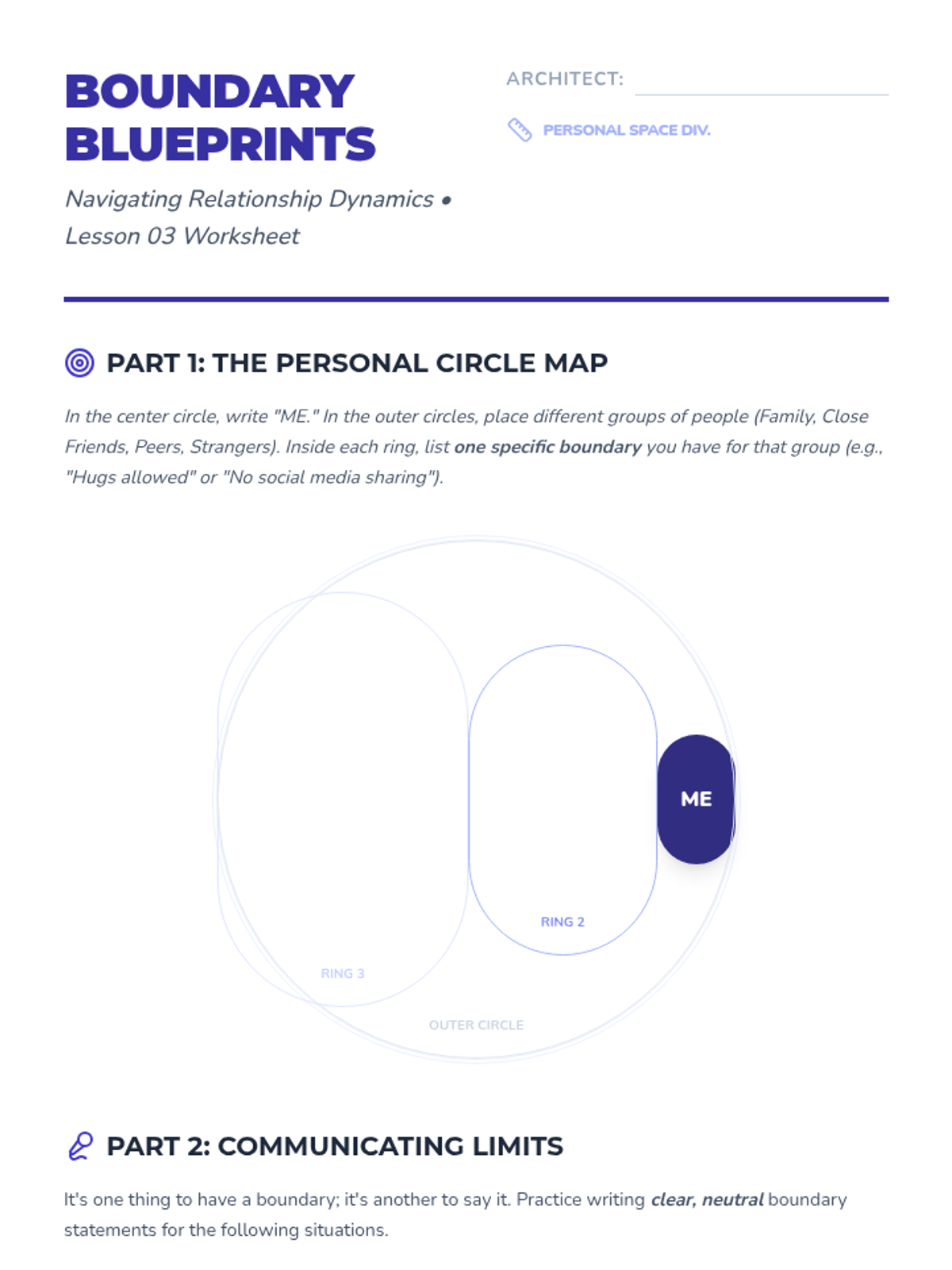 This 8th-grade sequence guides students through analyzing relationship dynamics, distinguishing between healthy and toxic behaviors, and establishing personal boundaries in both physical and digital spaces. Students move from foundational definitions to complex real-world application, culminating in scenario-based assessments and resource mapping for seeking help.