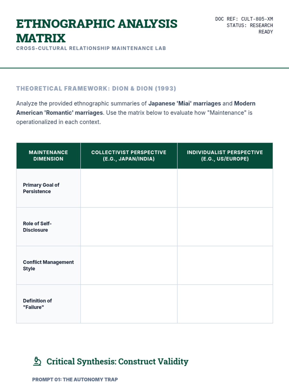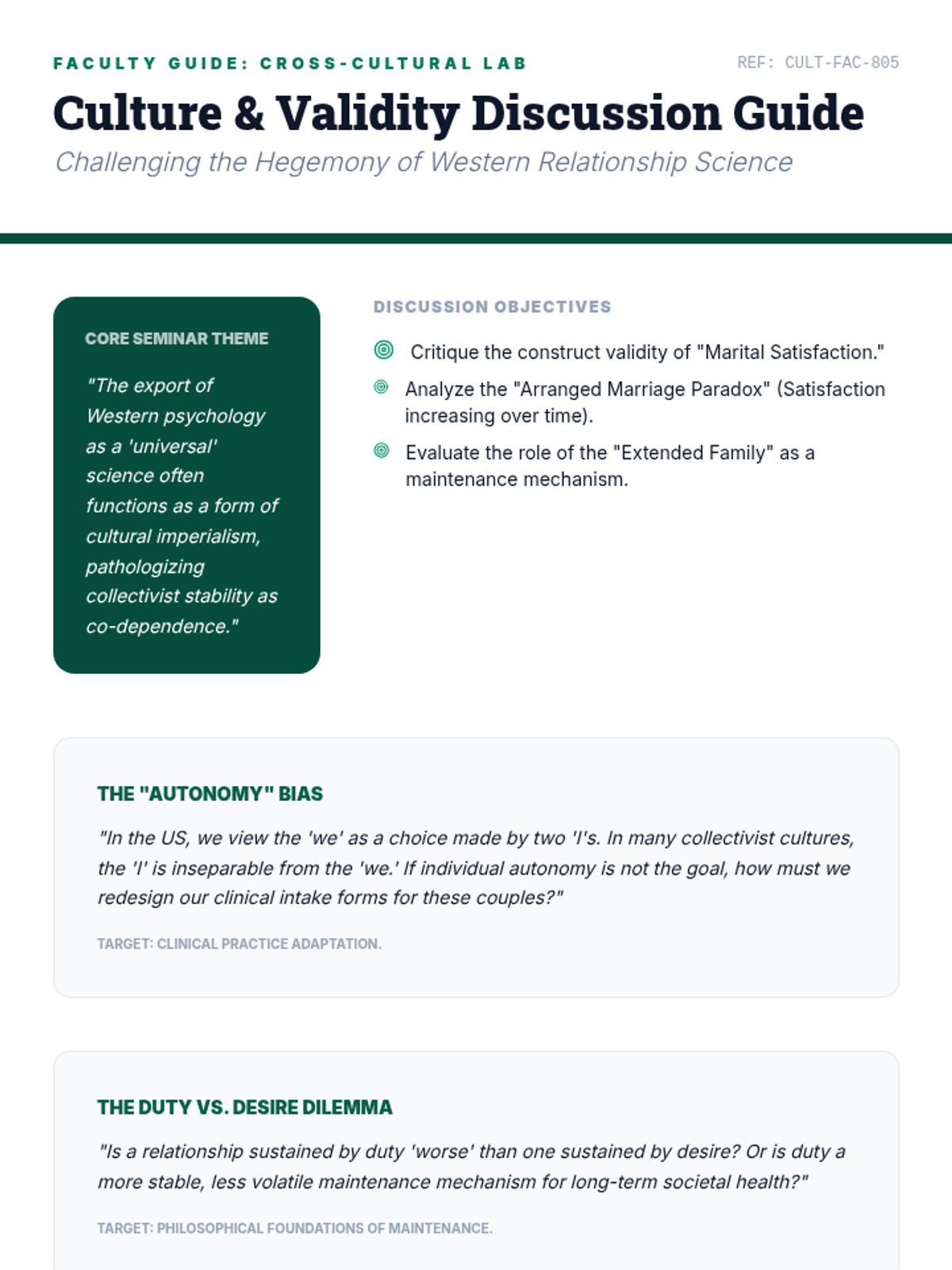 A research-oriented graduate sequence exploring the mechanisms of long-term relationship persistence, communication patterns, cultural influences, and post-dissolution growth through the lens of social psychology.