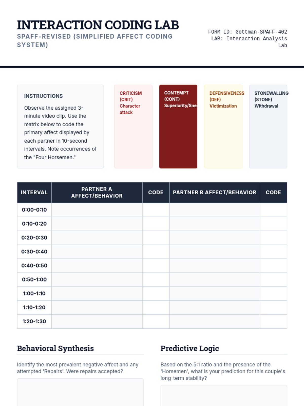 This graduate-level sequence explores the detection and analysis of micro-expressions and subtle affect. Students move from theoretical foundations of emotional leakage to high-fidelity real-time clinical simulations.