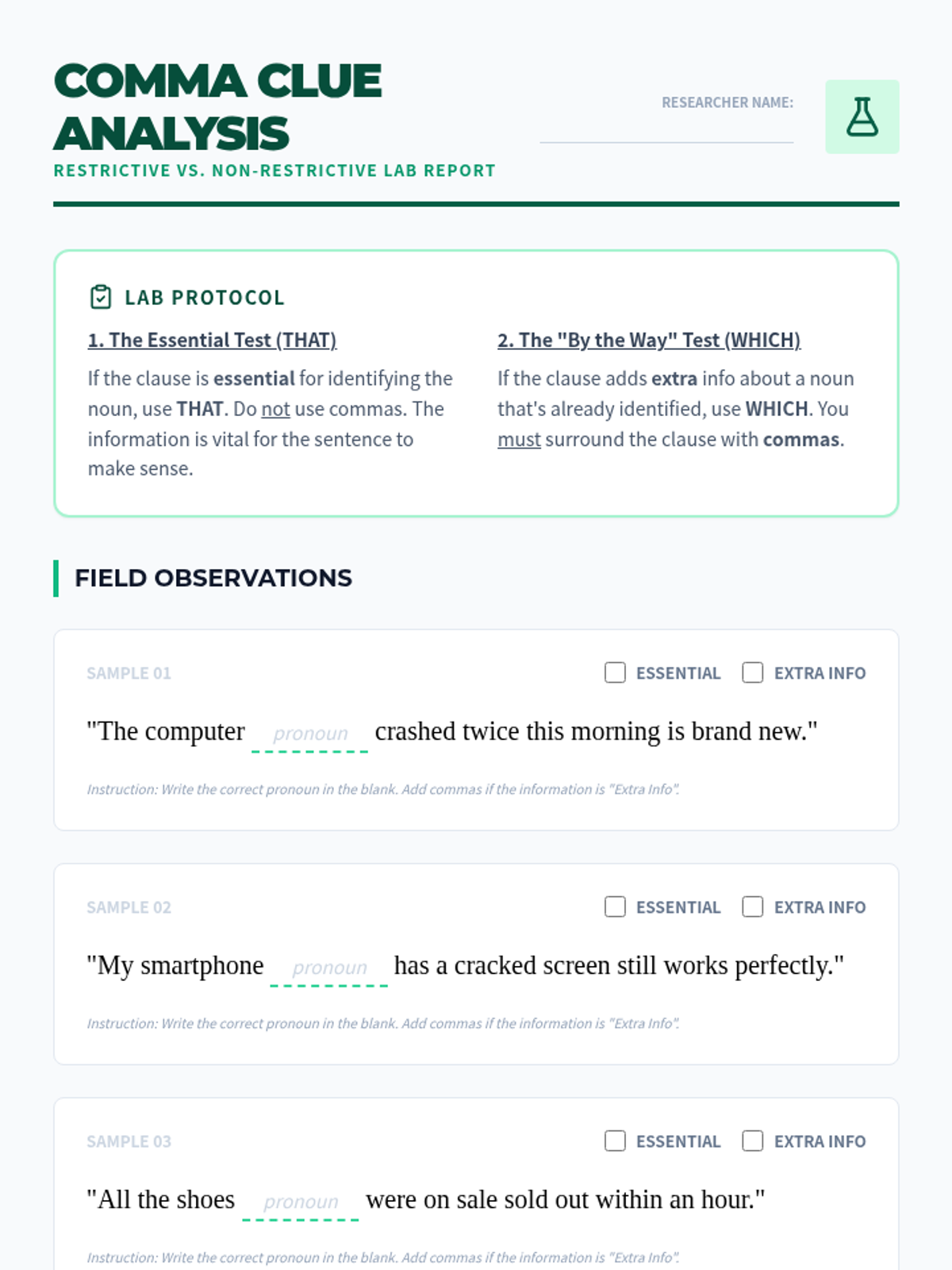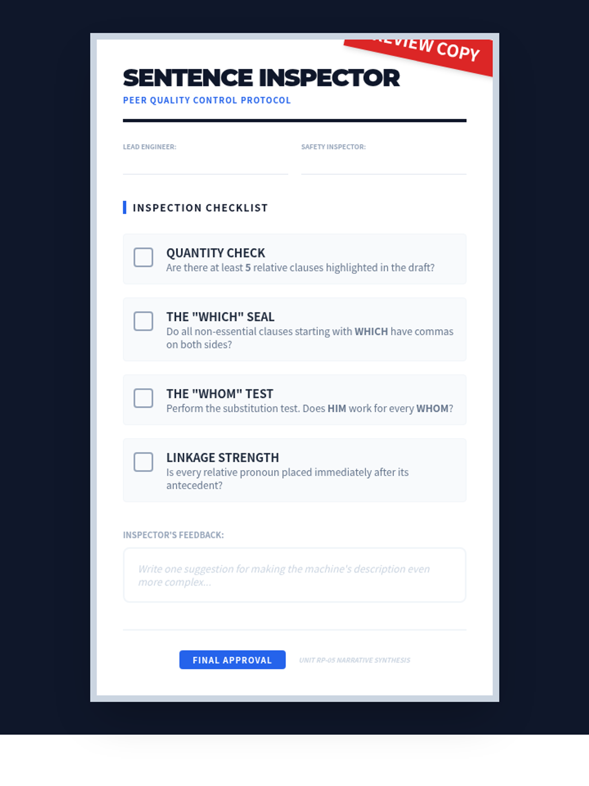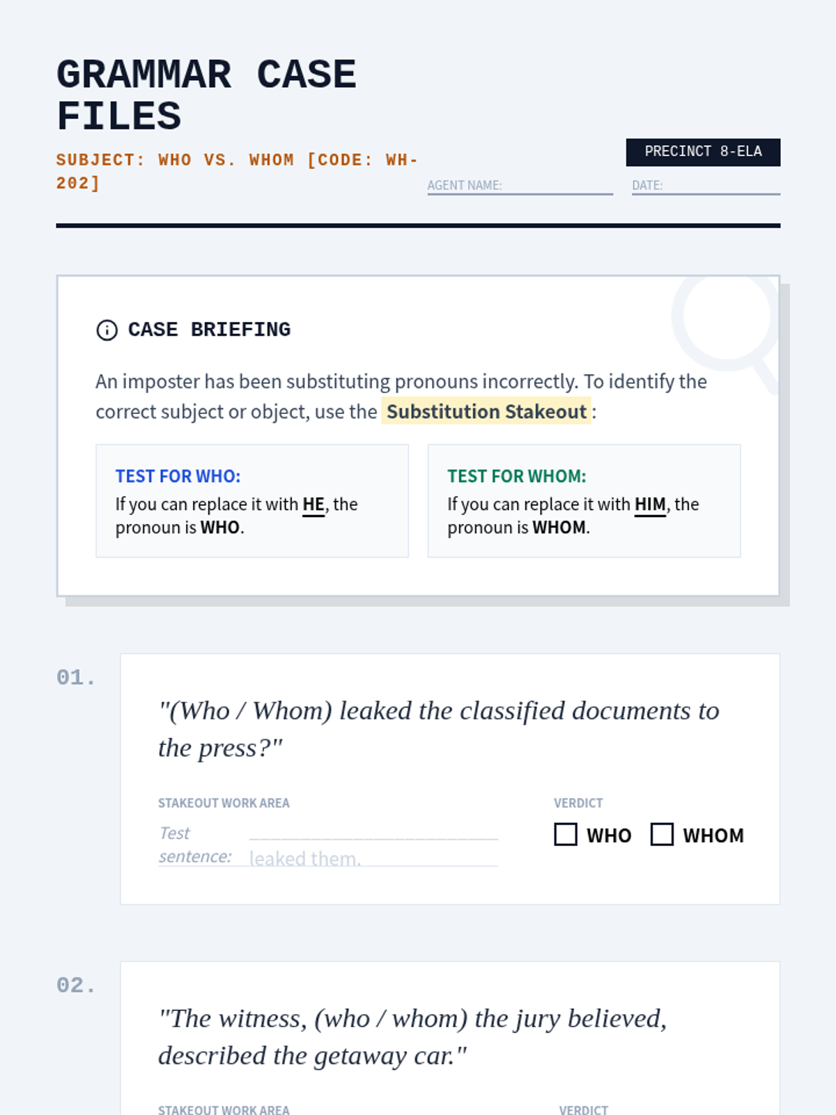 An 8th-grade grammar sequence focusing on relative pronouns as tools for sentence complexity. Students move from analyzing literary examples to mastering tricky distinctions like 'who vs. whom' and 'that vs. which', culminating in creative narrative synthesis.