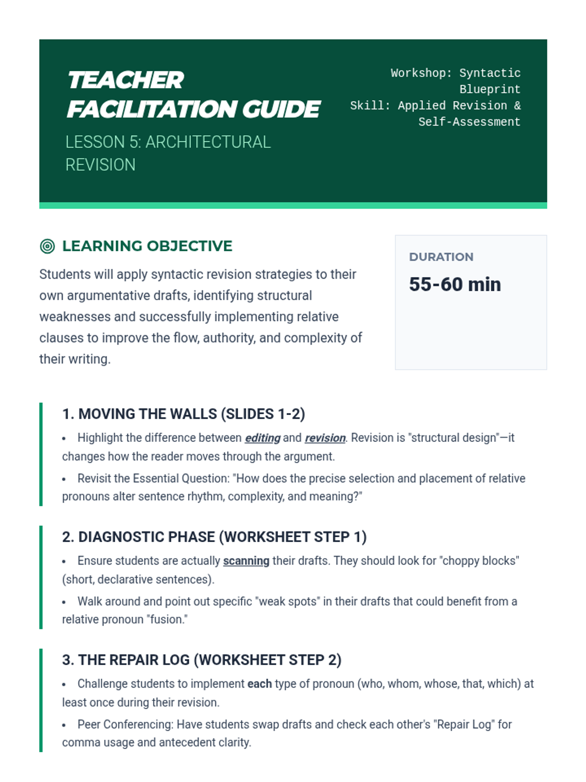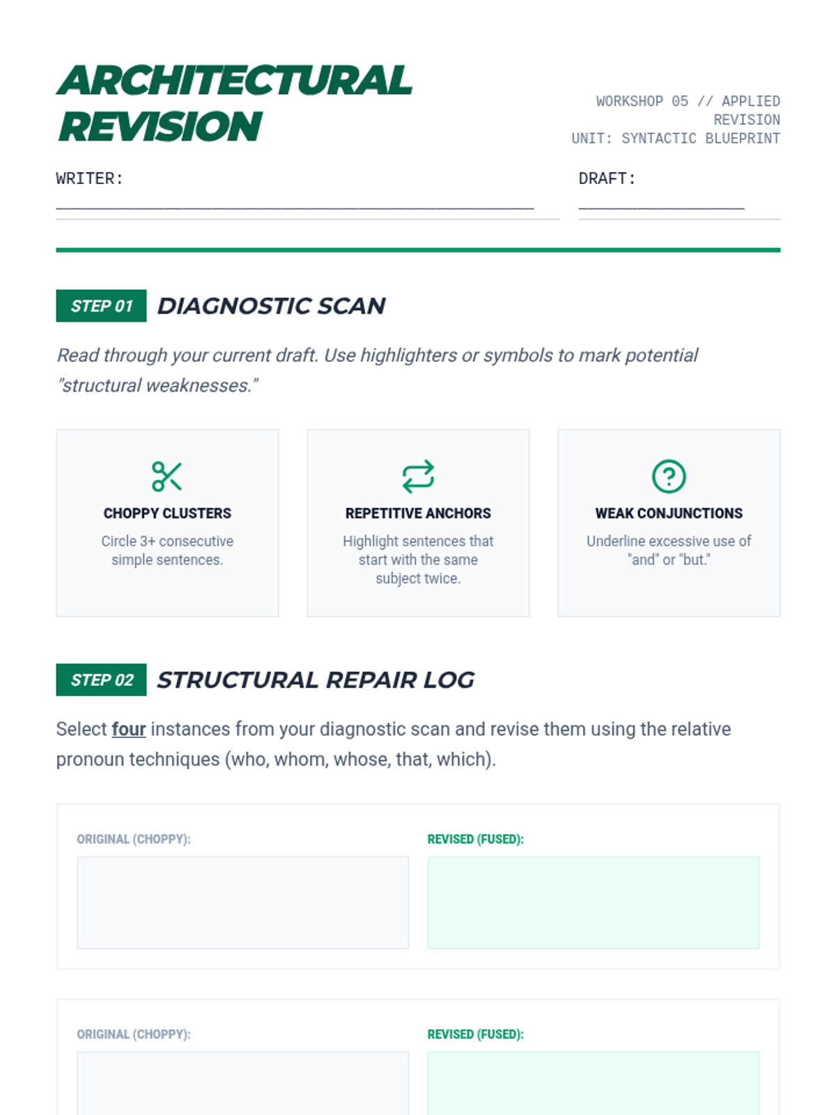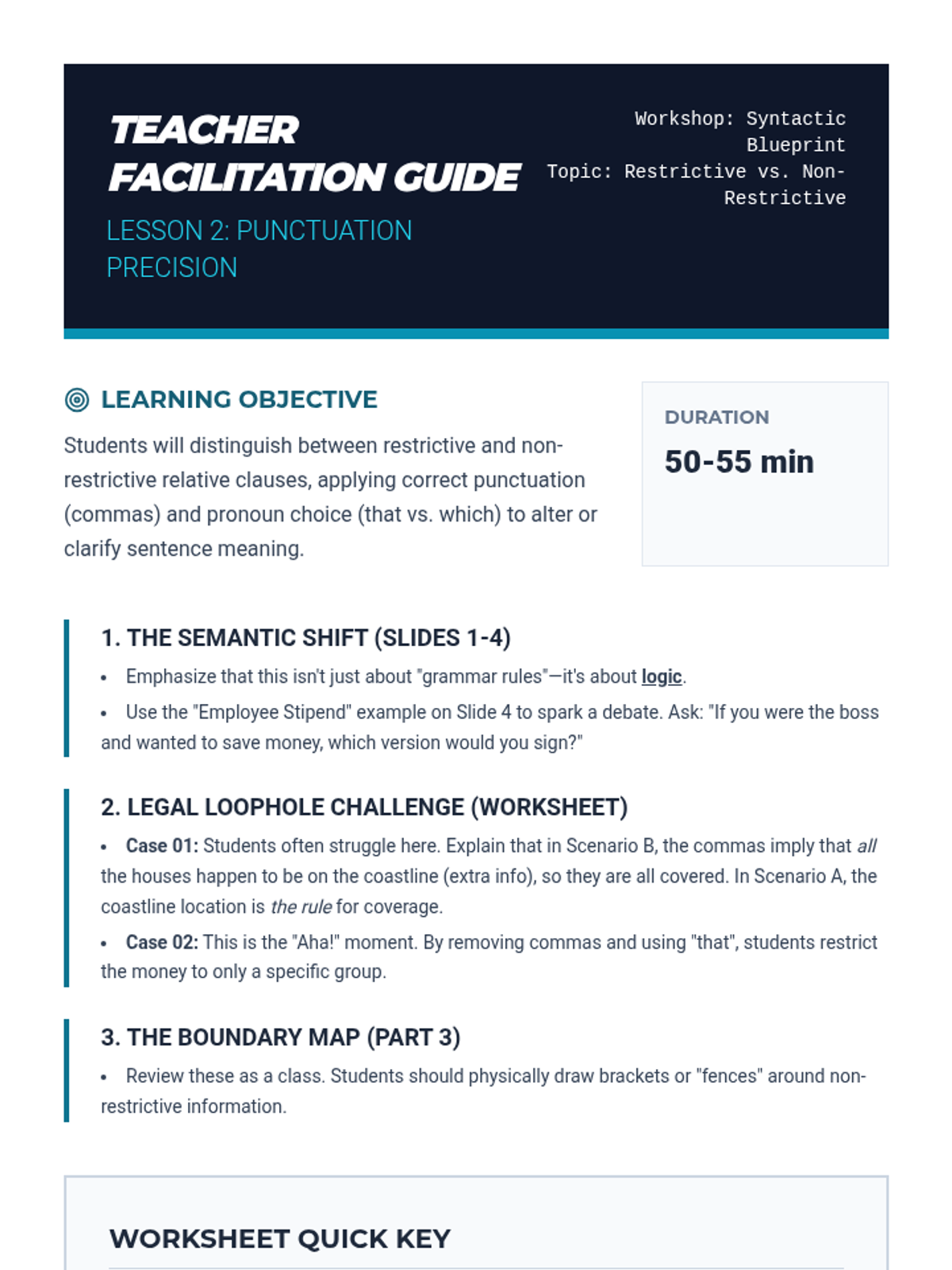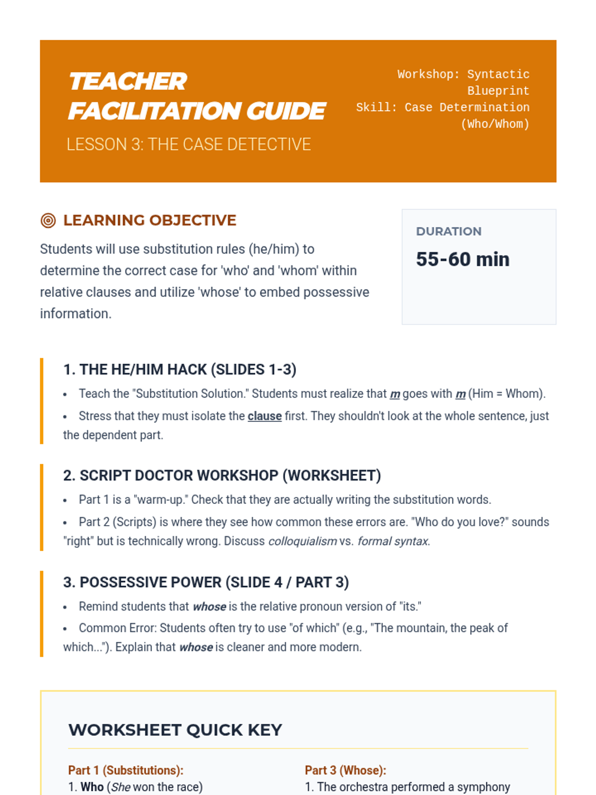 A comprehensive sequence for 11th-grade students focusing on the mastery of relative pronouns to build syntactic complexity. Students progress from basic clause identification to the nuanced application of restrictive vs. non-restrictive clauses, case determination for 'who/whom', and advanced sentence combining techniques for academic writing.