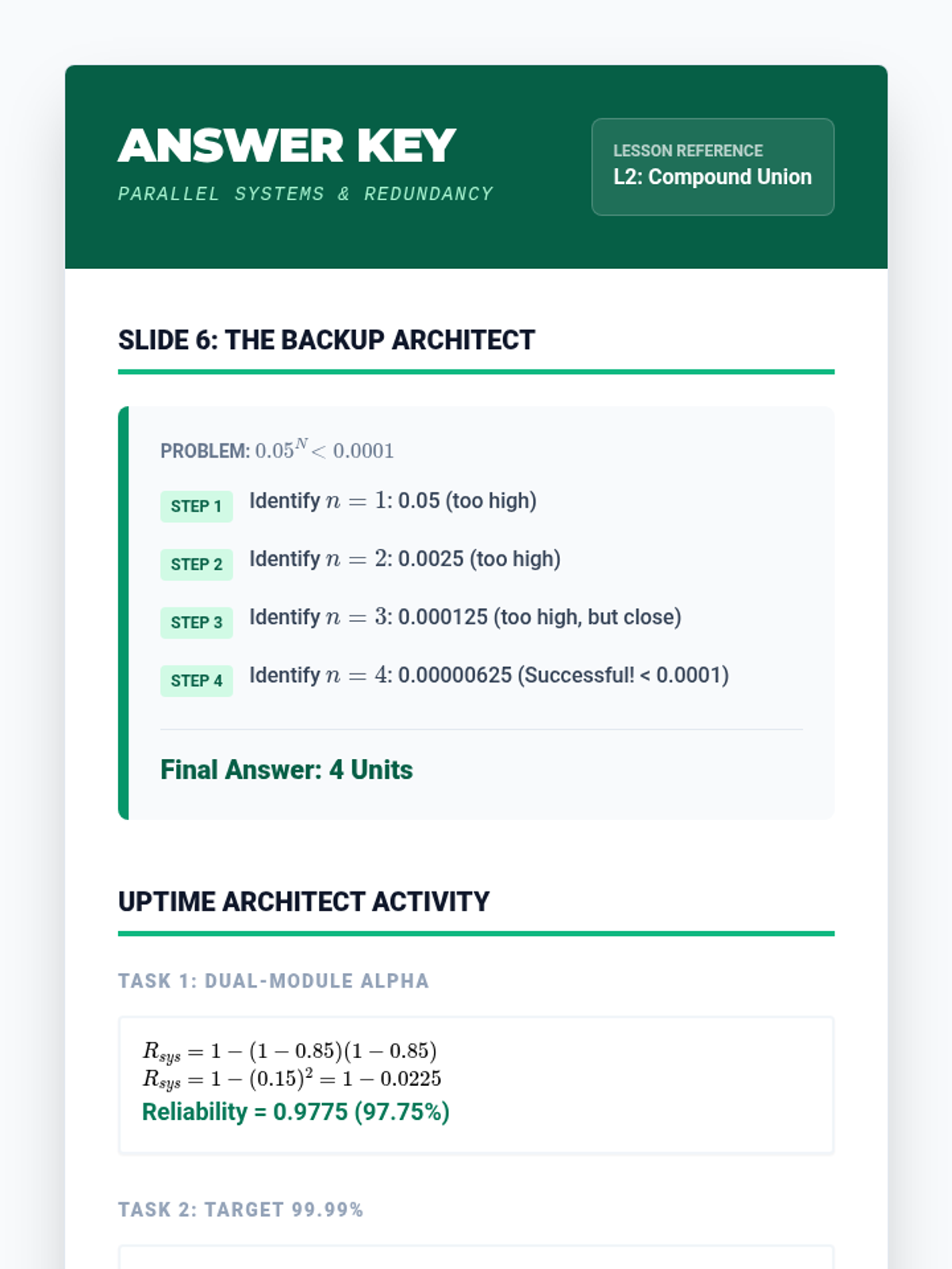 This sequence explores compound probability through the lens of engineering reliability. Students learn to model series and parallel systems, analyze hybrid structures, and account for dependent failures in complex risk environments.
