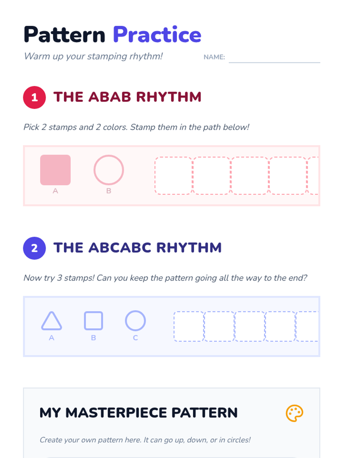 An introductory graphic design sequence for 1st graders, exploring typography, layout, and visual communication through printmaking and stamping.