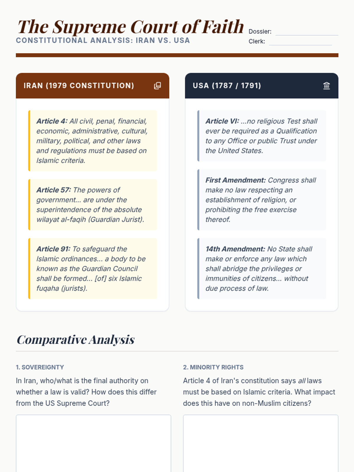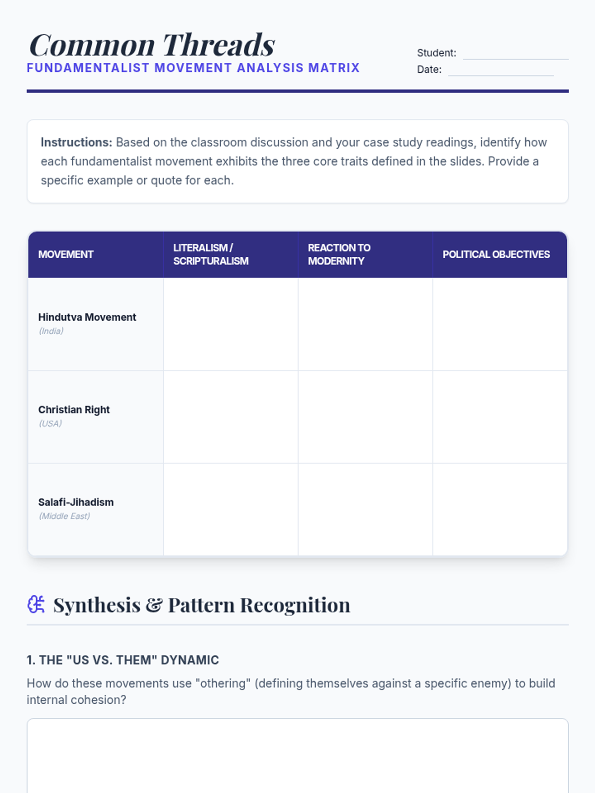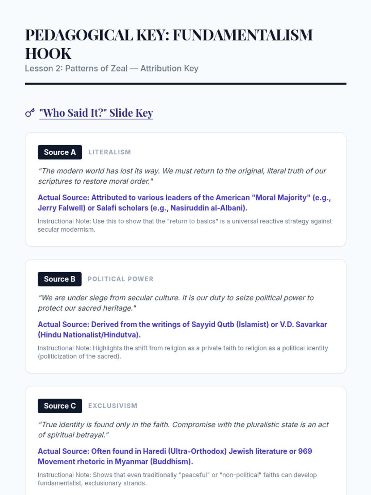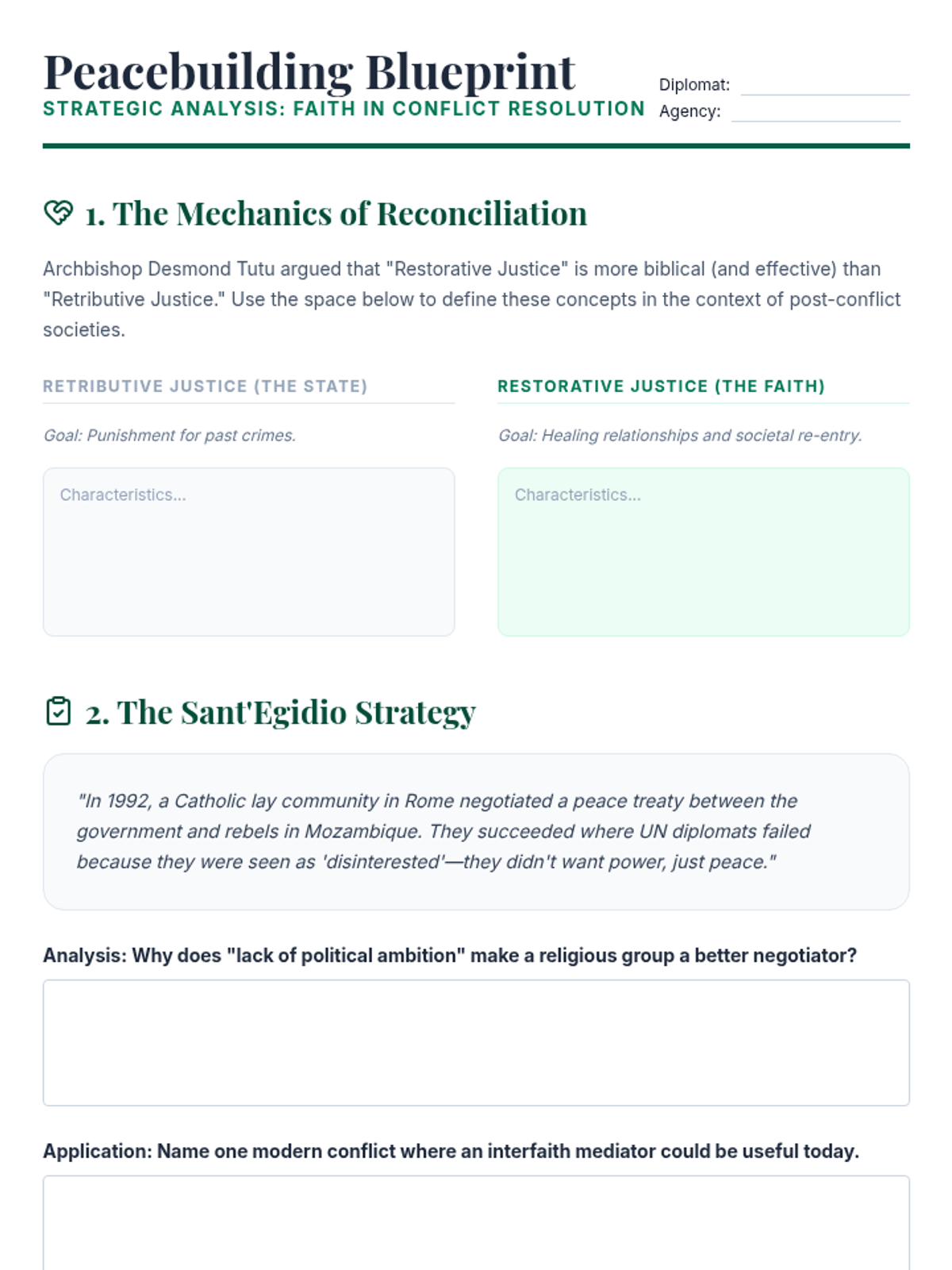 This 12th Grade Social Studies sequence explores the intersection of religion and global geopolitics. Students analyze secularism, religious fundamentalism, theocratic governance, and the role of faith in peacebuilding, culminating in a complex diplomatic simulation regarding Jerusalem's holy sites.
